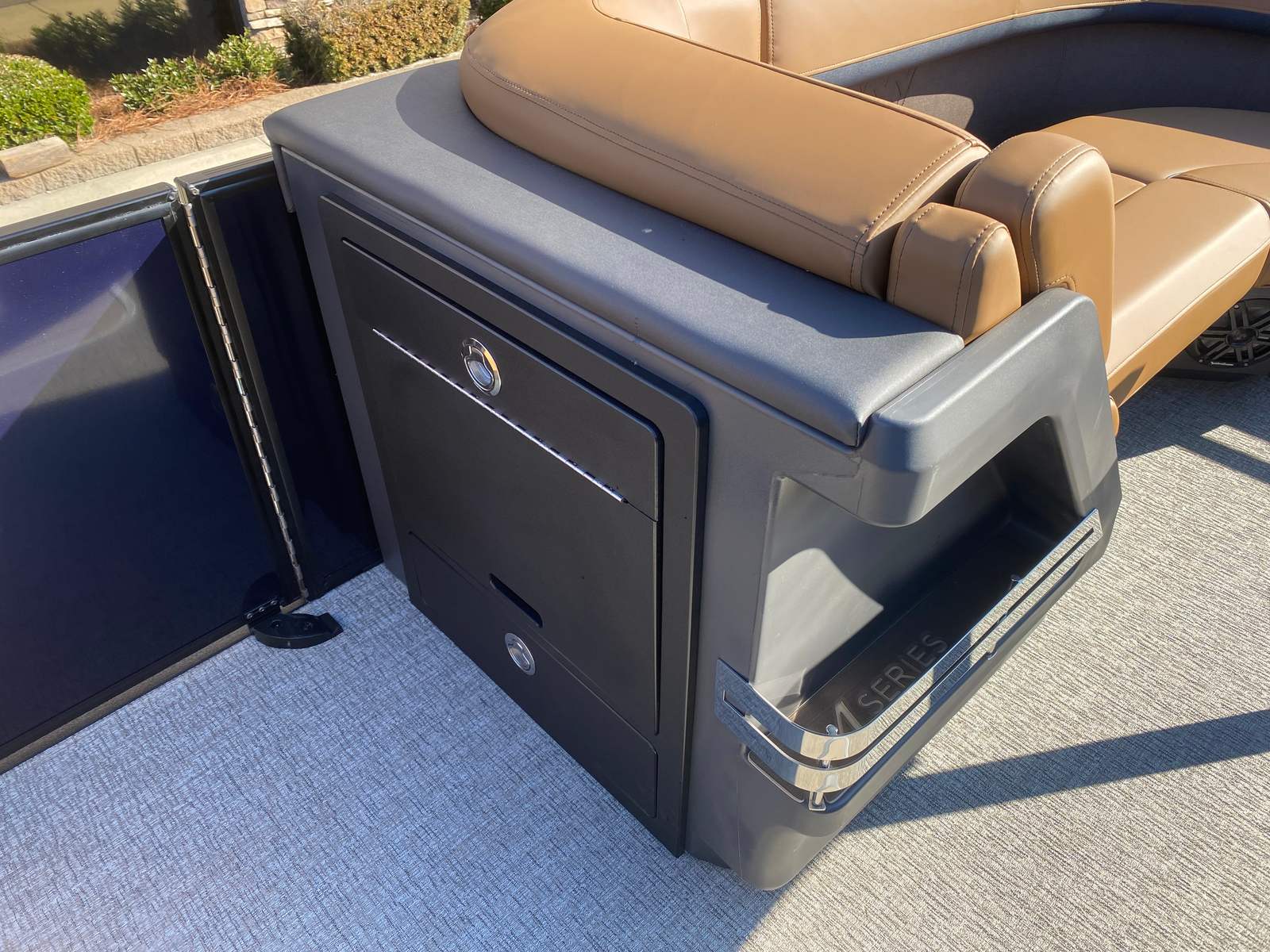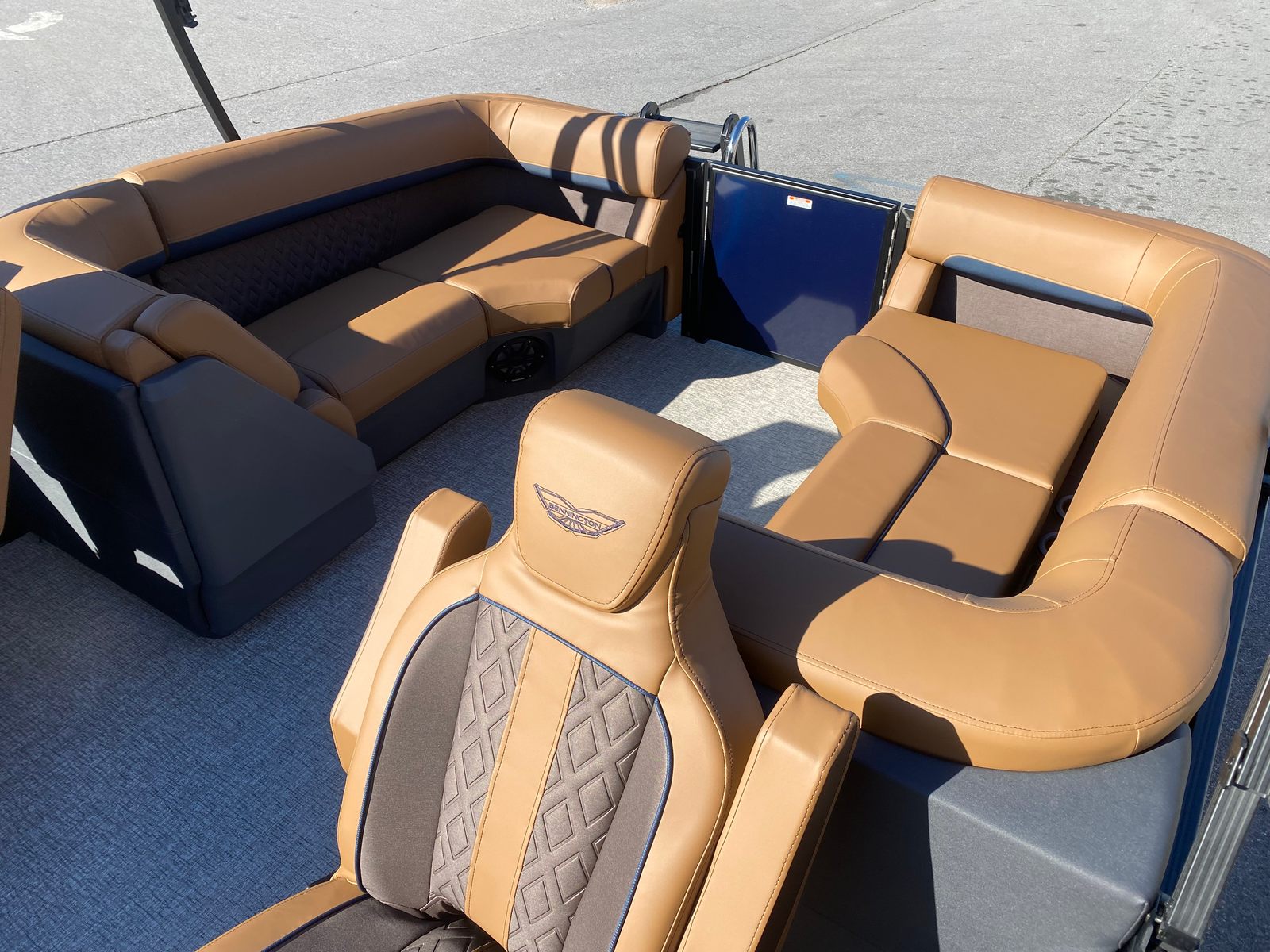 Step aboard the Bennington 22 MFB SPS and discover a world of premium features designed to enhance every outing. The exterior boasts a sophisticated Panel in Smooth Midnight Blue, complemented by an Accent in Smooth Satin Black for a striking, modern look. The Modesto Brown Veneto adds a touch of elegance, while the Interior Accent in Midnight Blue Simtex creates a refined and inviting atmosphere.Illuminate your evenings with the RGB Control M Series, allowing you to customize the ambiance with vibrant lighting options. Exterior Side Lighting and Toekick Lights (1-37" and 3-41") provide both safety and style, ensuring your pontoon stands out on the water. Enjoy superior sound quality with Rockford Fosgate M1 Lighted Speakers, perfect for setting the mood and entertaining guests. Every detail of the Bennington 22 MFB SPS is crafted to deliver comfort, convenience, and unforgettable memories.