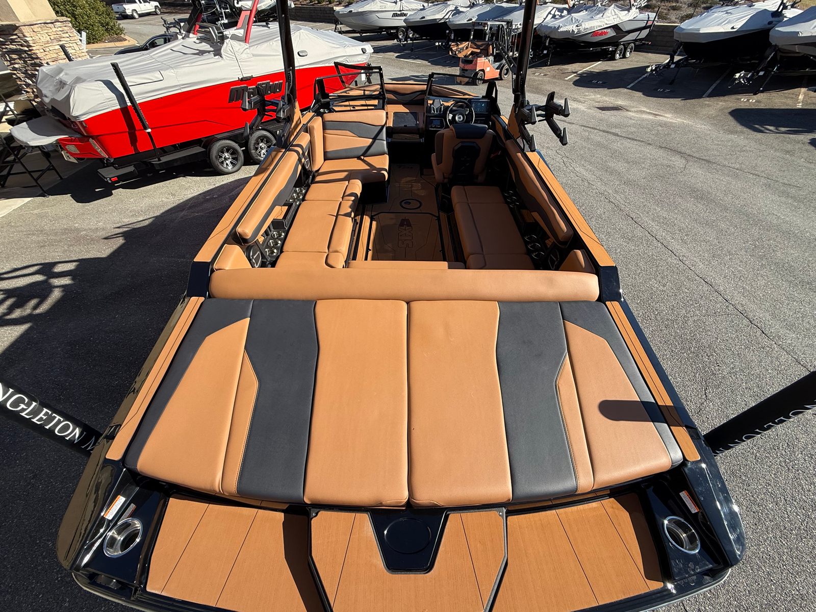 The Axis T235 is loaded with special features designed to enhance your boating experience. The Malibu Monsoon M6DI engine is paired with a Standard - 17x155 - 1778 propeller, optimizing thrust and maneuverability for all water sports activities. The Ebony - AW26 Tower provides a sturdy platform for wakeboard racks and speakers, while the heater with three outlets ensures comfort during cooler mornings or late-season rides. The N/A Axis Mid-Ship Decal adds a touch of style to the boat's exterior, making it instantly recognizable on the water.For music lovers, the Stereo Option - Pack 3 delivers premium sound quality, complemented by a stereo remote for easy control and a powerful 12-inch subwoofer with an amp. This setup transforms the Axis T235 into a floating entertainment hub, perfect for parties and gatherings. Every detail, from the tower to the audio system, is crafted to maximize enjoyment and convenience, setting this Ski & Wakeboard boat apart from the competition.