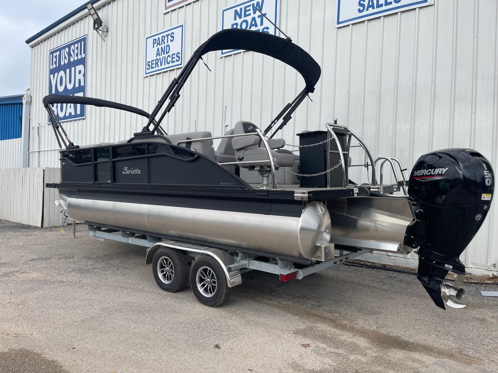 In summary, the 2026 Barletta Aria A22CC pontoon boat is a remarkable blend of style, performance, and versatility. With its powerful Mercury 150L Four Stroke engine, striking Matte Black and Black Diamond railskin, Blackout Package, Triple Toon Package, double bimini, trailering cover, and in-floor midship storage with rod storage, this pontoon is designed to deliver unforgettable experiences on the water. If you’re looking for a Barletta boat for sale that offers luxury, comfort, and excitement, the Aria A22CC is the ultimate choice. Don’t miss your chance to own this exceptional pontoon boat – contact your local dealer today to learn more and start your next adventure!