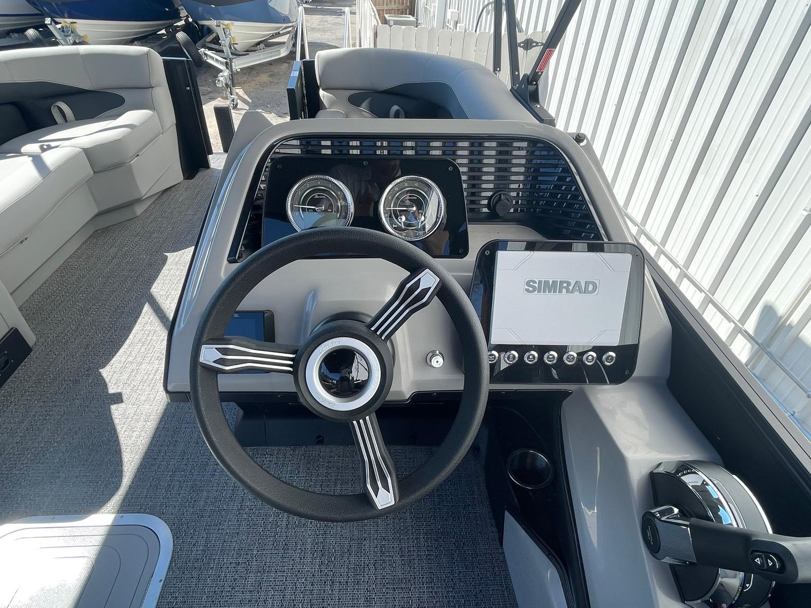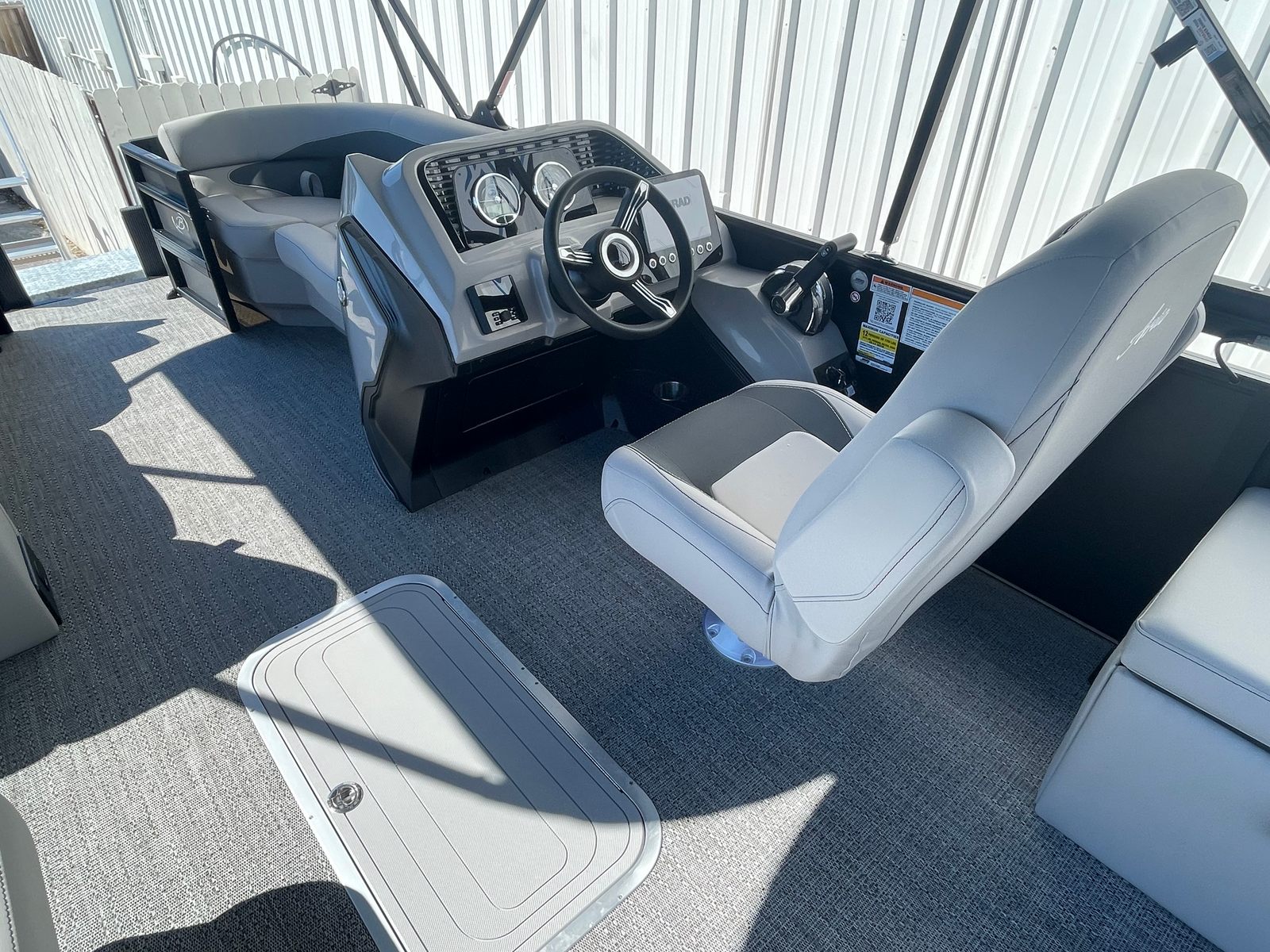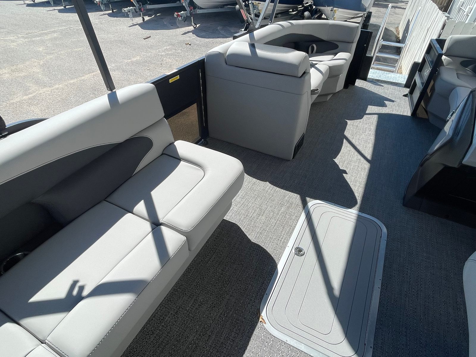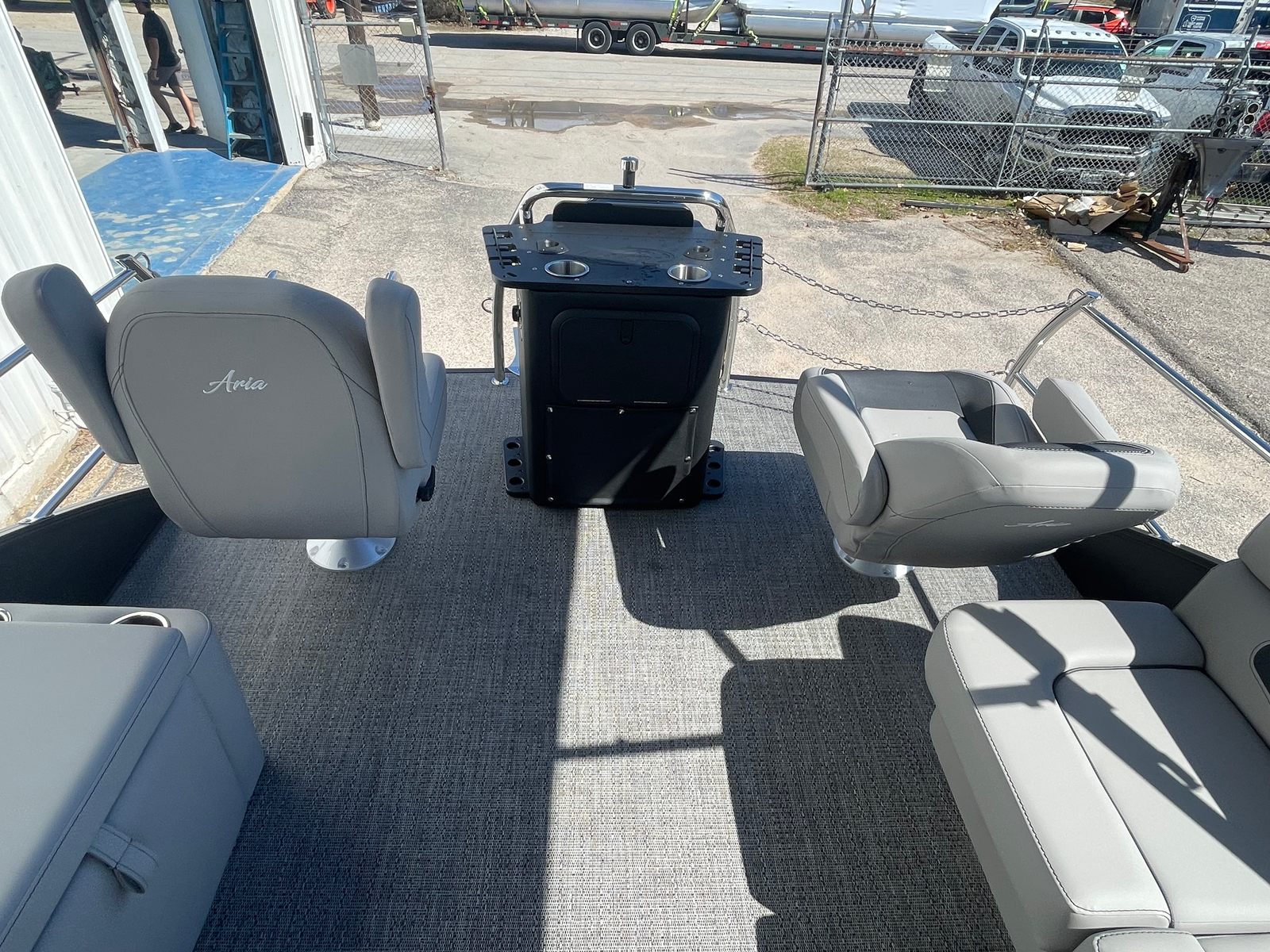 The Barletta Aria A22CC is packed with features designed to enhance your boating experience. Its spacious deck layout provides plenty of seating for family and friends, making it easy to host gatherings or enjoy quiet moments on the water. The pontoon’s innovative design ensures that every inch of space is utilized efficiently, offering both comfort and functionality. The center console configuration adds a sporty touch and allows for easy navigation, giving the captain excellent visibility and control.This new pontoon boat also boasts high-quality construction materials, ensuring durability and longevity for years of worry-free enjoyment. The Aria A22CC’s modern aesthetic is complemented by premium finishes and attention to detail, creating an inviting atmosphere for everyone on board. Whether you are lounging in the sun or enjoying a meal with loved ones, this Barletta boat for sale delivers a first-class experience.