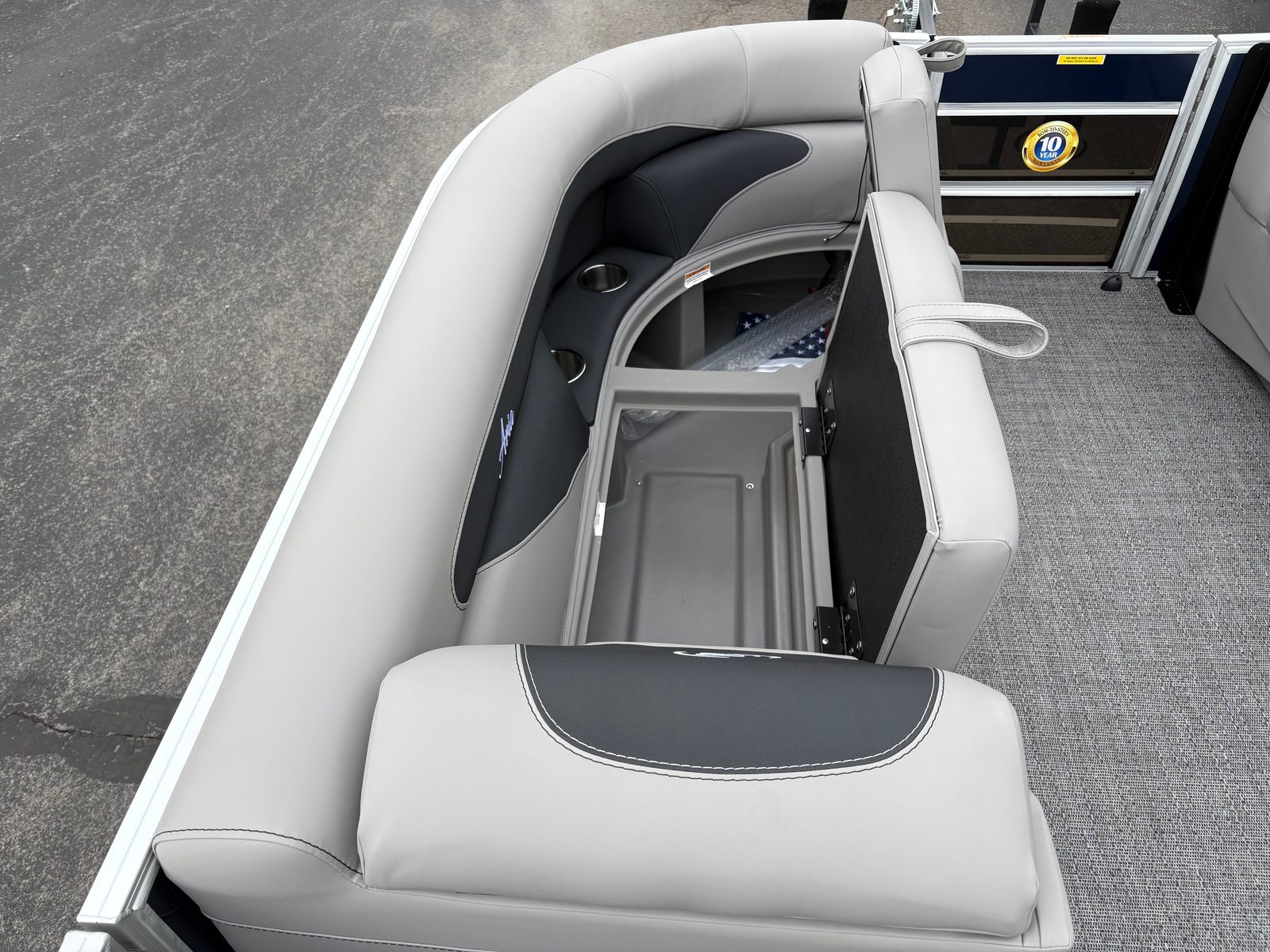 The 2026 Barletta Aria A22CC is loaded with features designed to maximize your enjoyment and convenience on the water. The striking Blue Sapphire Railskin sets the tone for a vessel that’s as beautiful as it is functional. Inside, the Tempest Gray furniture offers plush seating and ample space for friends and family, while the Amore Gray flooring provides a modern, easy-to-clean surface that stands up to the rigors of active days on the water.One of the standout features is the Triple Toon Package Aria, which adds a third pontoon for increased stability, smoother rides, and improved handling. The onboard battery charger for the single battery ensures your boat is always ready to go, while the stainless steel flag pole with an American flag adds a patriotic touch to your outings. For anglers and gear enthusiasts, the in-floor midship storage with rod storage offers a secure and convenient place to stow fishing rods and other essentials, keeping the deck clutter-free and organized.