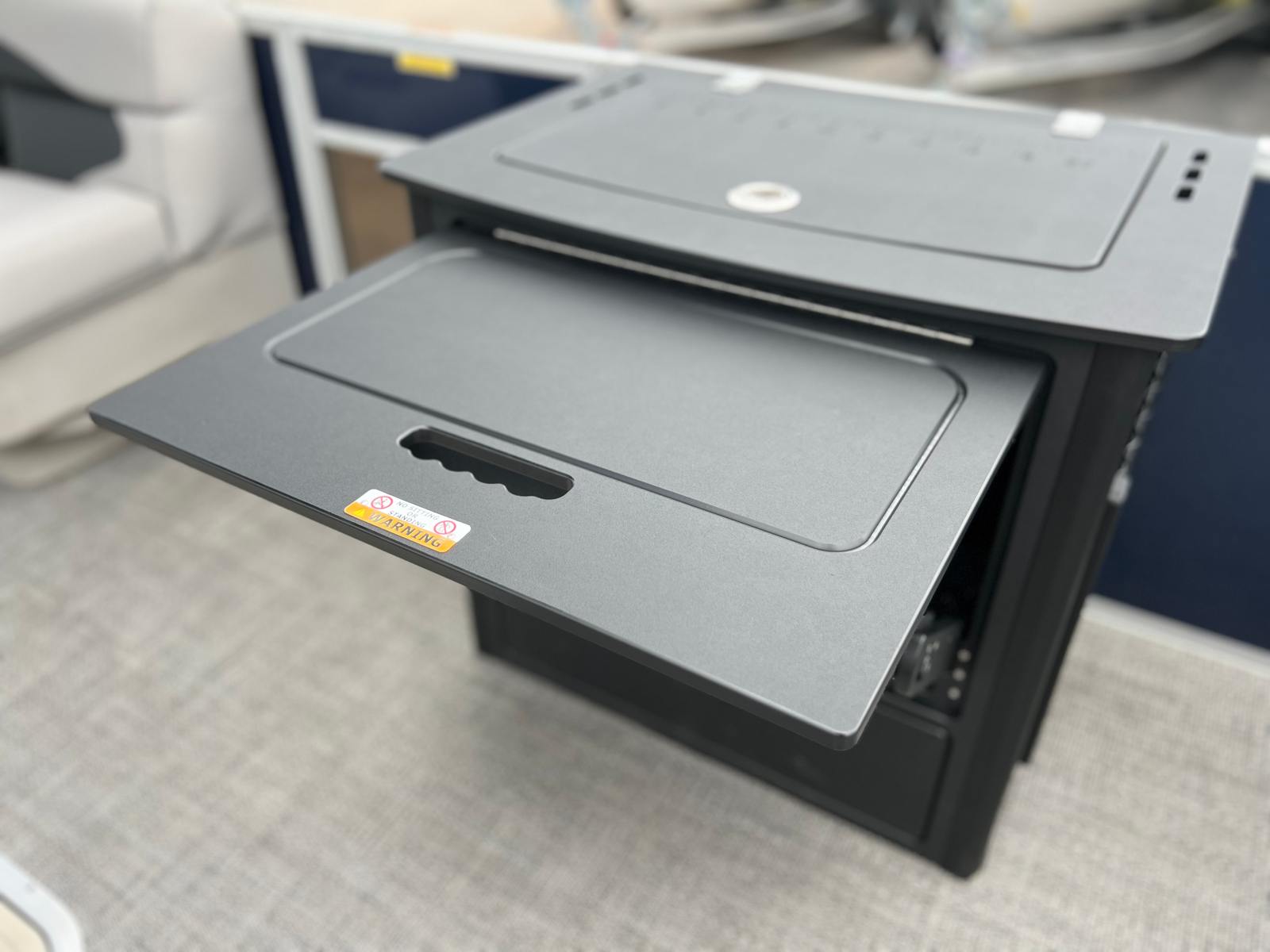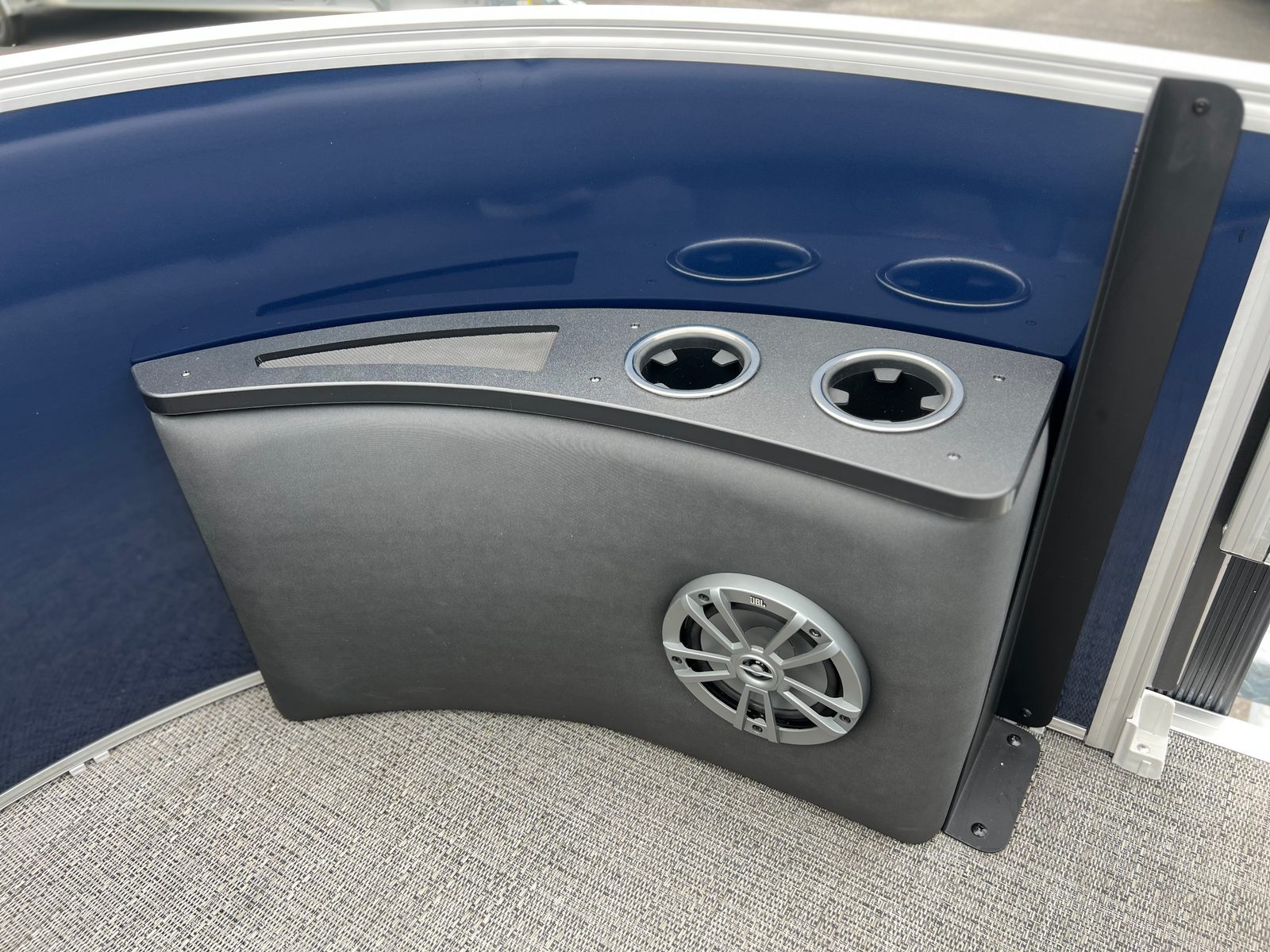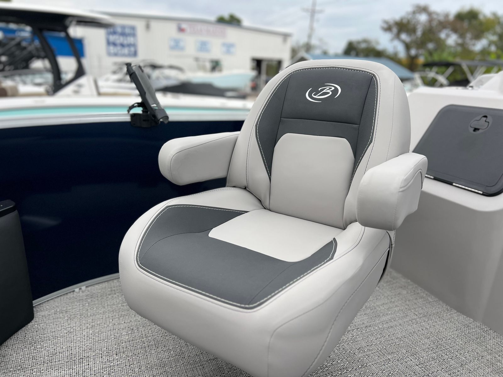 The 2025 Barletta Aria A22F is loaded with features designed to enhance your boating experience. The Triple Toon Package Aria provides added stability and buoyancy, ensuring a smooth and comfortable ride even in choppier waters. The Amore Gray flooring is not only stylish but also easy to maintain, offering a sophisticated look that complements the Tempest Gray furniture. The helm is equipped with a Simrad 7 G07 XSE, providing advanced navigation and control at your fingertips. The Blue Sapphire Railskin adds a touch of elegance and modern flair, while the Metal Jacket Protectant safeguards the exterior from the elements, preserving the boat’s beauty for years to come.