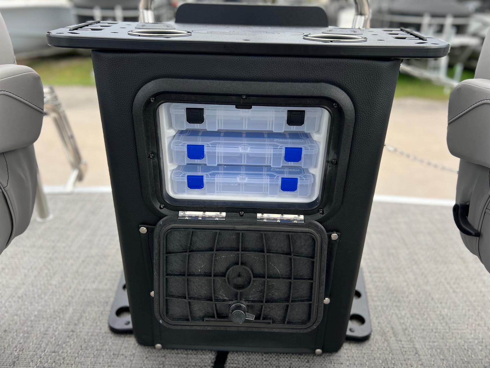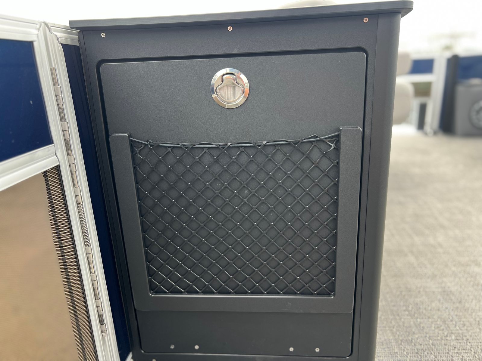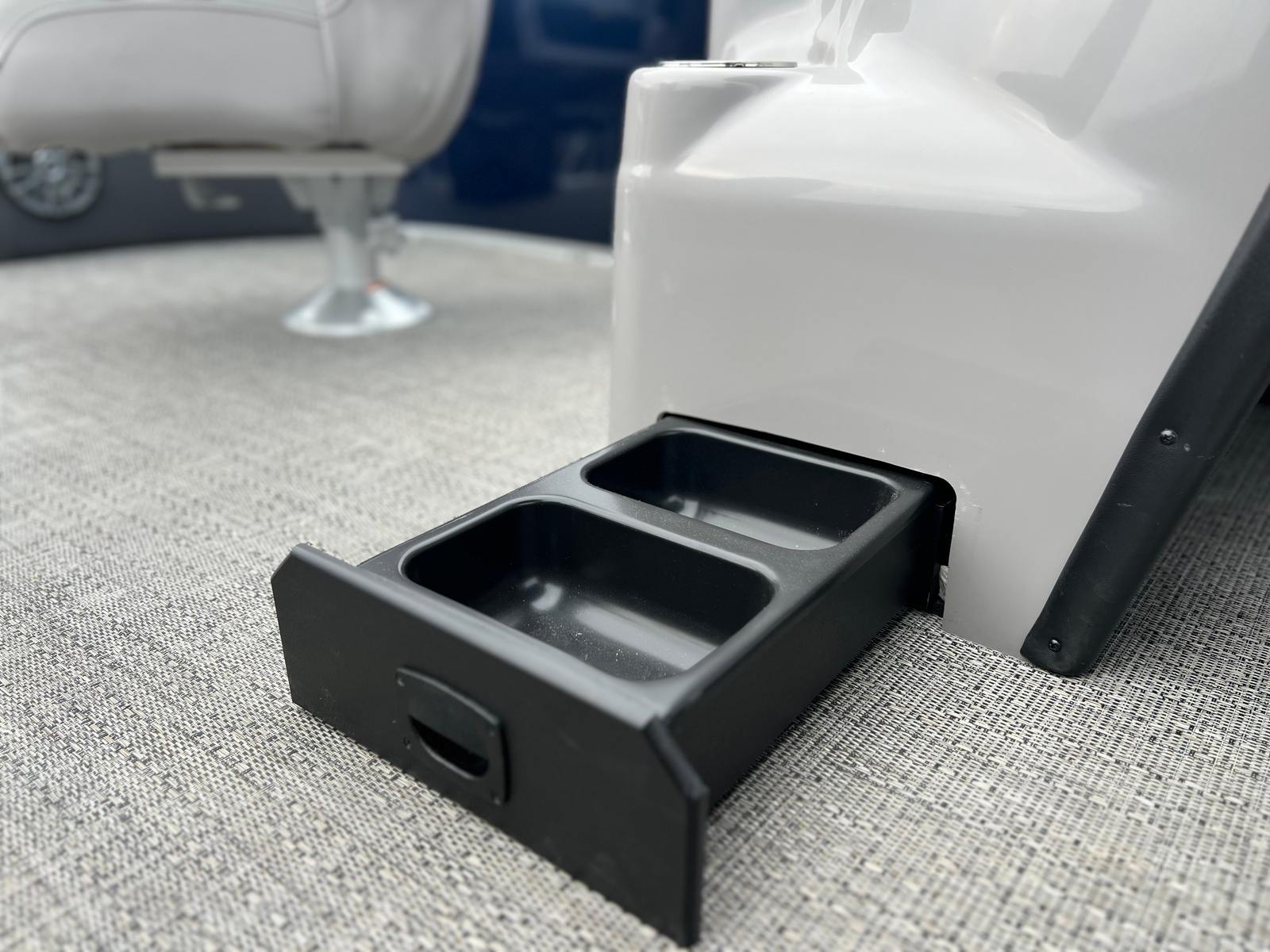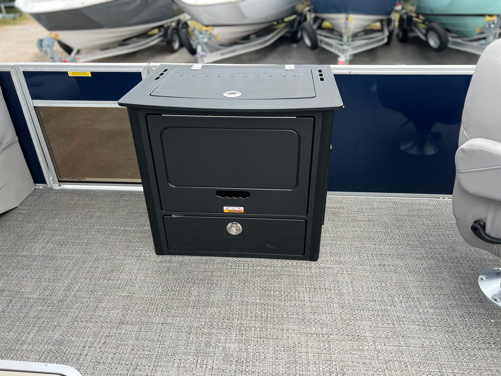The 2025 Barletta Aria A22F is loaded with features designed to enhance your boating experience. The Triple Toon Package Aria provides added stability and buoyancy, ensuring a smooth and comfortable ride even in choppier waters. The Amore Gray flooring is not only stylish but also easy to maintain, offering a sophisticated look that complements the Tempest Gray furniture. The helm is equipped with a Simrad 7 G07 XSE, providing advanced navigation and control at your fingertips. The Blue Sapphire Railskin adds a touch of elegance and modern flair, while the Metal Jacket Protectant safeguards the exterior from the elements, preserving the boat’s beauty for years to come.