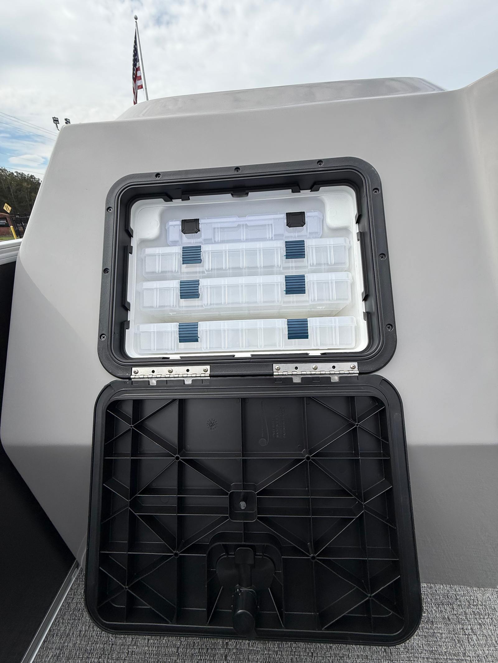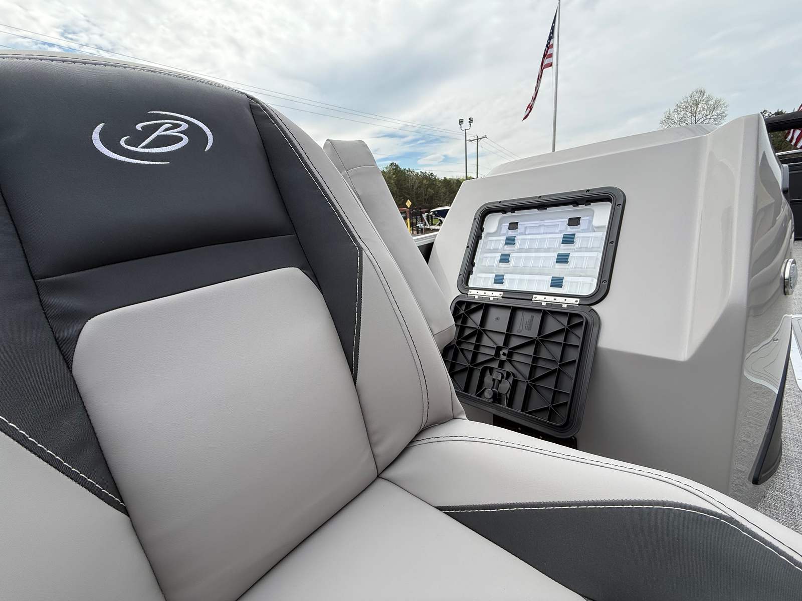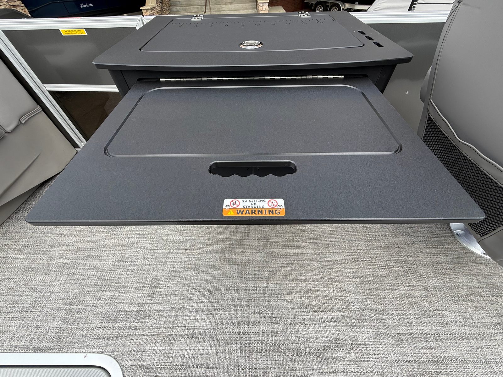 The 2026 Barletta Aria A22F is packed with thoughtful features designed to enhance your time on the water. The clipped playpen cover with poles provides essential protection from the elements, keeping your boat’s interior in pristine condition. Inside, the in-floor midship storage with dedicated rod storage offers ample space for your gear, making it easy to keep the deck clutter-free and organized. The on-board battery charger for the single battery ensures you are always ready to go, providing peace of mind for longer outings. Every detail, from the premium Tempest Gray furniture to the durable Tessa Gray flooring, has been selected to offer both comfort and durability, ensuring your pontoon remains a welcoming retreat for years to come.