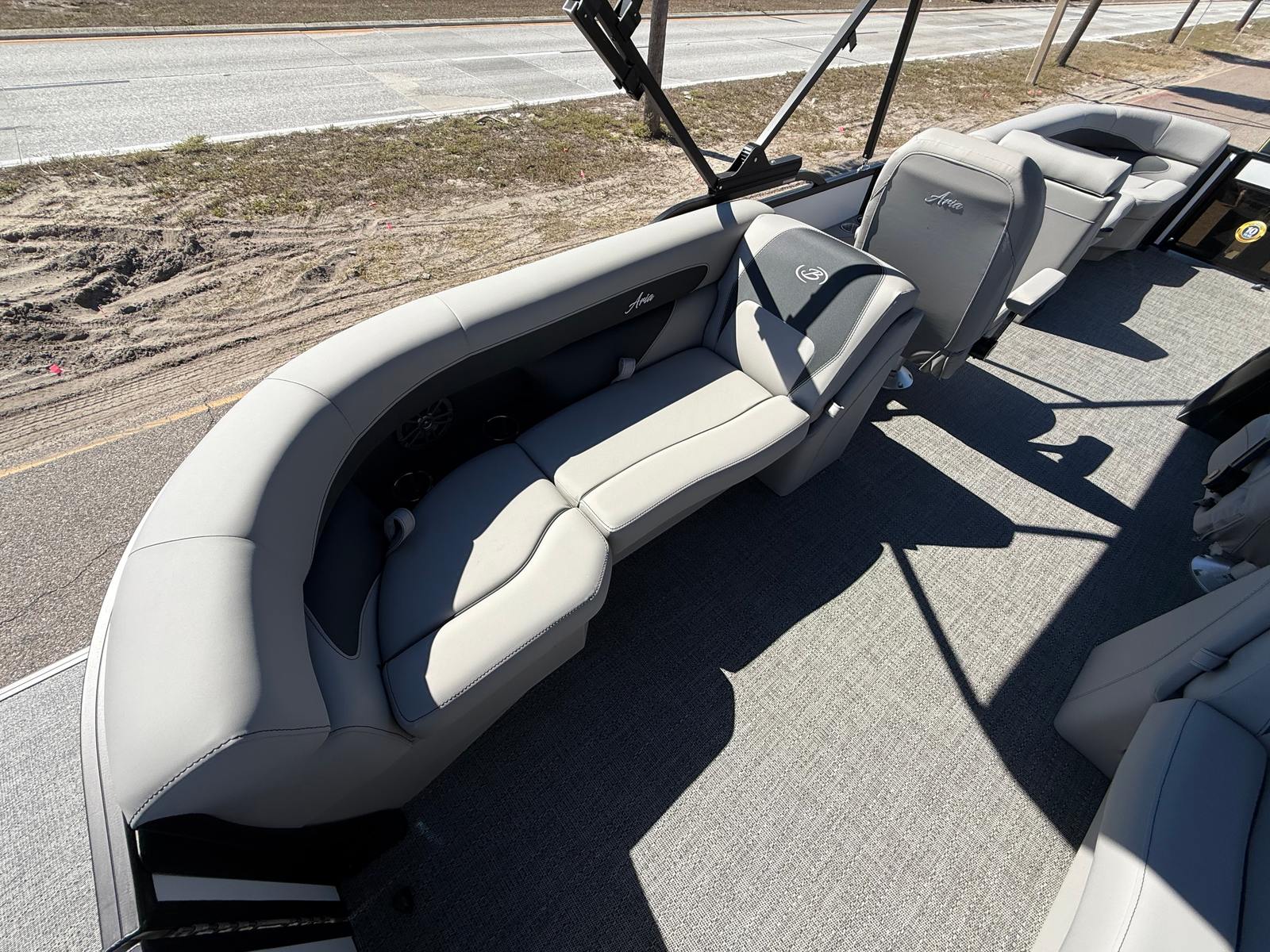 This Barletta boat for sale is the perfect companion for a wide range of activities. Imagine gathering your family for a day of swimming and picnicking, or inviting friends aboard for an evening cruise under the stars. The spacious deck and comfortable seating make it ideal for socializing, while the powerful engine and Triple Toon Package open up opportunities for water sports and exploring new waterways. Whether you are planning a relaxing weekend getaway, a fishing trip, or a celebration on the water, the Aria A22QC-Platinum adapts to your needs and enhances every experience.