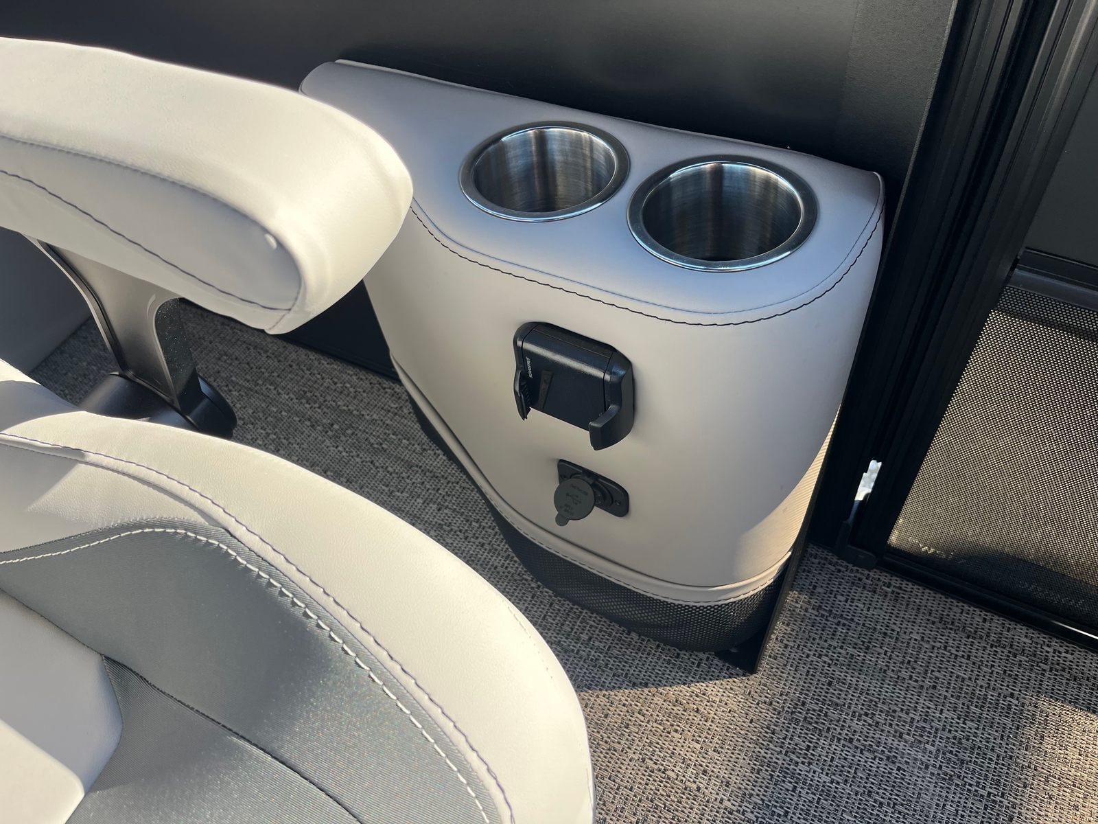 The Barletta Aria A22QC-Platinum is packed with features designed to enhance your time on the water. Its spacious layout provides plenty of room for passengers to relax, socialize, and enjoy the scenery. The high-quality construction and attention to detail are evident in every aspect of this pontoon boat, from the plush seating to the stylish finishes. The thoughtful design ensures that every inch of the 21-foot deck is optimized for comfort and convenience, making it easy to entertain guests or unwind with family.Special features of the Aria A22QC-Platinum include a premium seating arrangement that maximizes both comfort and functionality. The open deck plan allows for easy movement throughout the boat, while the quality materials and craftsmanship ensure durability and longevity. The pontoon’s sleek exterior and modern accents give it a sophisticated look that will turn heads at any marina or dock.