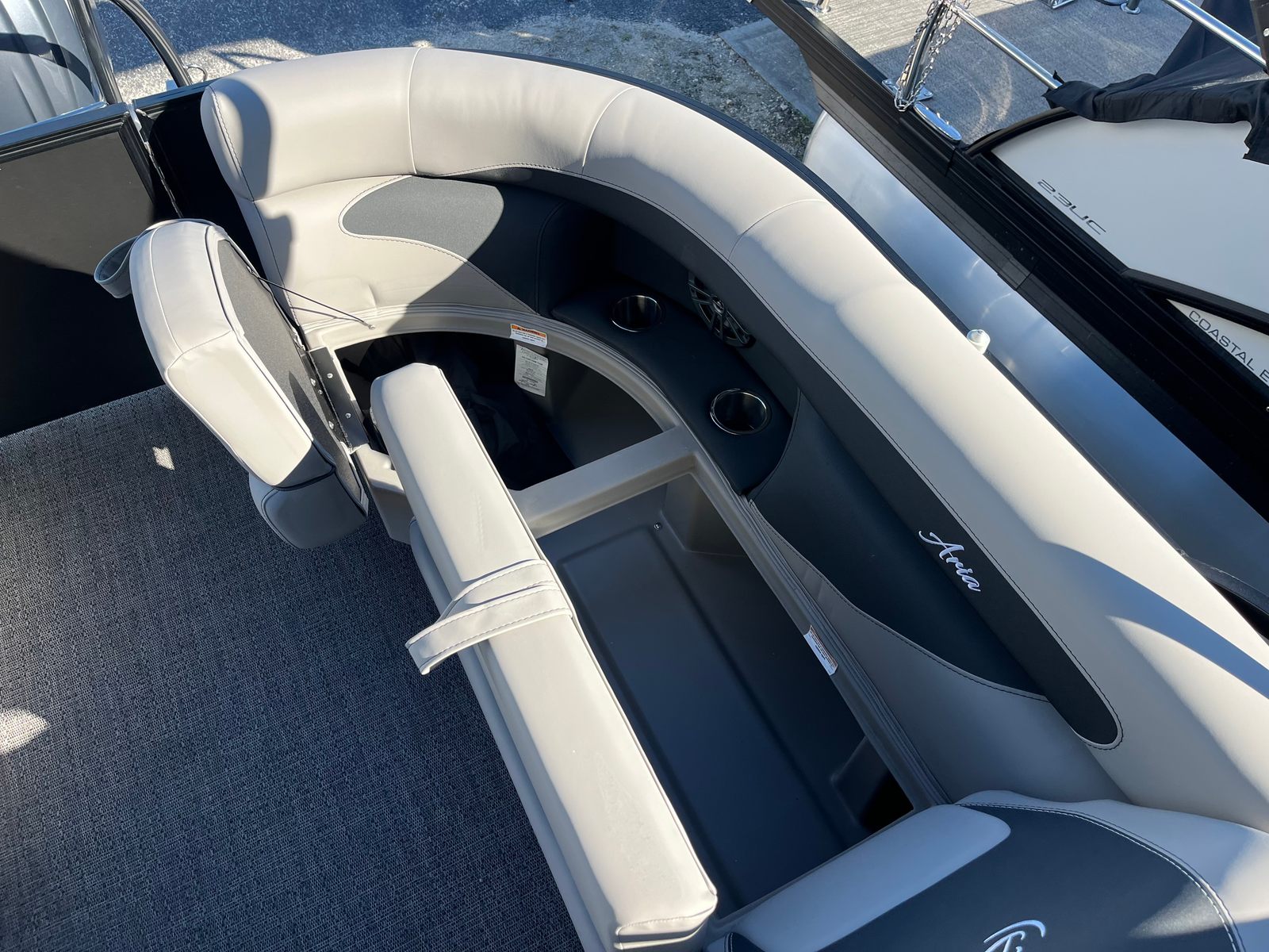 The Barletta Aria A22QC-Platinum is not just about luxury and fun—it is also built for practicality and ease of ownership. Its manageable 21-foot length makes docking and maneuvering a breeze, even for those new to boating. The efficient design ensures that you can make the most of your time on the water without worrying about complicated maintenance or storage issues.This pontoon boat is ideal for a variety of activities, from leisurely cruises and sunset tours to more active pursuits like swimming and water sports. The ample deck space provides plenty of room for coolers, gear, and personal items, making it easy to pack everything you need for a day of adventure. The sturdy construction and reliable engine mean you can count on the Aria A22QC-Platinum to deliver a worry-free boating experience, season after season.