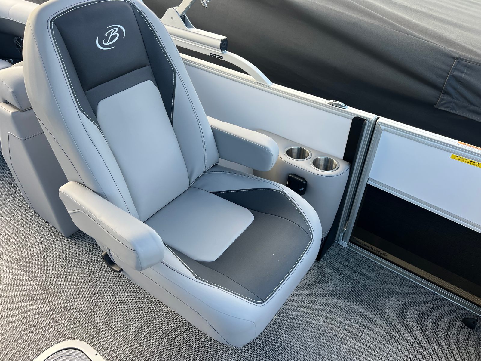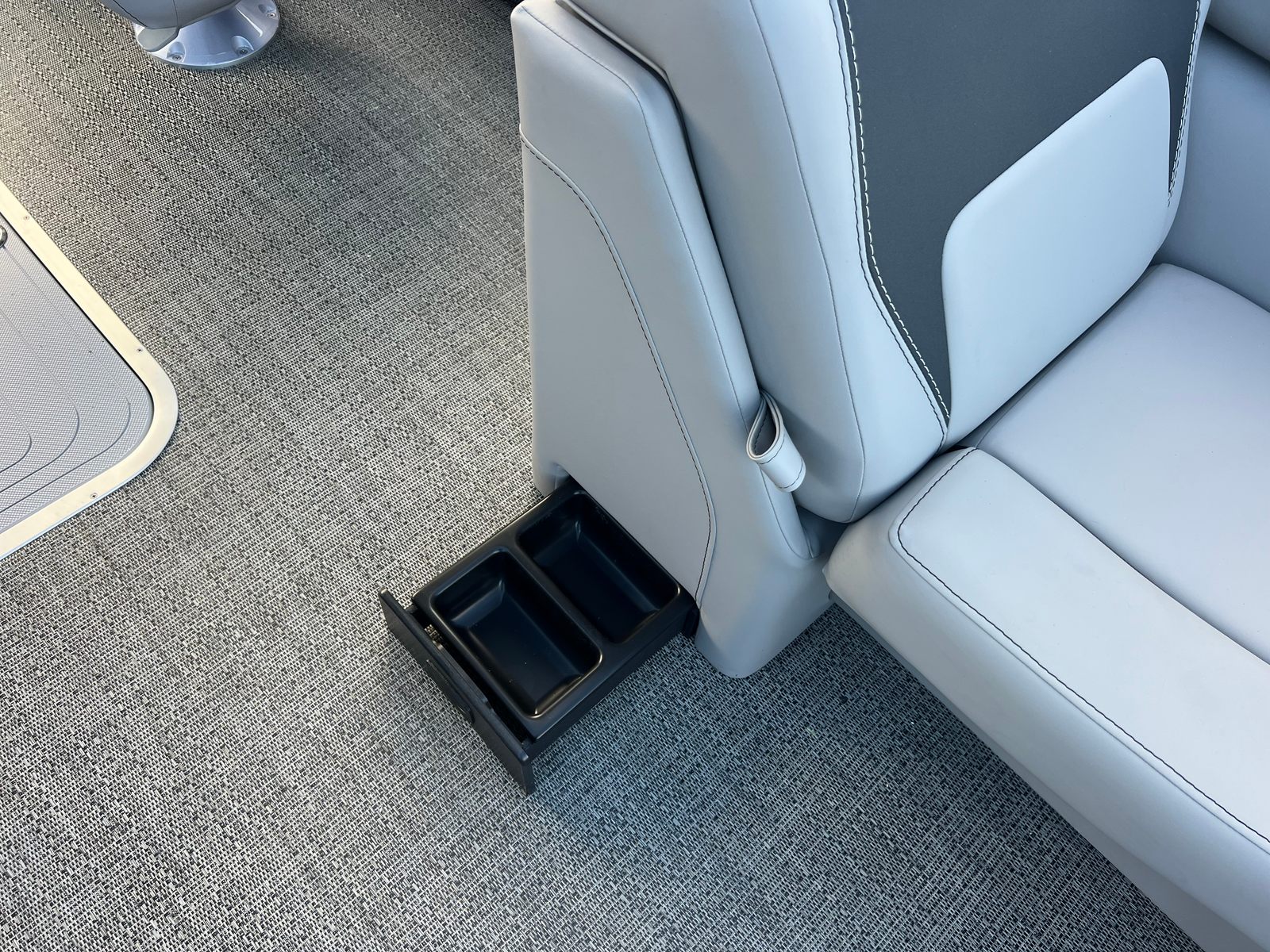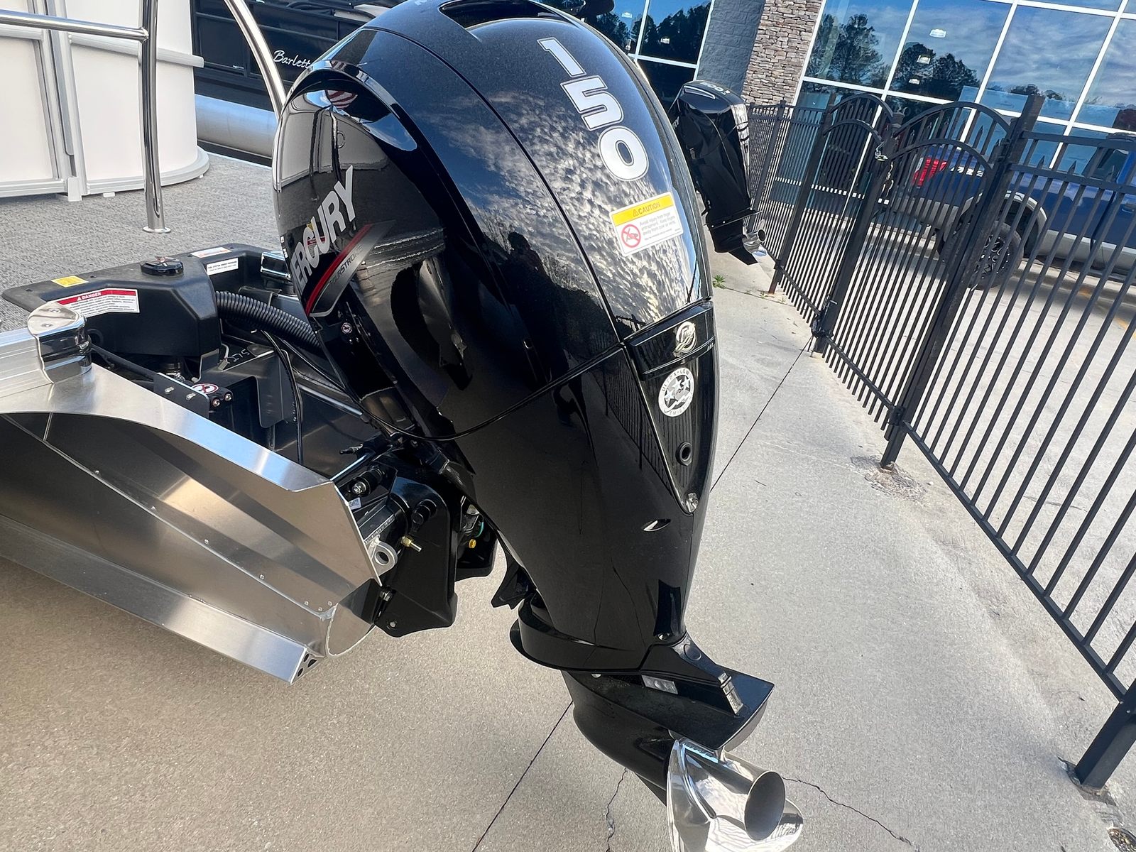 Owning the Barletta Aria A22QC means embracing a lifestyle filled with fun, relaxation, and unforgettable moments. The spacious layout is ideal for socializing, allowing guests to lounge comfortably while enjoying panoramic views. The plush Tempest Gray furniture invites you to unwind, whether you are basking in the sun or sharing laughter with friends. The Amore Gray flooring is not only stylish but also practical, designed to withstand the elements and provide a safe, slip-resistant surface.The Triple Toon Package Aria ensures a stable platform, making it easy for everyone to move about the boat with confidence. The powerful Mercury engine offers the thrill of speed when you want it, yet operates quietly and efficiently for peaceful cruising. With the in-floor midship storage, you can bring along everything you need for a day of adventure without sacrificing space or comfort.