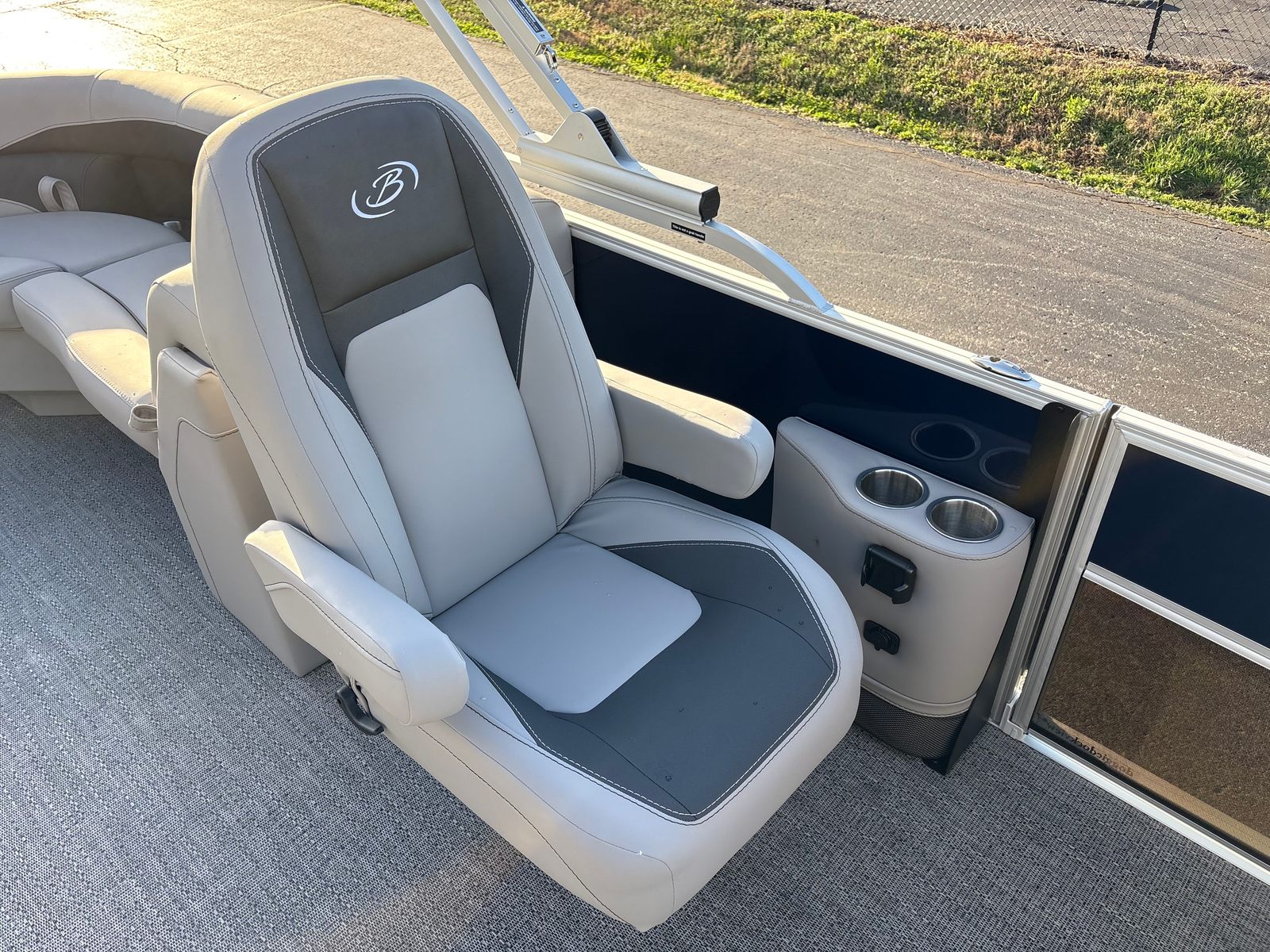 Step aboard the Barletta Aria A22QC and discover a world of thoughtful features designed to enhance your boating experience. The Railskin Color Aria in Blue Sapphire gives this pontoon a striking visual appeal, while the Tempest Gray furniture offers plush seating and a modern aesthetic. The Amore Gray flooring is both stylish and practical, providing a comfortable surface that’s easy to maintain.One of the standout features is the In Floor Midship Storage, offering ample space to stow away gear, water toys, or personal items, keeping the deck clutter-free and organized. The On Board Battery Charger - Single Battery ensures your pontoon is always ready for adventure, while the Stainless Steel Flag Pole with American Flag adds a touch of patriotic flair and elegance.