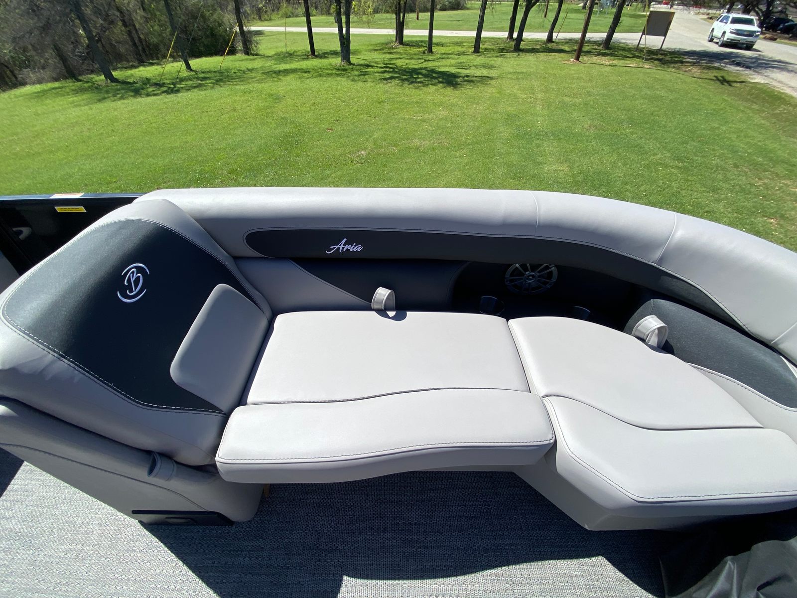 The Barletta Aria A22QC is packed with features designed to enhance your time on the water. The triple toon package provides added stability and buoyancy, allowing for a smoother ride and increased passenger capacity. The railskin color combination of Black Diamond and Gray Moonstone, complemented by the Blackout Package Aria, creates a striking visual statement that sets this pontoon apart from the rest.Step inside, and you will find Tempest Gray furniture that offers both comfort and durability, perfect for long days spent lounging or socializing. The Amore Gray flooring is not only stylish but also easy to clean and maintain, ensuring your pontoon stays looking its best season after season. A stainless steel flag pole with an American flag adds a patriotic touch, making this Barletta boat for sale a proud centerpiece for any gathering on the water.