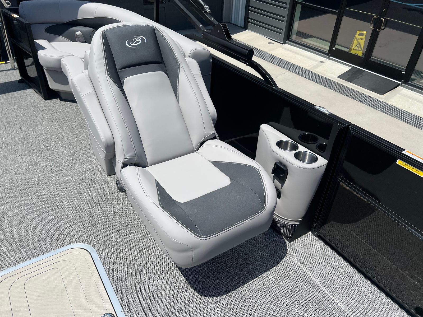 The Barletta Aria A22QC is packed with premium features that set it apart from other pontoon boats for sale. The Triple Toon Package Aria provides added buoyancy and stability, making it ideal for larger groups and active days on the water. The Railskin Packages, including the Blackout Package Aria and Gray Moonstone accent, give the boat a modern, upscale look, while the Black Diamond color adds a touch of sophistication. The Eagle 5 GPS ensures accurate navigation and peace of mind, whether you’re exploring new waterways or returning to your favorite spot.A stainless steel flag pole with an American flag adds a patriotic flair, perfect for holiday outings and special occasions. The Tempest Gray furniture offers plush seating and a contemporary aesthetic, inviting you and your guests to relax in style. In-floor midship storage provides convenient space for stowing gear, water toys, and essentials, keeping the deck clutter-free and organized.