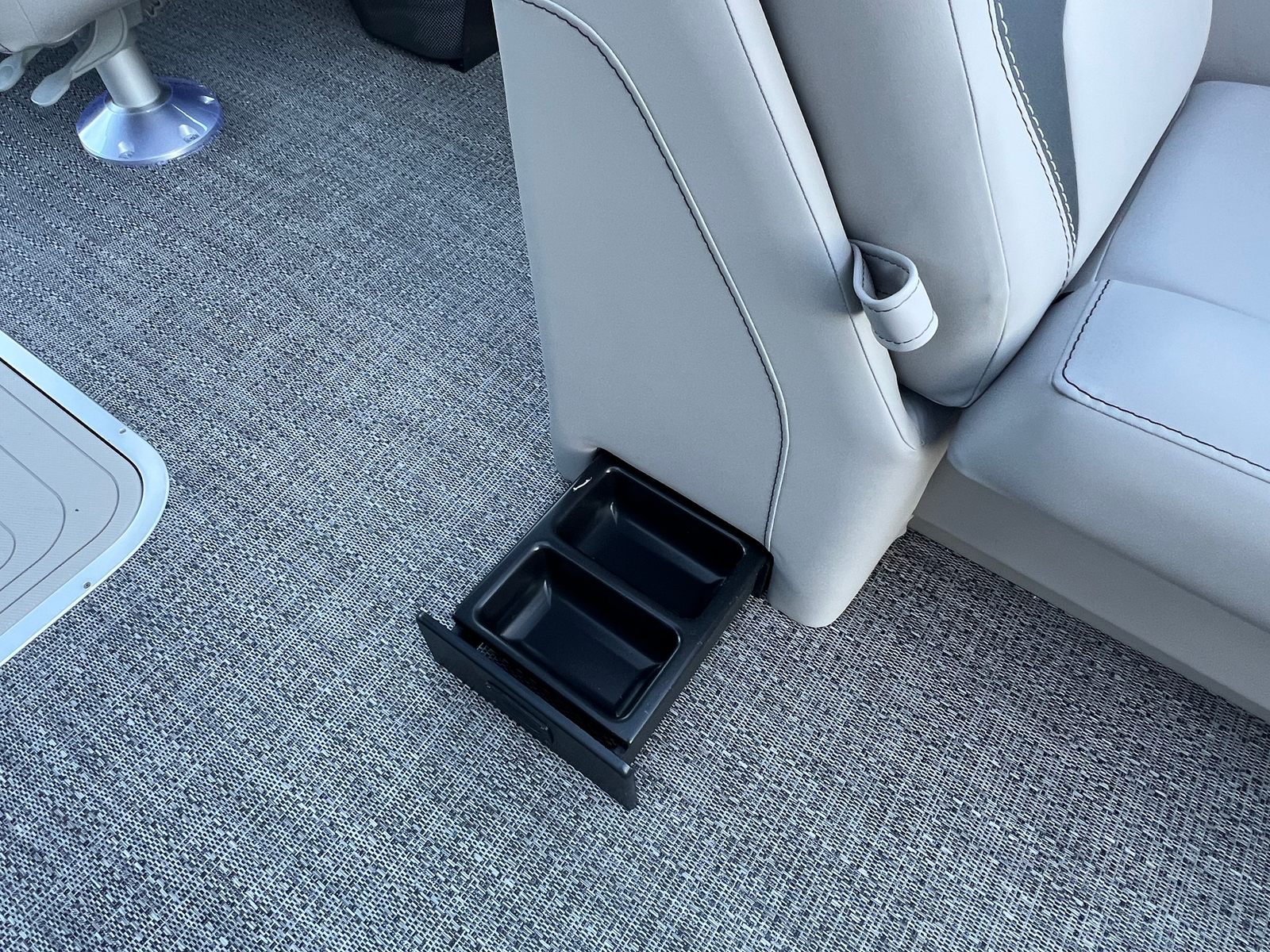 Practicality is at the core of the Barletta Aria A22UC-Platinum’s design. The triple toon configuration provides enhanced stability, making docking and maneuvering a breeze even for less experienced boaters. The efficient Mercury engine not only delivers impressive power but also helps keep fuel costs manageable, allowing you to spend more time enjoying the water and less time at the pump.The playpen cover with poles offers convenient protection, making it easy to keep your pontoon clean and ready for your next adventure. The thoughtfully designed storage spaces ensure that all your gear, snacks, and essentials are within easy reach, so you can focus on having fun without clutter or hassle. The durable flooring and high-quality materials are built to withstand the rigors of frequent use, ensuring your investment remains in top condition for years to come.