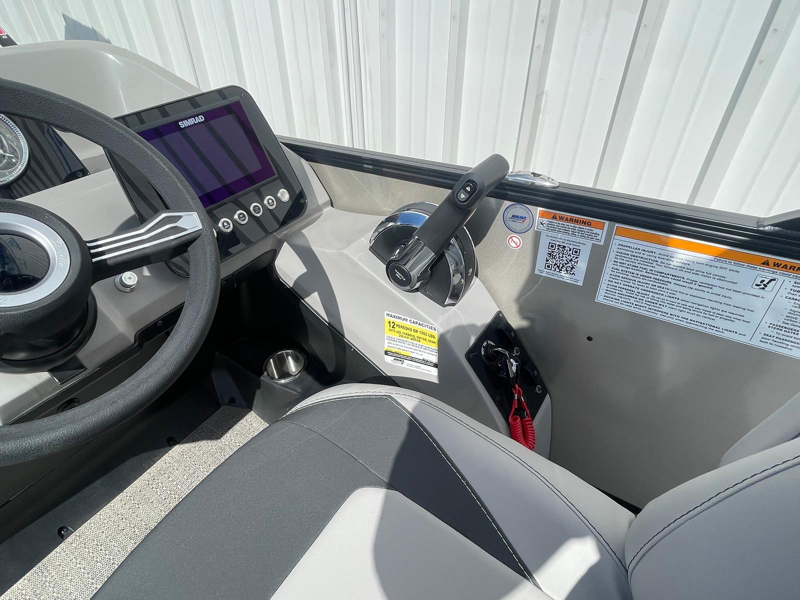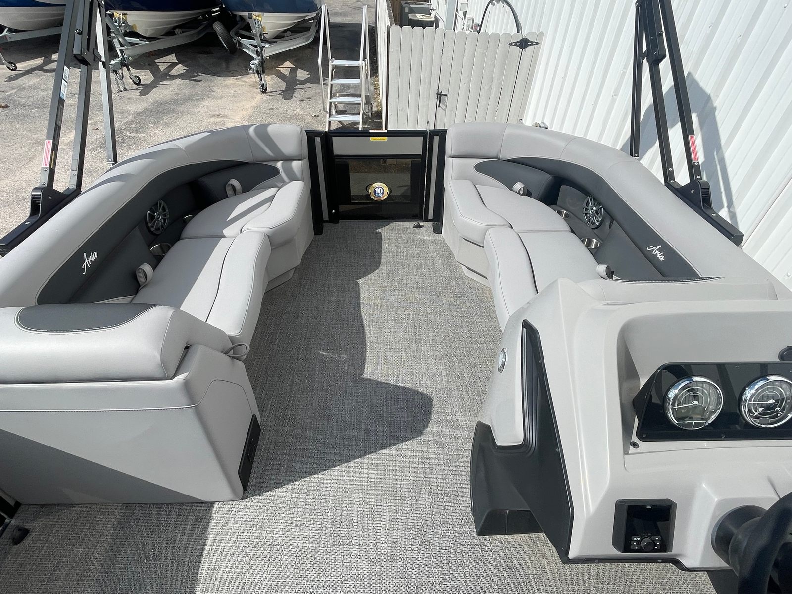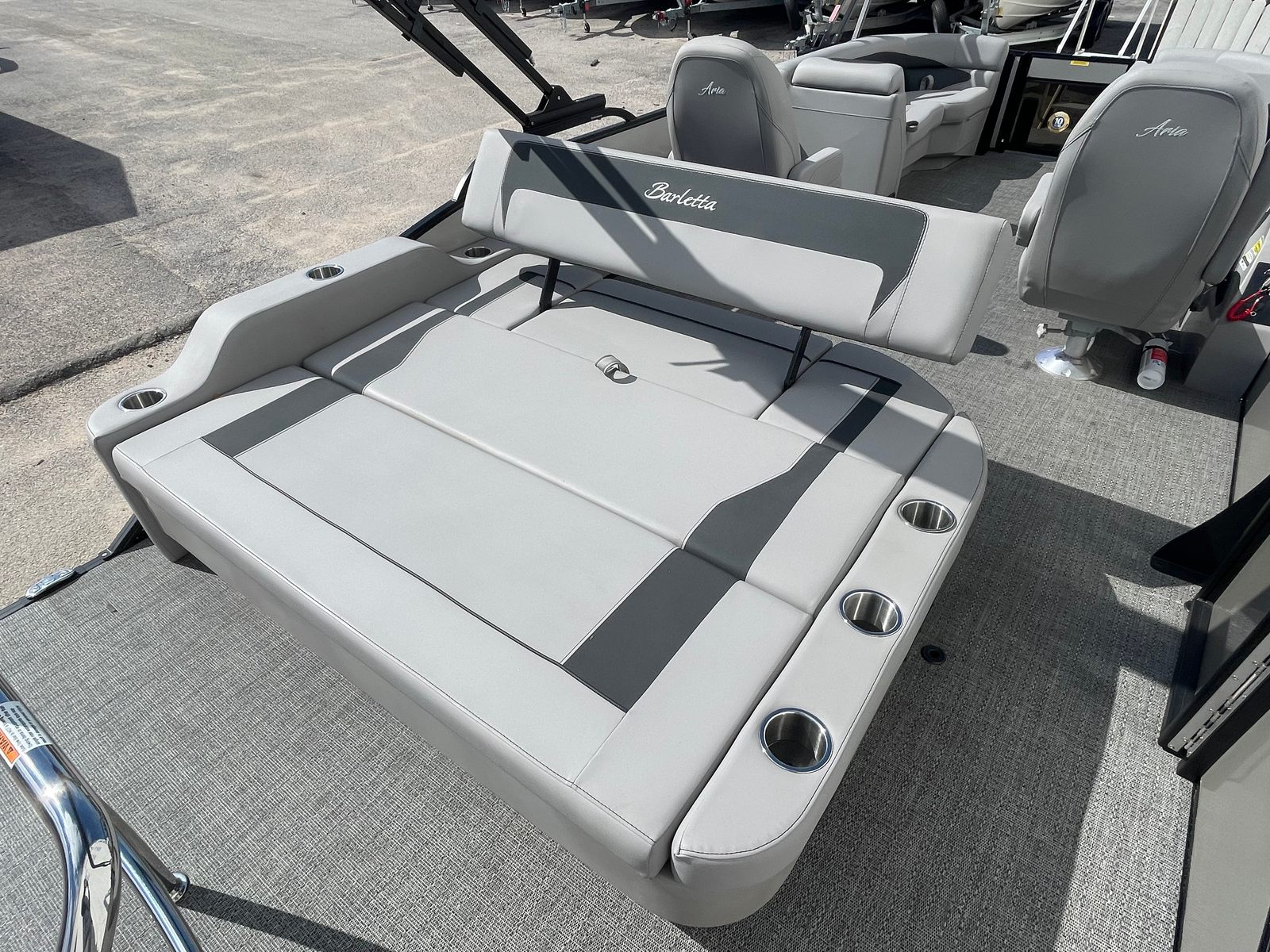 The Barletta Aria A22UC-Platinum is thoughtfully designed with features that enhance both functionality and enjoyment. Its spacious 21-foot deck provides ample room for friends and family, making it ideal for socializing, sunbathing, or enjoying a picnic on the water. The modern design and premium materials ensure that every detail, from the plush seating to the sleek exterior, reflects Barletta’s commitment to quality and comfort.This new pontoon boat for sale is built to impress with its innovative layout, offering plenty of space to move around and relax. The Aria A22UC-Platinum’s construction is focused on durability and longevity, so you can count on years of reliable use. The attention to detail is evident in every aspect of the boat, from the sturdy rails to the stylish accents that set it apart from other pontoon boats on the market.