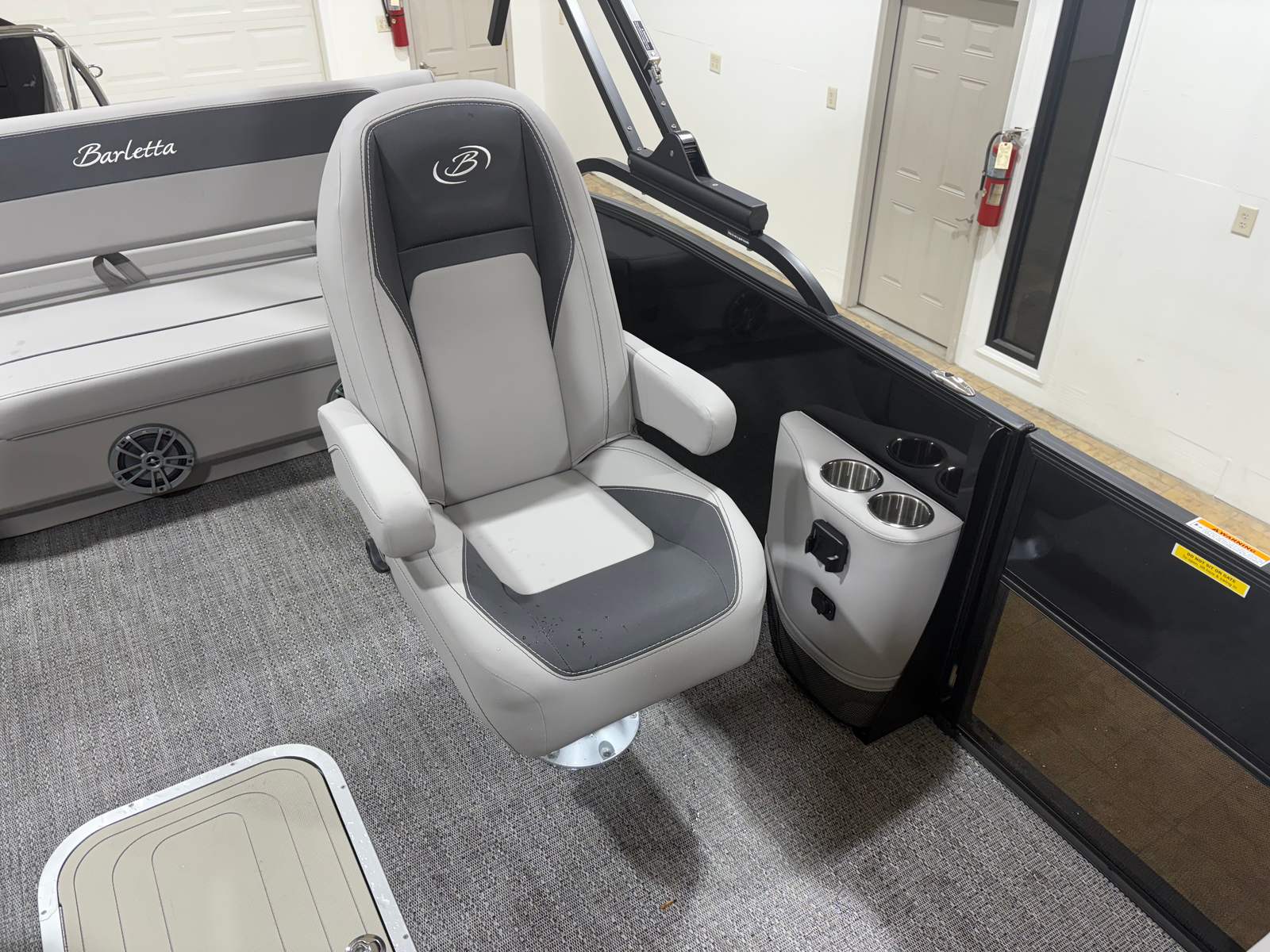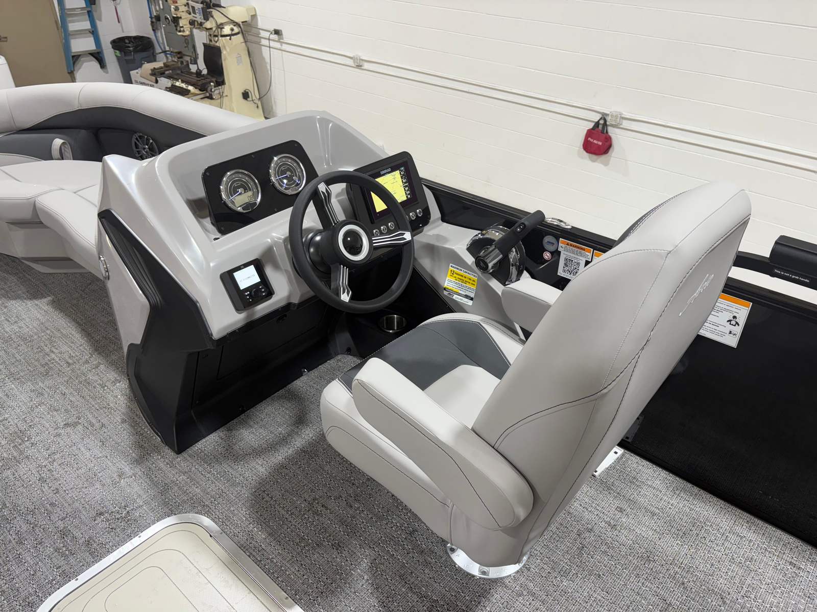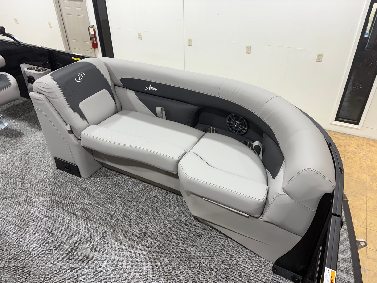 Step aboard and discover a world of comfort and style. The Tempest Gray furniture offers plush seating for family and friends, creating an inviting space to relax and socialize. The Amore Gray flooring is both elegant and practical, providing a slip-resistant surface that’s easy to clean and maintain. The Blackout Package Aria adds a bold, contemporary touch to the boat’s overall aesthetic, while the stainless steel flag pole with an American flag adds a patriotic flair to your outings. Every detail, from the Railskin accents to the triple toon configuration, is thoughtfully designed to enhance your boating experience.