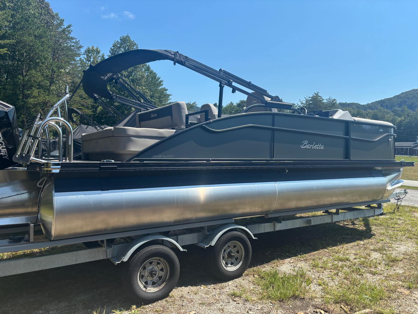 The 2026 Barletta Aria A22UC-Platinum is a brand-new pontoon boat that measures just over 21 feet in length, offering ample space for relaxation, entertainment, and fun. As a new model from Barletta, this pontoon boasts the latest innovations in design and engineering, ensuring a smooth and enjoyable ride every time you set out on the water. With its sleek Gray Moonstone Railskin color and Tempest Gray furniture, the Aria A22UC-Platinum exudes modern elegance and sophistication, making it a true head-turner at any marina or lake.