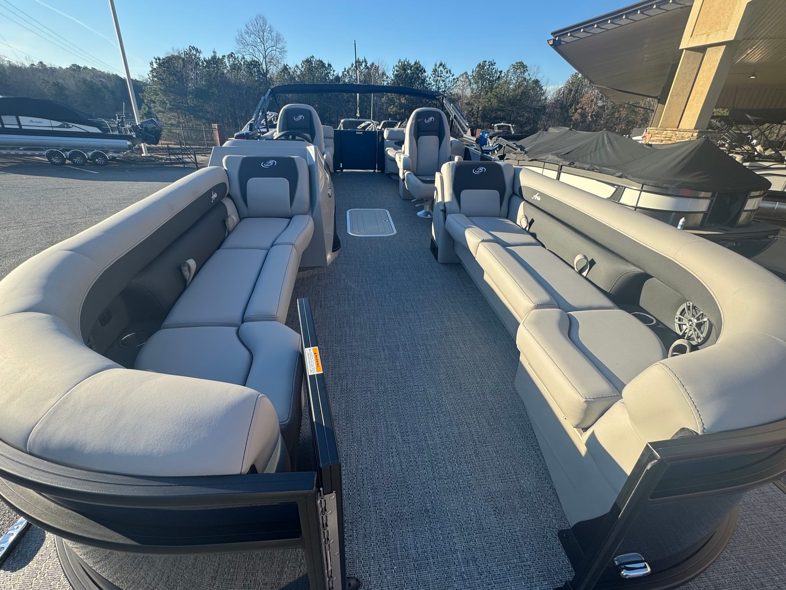 The Barletta Aria A24QC is designed with practicality in mind, making ownership as enjoyable as it is effortless. The triple toon configuration offers enhanced stability, making docking and maneuvering a breeze even for less experienced boaters. The onboard battery charger keeps your electrical systems ready to go, reducing downtime and maintenance. The durable flooring and furniture materials are easy to clean, so you can spend more time enjoying the water and less time on upkeep. The ample deck space provides plenty of room for coolers, gear, and water toys, ensuring you are always prepared for a day of fun.