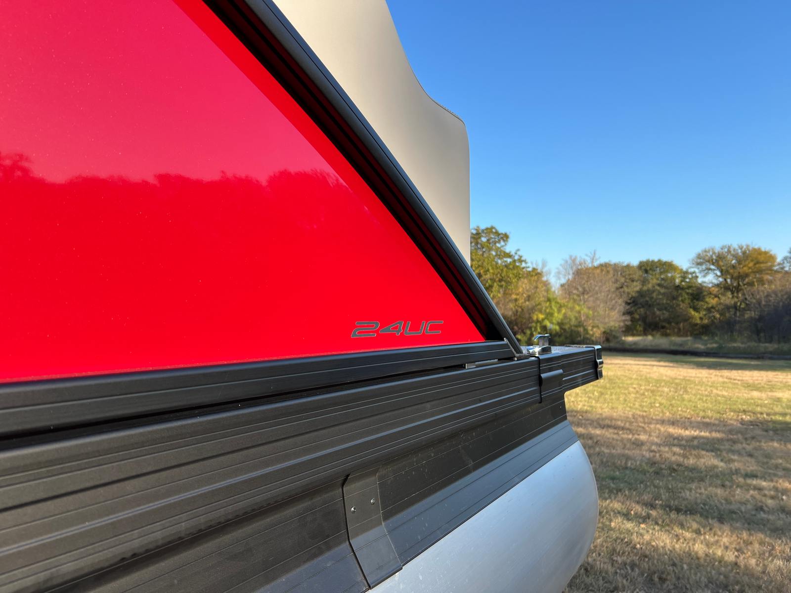 Step aboard the Aria A24UC and discover a world of premium features designed for comfort and convenience. The Tempest Gray furniture offers plush seating and a modern aesthetic, while the Amore Gray flooring provides a stylish and durable foundation for all your on-board activities. The in-floor midship storage is perfect for stowing away gear, water toys, or picnic essentials, keeping the deck clutter-free and organized. The stainless steel flag pole with an American flag adds a patriotic touch, making this pontoon boat a standout wherever you go.The Railskin Color Aria in Red Garnet, paired with the Black Diamond accent and Blackout Package Aria, creates a bold and sophisticated look that is sure to impress. Every detail, from the premium upholstery to the thoughtful storage solutions, is designed to enhance your boating experience and provide lasting value.