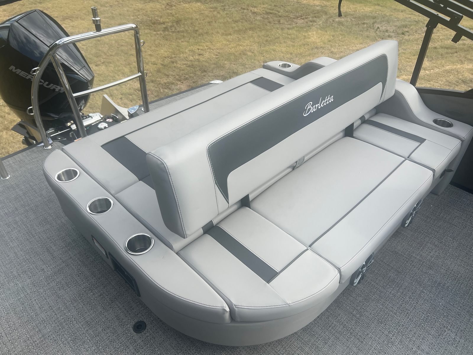 Owning the Barletta Aria A24UC pontoon boat means embracing a lifestyle of fun, relaxation, and social connection. The spacious deck layout is perfect for hosting gatherings, whether you’re celebrating a special occasion or enjoying a casual day with loved ones. The plush Tempest Gray furniture invites you to lounge in comfort, while the ample floor space allows for easy movement and plenty of room for activities.The advanced Mercury 250L FourStroke engine ensures you have the power to explore new destinations, tow water toys, or simply cruise with confidence. The Triple Toon Package Aria provides added stability, making the boat feel secure even when fully loaded with guests. With its stylish Railskin accents and blackout package, you’ll enjoy a boat that’s as visually striking as it is functional.
