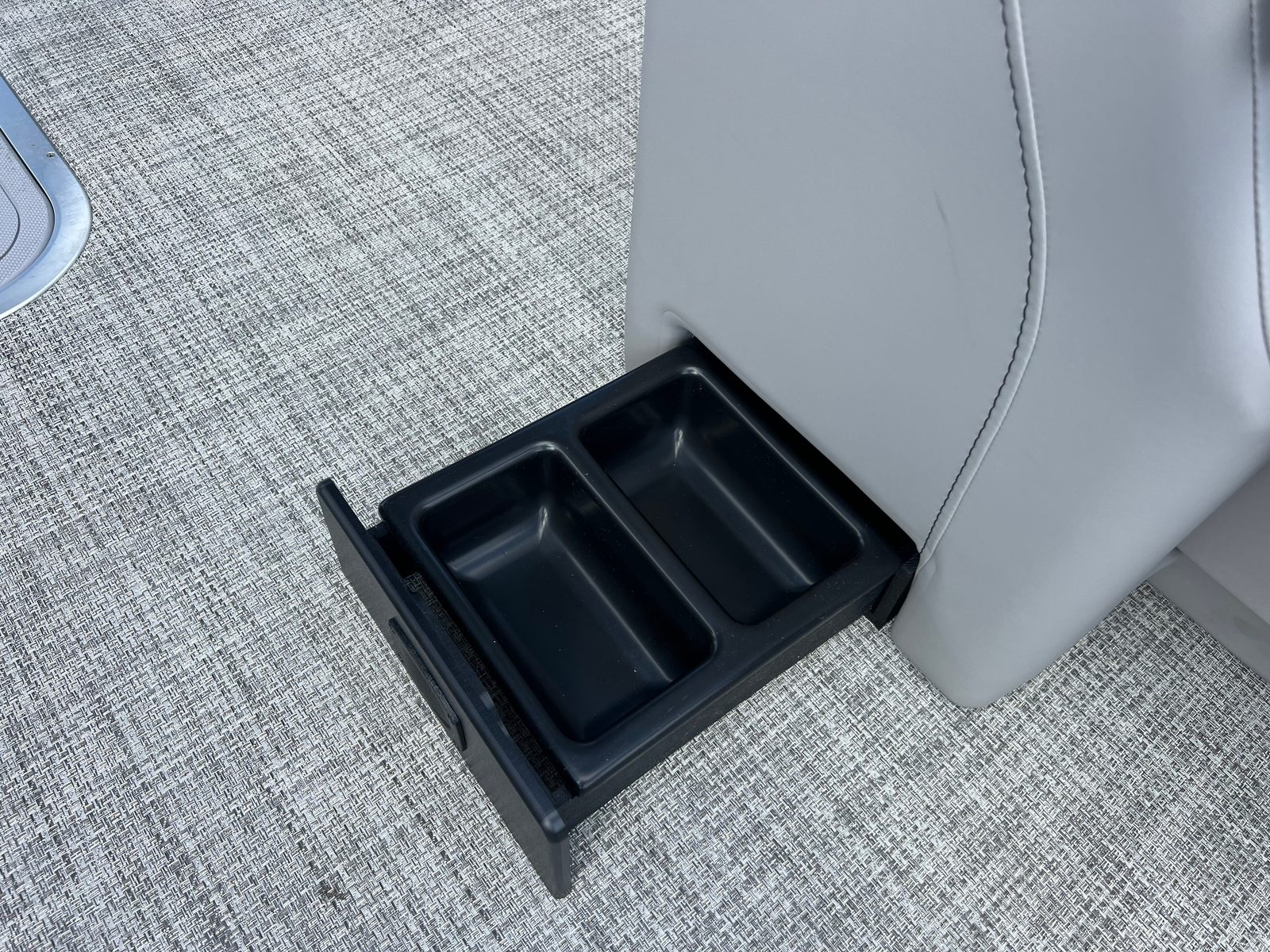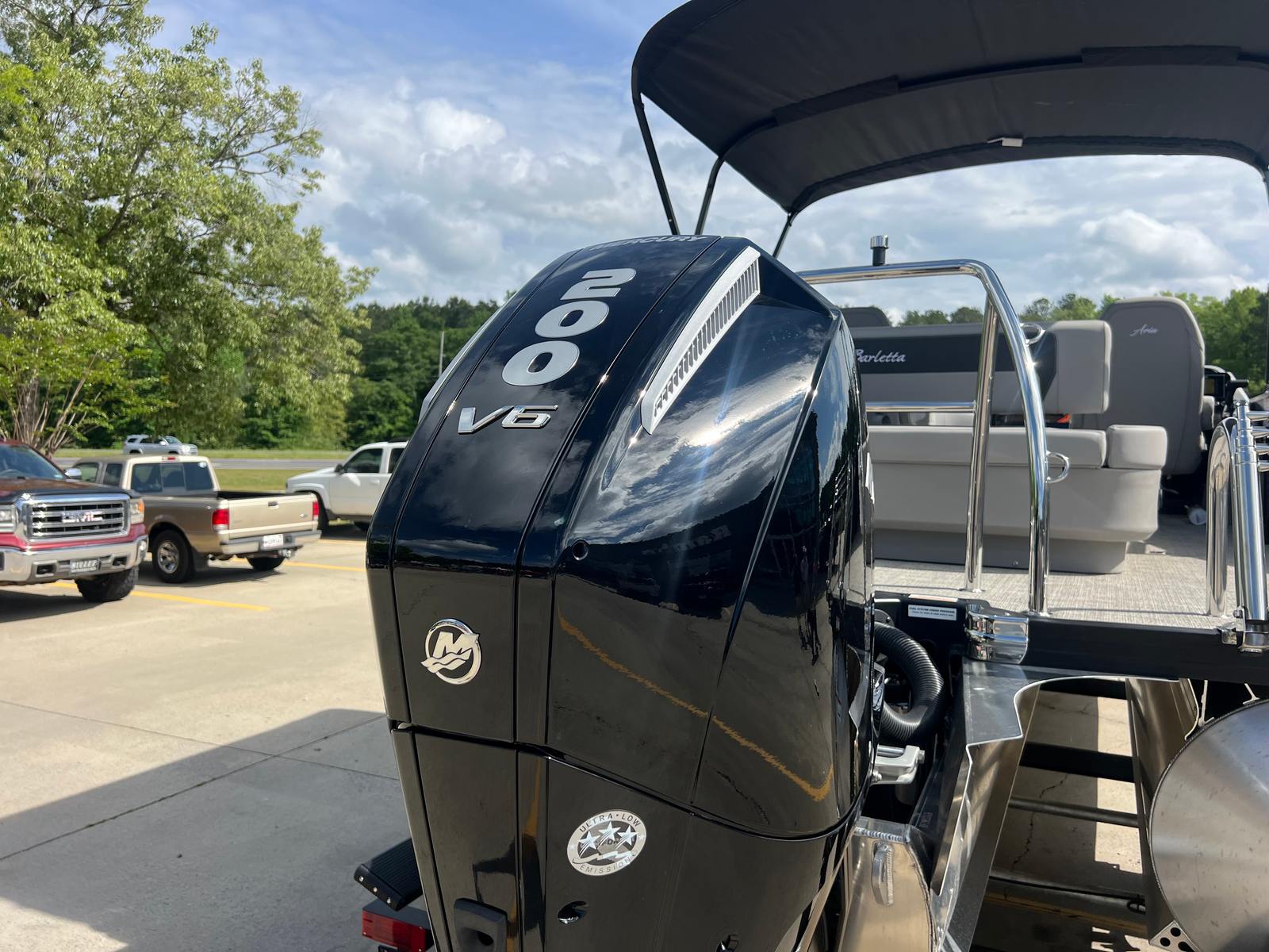 Practicality meets luxury in the Barletta Aria A24UC. The in-floor midship storage keeps your deck clutter-free, allowing you to bring along everything you need for a day on the water without sacrificing space or comfort. The clipped playpen cover with poles offers peace of mind, protecting your investment from sun, rain, and debris when your pontoon is docked or stored.Docking and maneuvering are made simple with the power assist steering and responsive Mercury engine, so you can easily navigate tight spaces or busy marinas. The durable stainless steel prop ensures reliable performance and minimal maintenance, giving you more time to enjoy your boat and less time worrying about upkeep. Whether you are a seasoned boater or new to the world of pontoons, the Barletta Aria A24UC is designed to make ownership easy and enjoyable.