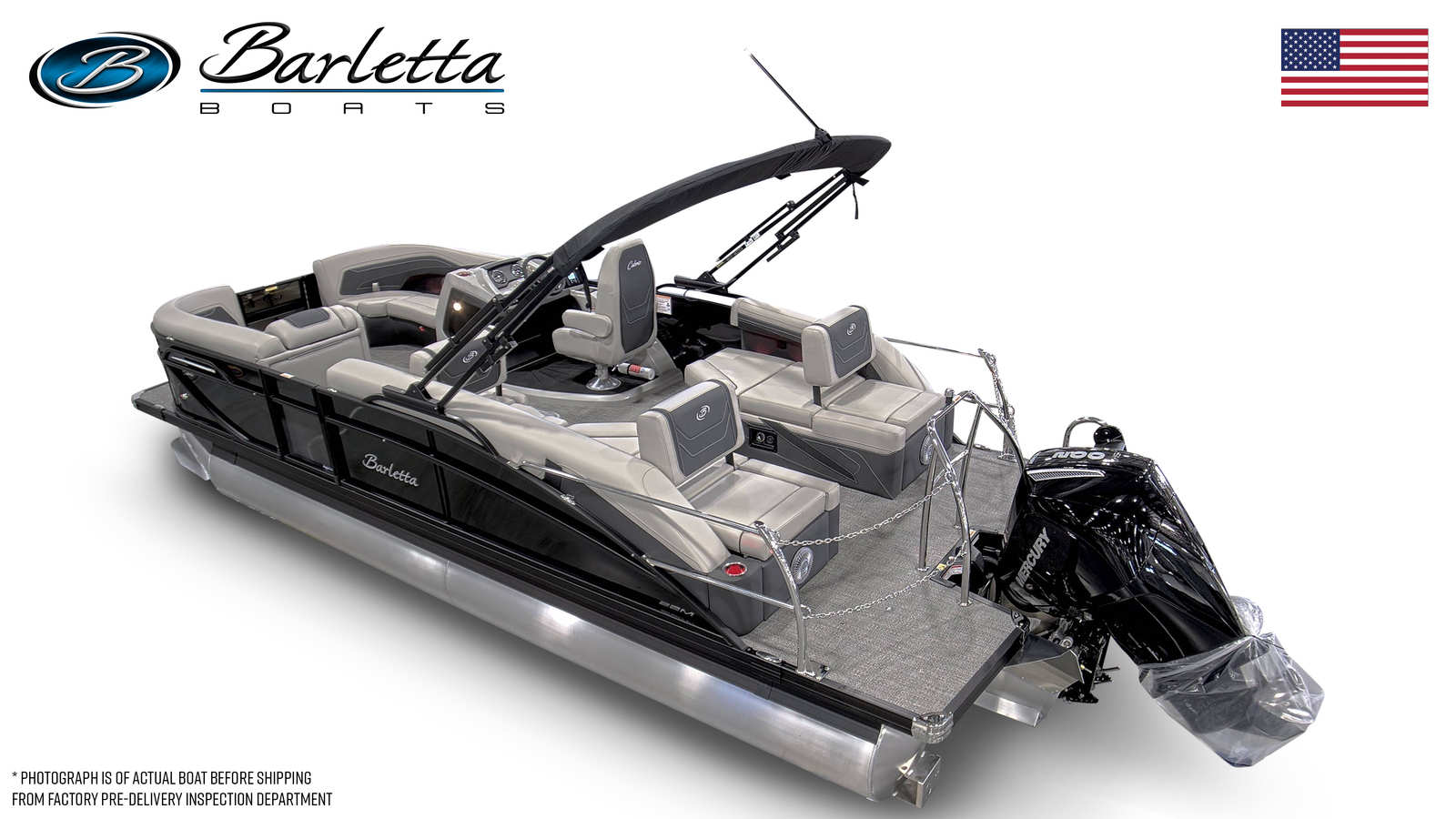 In summary, the 2026 Barletta Cabrio C22M is a standout pontoon boat for sale that combines cutting-edge performance, luxurious features, and practical design. With its powerful Mercury 200L FourStroke engine, stylish Black Diamond Railskin, and innovative Triple Toon Package with midship storage, this Barletta boat for sale offers everything you need for unforgettable days on the water. The Marquesan Gray furniture, Amore Gray flooring, and interior RGB lighting package create a welcoming and customizable environment, while the stainless steel flag pole and prop add durability and flair.If you’re ready to experience the ultimate in comfort, versatility, and fun, the Barletta Cabrio C22M is the pontoon boat you’ve been waiting for. Contact your local dealer today to learn more about this exceptional vessel and start planning your next adventure on the water.