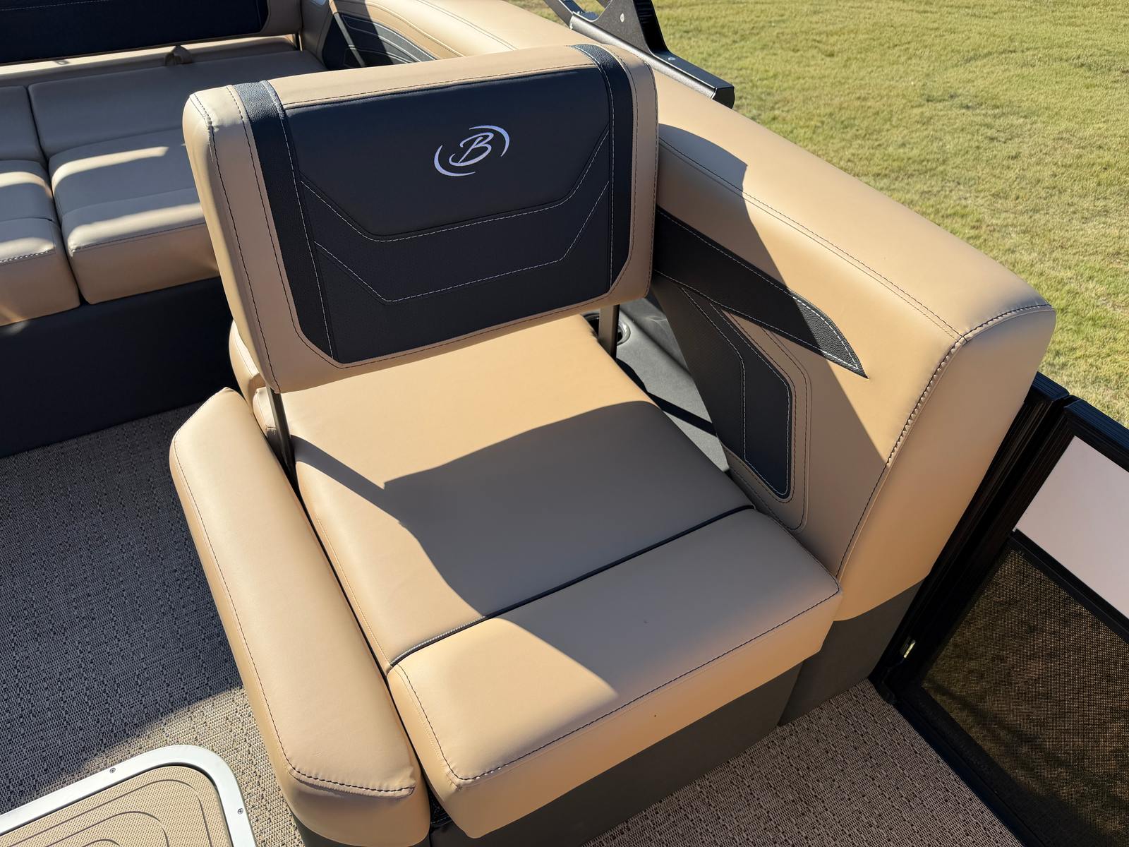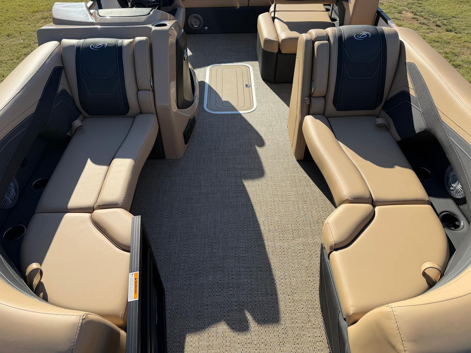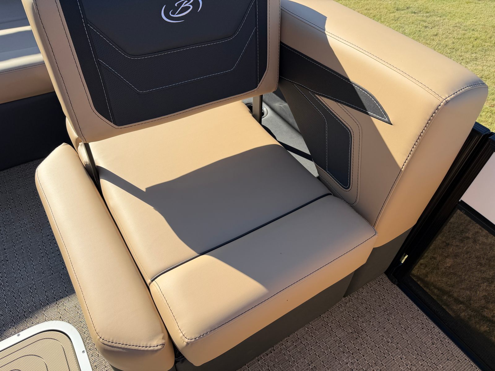 The Barletta Cabrio C22U is packed with features that set it apart from other pontoon boats for sale. Its Railskin Color in Black Diamond, accented with Winter White, creates a striking visual appeal, while the Blackout Package Cabrio adds a touch of modern sophistication. The furniture is upholstered in Carmella Tan with Onyx accents, providing both comfort and elegance. The Amore Tan flooring is not only stylish but also practical, offering durability and easy maintenance.One of the standout features is the Triple Toon Package with midship storage, which maximizes onboard space and ensures you have plenty of room for gear, water toys, and personal items. The Metal Jacket Protectant helps preserve the boat’s exterior, keeping it looking new for years to come. Every detail, from the railskin packages to the furniture and flooring, has been carefully selected to create a welcoming and luxurious environment.