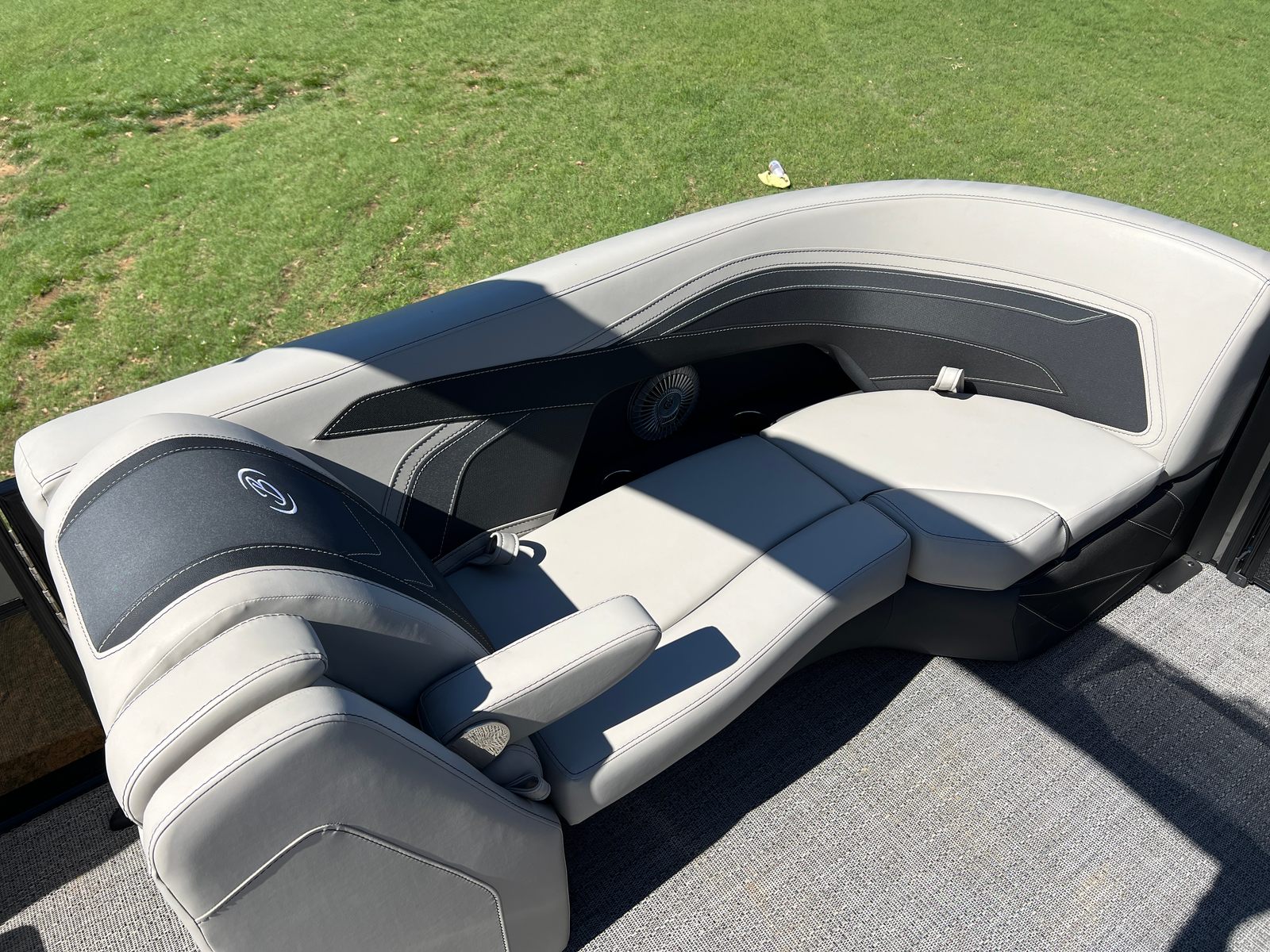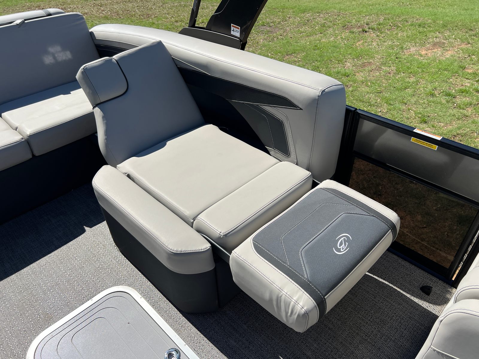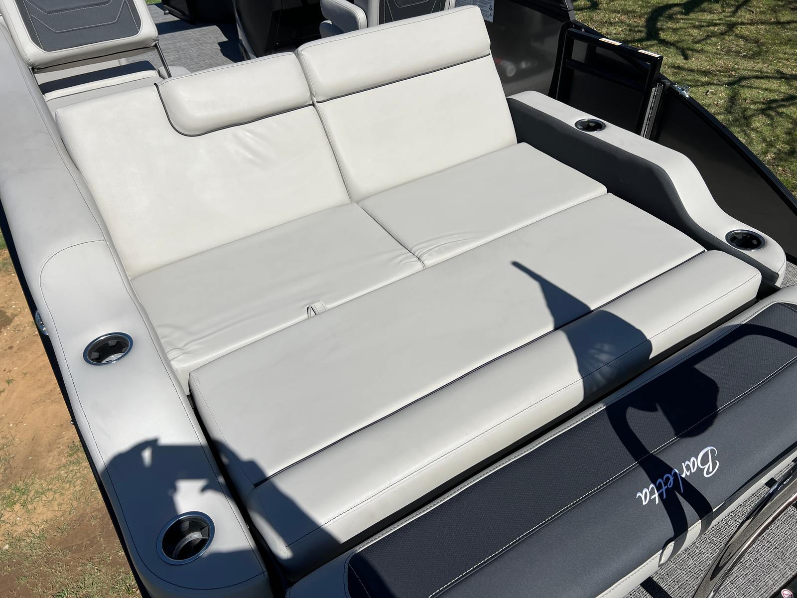 The Barletta Cabrio C22U is packed with special features that elevate its appeal and functionality. The Railskin Color in Black Diamond, complemented by the Gray Moonstone accent, gives the boat a sophisticated and contemporary look. The Blackout Package Cabrio adds a touch of exclusivity, ensuring your pontoon stands out wherever you go. Inside, the Marquesan Gray furniture with Onyx accents creates a comfortable and stylish environment, while the Amore Gray flooring is both attractive and easy to maintain.One of the standout features is the Triple Toon Package with midship storage, providing enhanced stability and extra space for gear, water toys, or personal belongings. The Sport Bimini canvas, installed in place of the standard bimini, offers superior sun protection and adds a sporty flair to the boat’s profile. Every detail, from the rigged engine with stainless steel prop to the thoughtfully designed interior, reflects Barletta’s dedication to quality and user satisfaction.