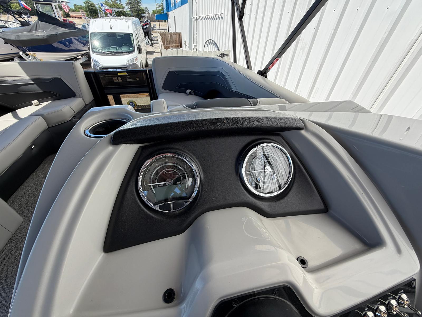 The Barletta Cabrio C22UC is loaded with special features that set it apart from other pontoon boats for sale. The Gray Moonstone Railskin color and Cabrio Blackout Package create a bold and stylish exterior, while the Marquesan Gray with Onyx furniture provides plush seating and a luxurious feel. The Amore Gray flooring is both elegant and practical, offering a comfortable surface that is easy to clean and maintain.The Cabrio Triple Toon Package with midship storage adds valuable space for your gear, making it easy to keep the deck organized and clutter-free. The Mercury (M) 200L FourStroke engine is paired with a pre-rig mechanical system and a stainless steel prop for reliable and efficient operation. Power assist steering ensures smooth and responsive control, enhancing your overall boating experience. The double bimini provides ample shade, allowing you and your guests to relax in comfort, even on the sunniest days.