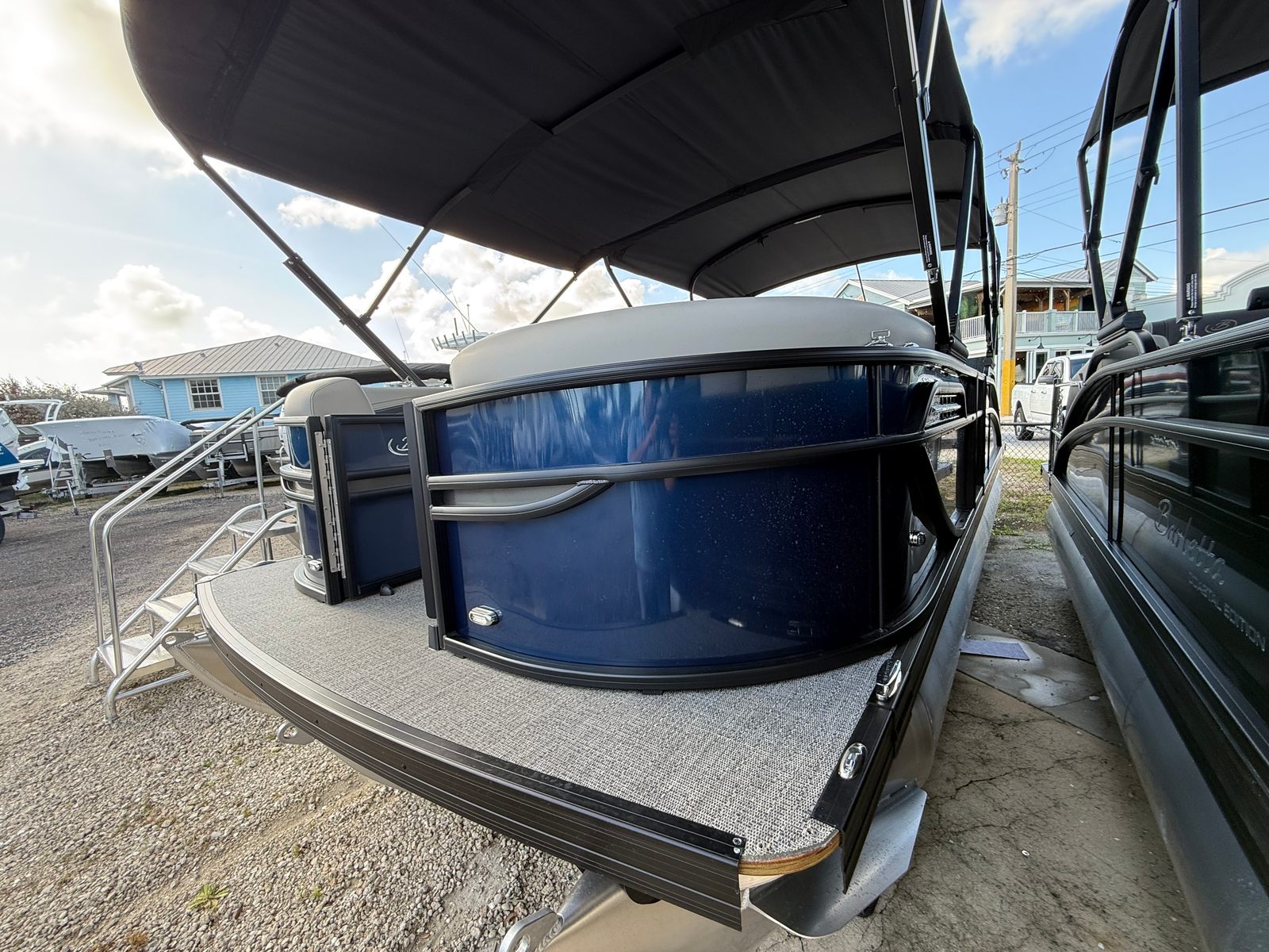 The 2026 Barletta Cabrio C22UC is loaded with features that set it apart from other pontoon boats for sale. The striking Railskin Color in Blue Sapphire, accented by Gray Moonstone, gives this pontoon a sophisticated and eye-catching appearance. The Blackout Package Cabrio adds a bold, modern touch, while the Marquesan Gray with Onyx furniture offers both comfort and elegance. The Amore Gray flooring is not only stylish but also practical, providing a durable and easy-to-clean surface for all your onboard activities.This model is part of the Coastal Edition Cabrio, designed to withstand the unique challenges of coastal environments, ensuring longevity and resilience. The Triple Toon Package with midship storage enhances both performance and convenience, offering extra space for gear and water toys. The Mercury Digital DTS Pre-Rig and power assist steering further elevate the driving experience, making this Barletta boat for sale a true standout in its class.