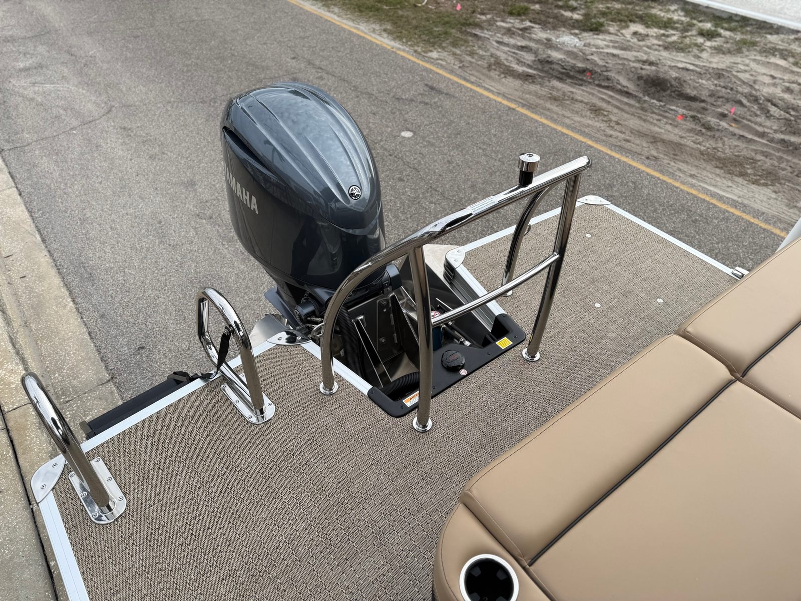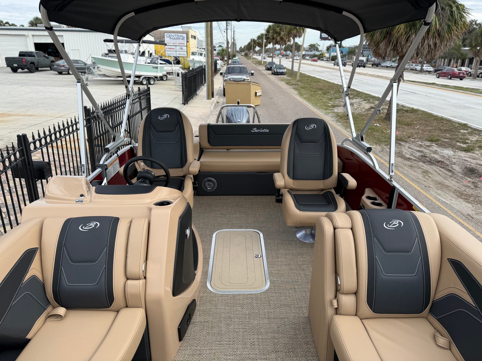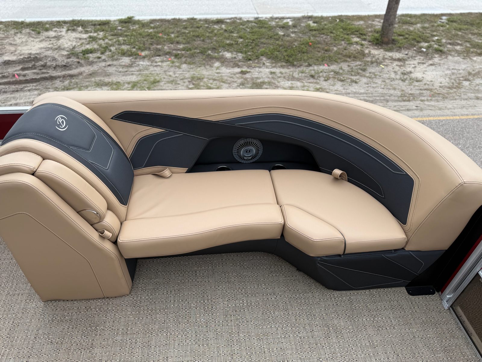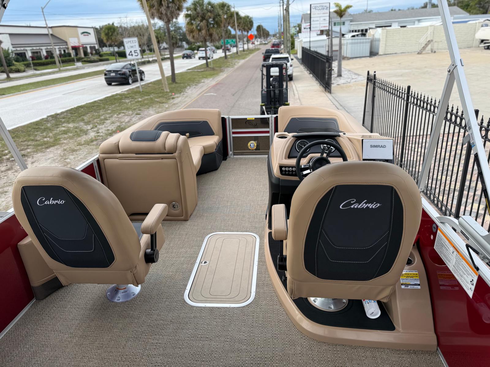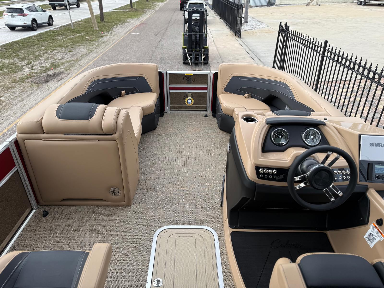 The 2026 Barletta Cabrio C22UC comes loaded with features designed to maximize comfort, convenience, and fun. The Champagne Railskin color with Red Garnet accent creates a sophisticated and sporty look, while the Carmella Tan with Onyx furniture offers plush seating for all your guests. The Amore Tan flooring is both stylish and practical, providing a comfortable surface that is easy to clean and maintain. The Coastal Edition Cabrio package adds versatility for a range of water environments, and the Triple Toon Package with Midship Storage increases stability and storage capacity, making it easy to bring along all your essentials for a day on the water.For navigation and entertainment, the Simrad 7" G07 XSR Chartplotter/Multifunction Display is ready to guide your adventures, offering advanced charting and multifunction capabilities. Please note, engine communication is not included and may require dealer installation if desired. The Yamaha mechanical pre-rig and stainless steel prop ensure that your engine setup is both efficient and reliable, giving you peace of mind as you cruise.