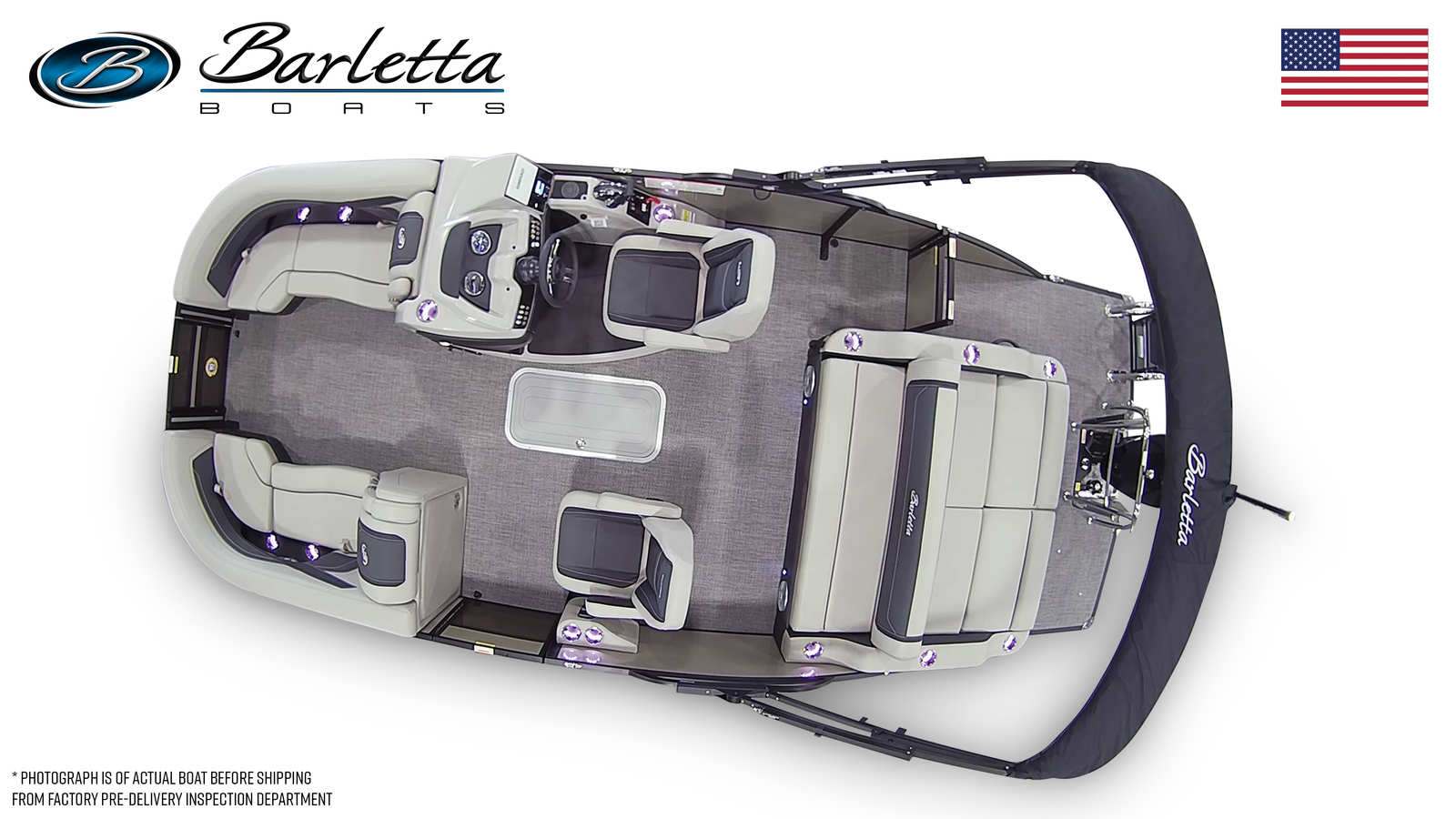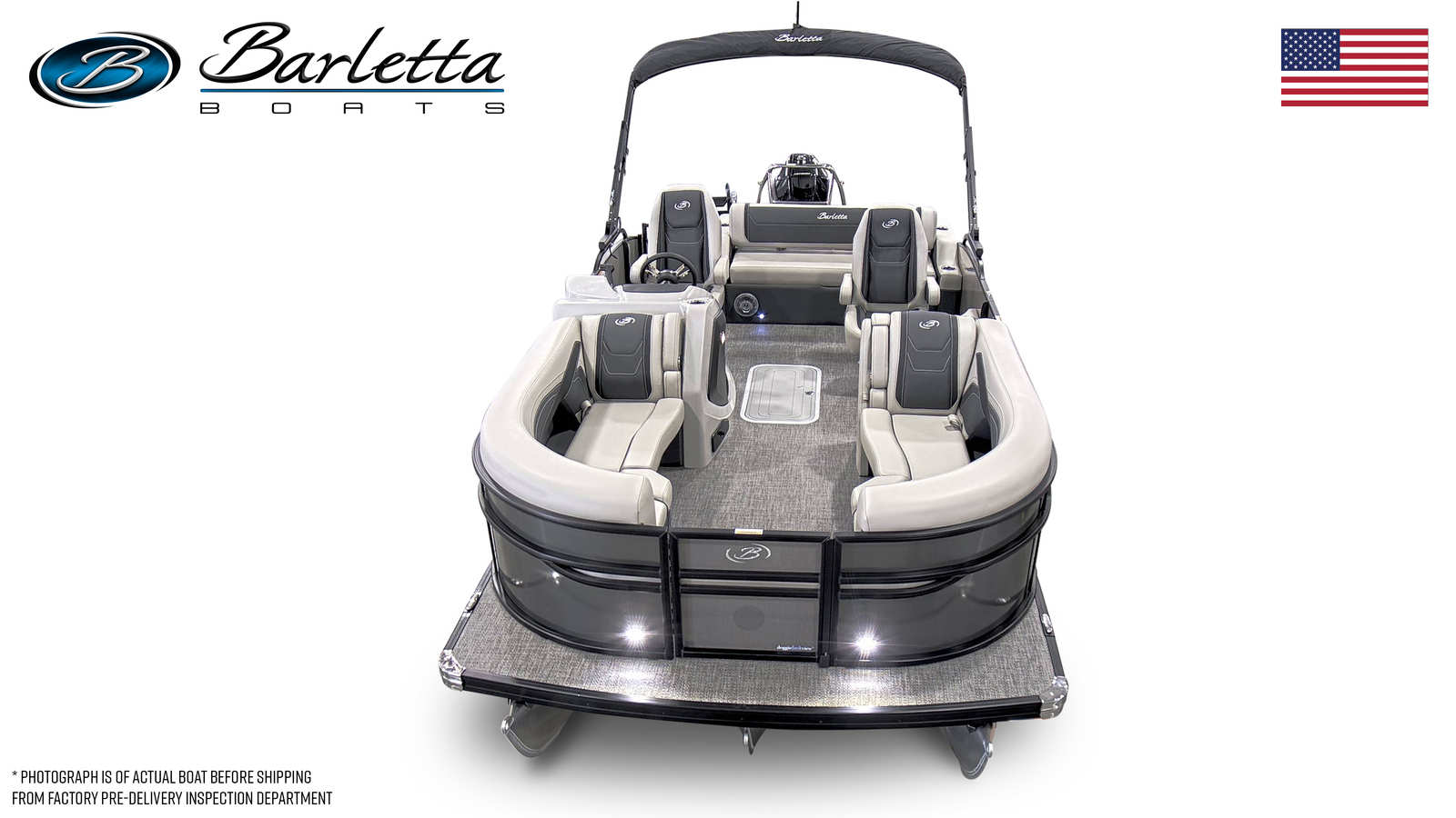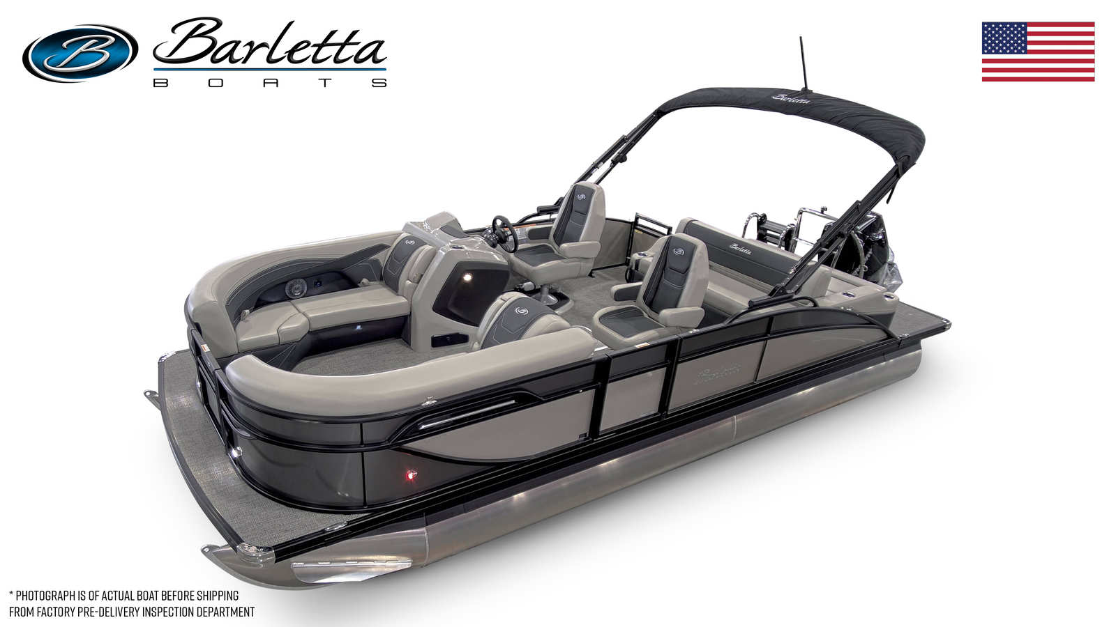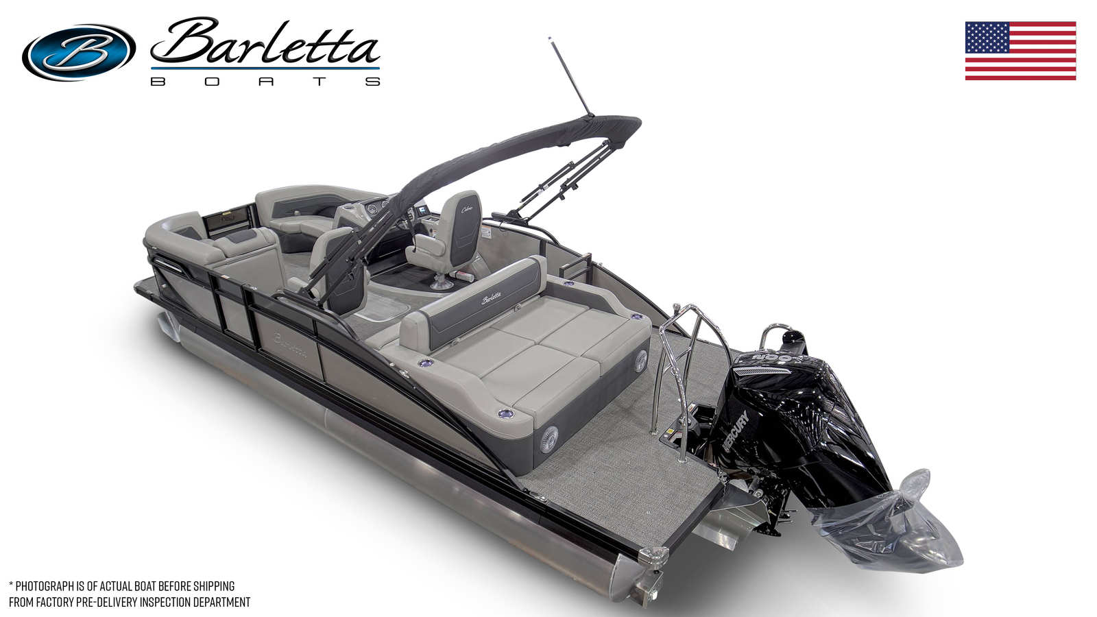 In summary, the 2026 Barletta Cabrio C22UC is a top-tier pontoon boat for sale that combines cutting-edge design, powerful performance, and luxurious comfort. With its striking Gray Moonstone and Champagne color scheme, Blackout Package Cabrio, plush Marquesan Gray/Onyx furniture, Amore Gray flooring, and innovative Triple Toon Package with Midship Storage, this boat stands out as a leader in its class. The Mercury 200L FourStroke engine ensures reliable and efficient performance, while thoughtful features like the stainless steel flag pole with American flag add a touch of personality and pride.If you are searching for a Barletta boat for sale that offers the perfect blend of style, functionality, and fun, the Cabrio C22UC is an exceptional choice. Don’t miss your chance to own this remarkable pontoon boat and create lasting memories on the water. Contact the dealer today to learn more and schedule your personal tour of the 2026 Barletta Cabrio C22UC.