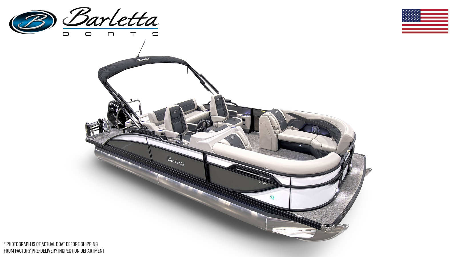 The 2026 Barletta Cabrio C22UC is a new pontoon boat that measures just over 23 feet in length, providing ample space for relaxation and entertainment. As a Barletta boat for sale, this model is renowned for its meticulous craftsmanship, innovative design, and attention to detail. The Cabrio C22UC’s sleek profile is accentuated by its Winter White railskin color, complemented by a Gray Moonstone accent and the striking Blackout Package Cabrio, creating a modern and sophisticated look that stands out on any lake or river.