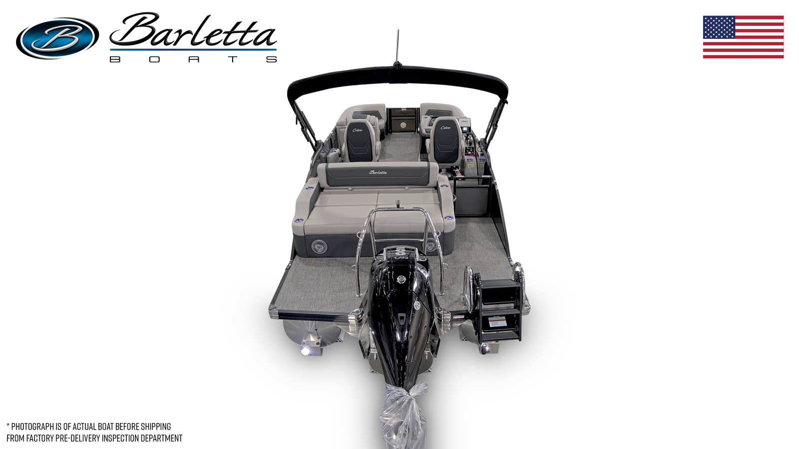 The Barletta Cabrio C22UC is packed with features designed to maximize comfort, convenience, and enjoyment. The triple toon package with midship storage provides enhanced stability and additional space for gear, making it easy to keep the deck organized and clutter-free. The railskin packages, including the Blackout Package Cabrio, add a touch of modern elegance to the exterior, while the stainless steel flag pole with an American flag offers a patriotic finishing touch.Inside, the Marquesan Gray with Onyx furniture offers plush seating and ample room for guests to relax, while the Amore Gray flooring is both stylish and easy to maintain. The thoughtful layout ensures that every inch of space is utilized efficiently, providing plenty of room for lounging, dining, or socializing. The rigging includes a stainless steel prop for optimal performance and longevity, ensuring that your investment in this Barletta boat for sale will provide years of enjoyment.
