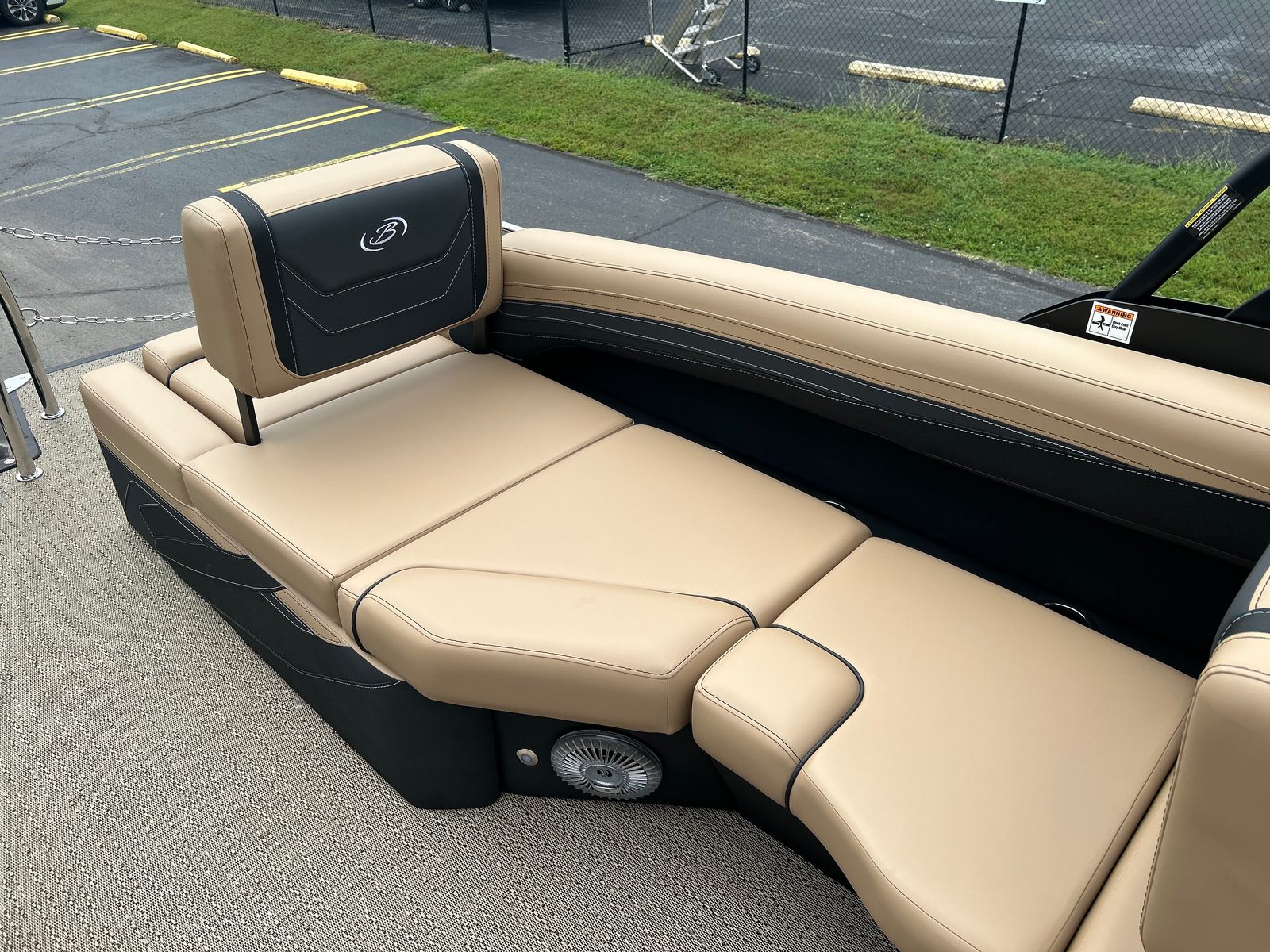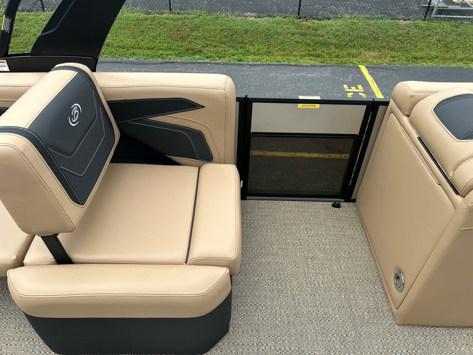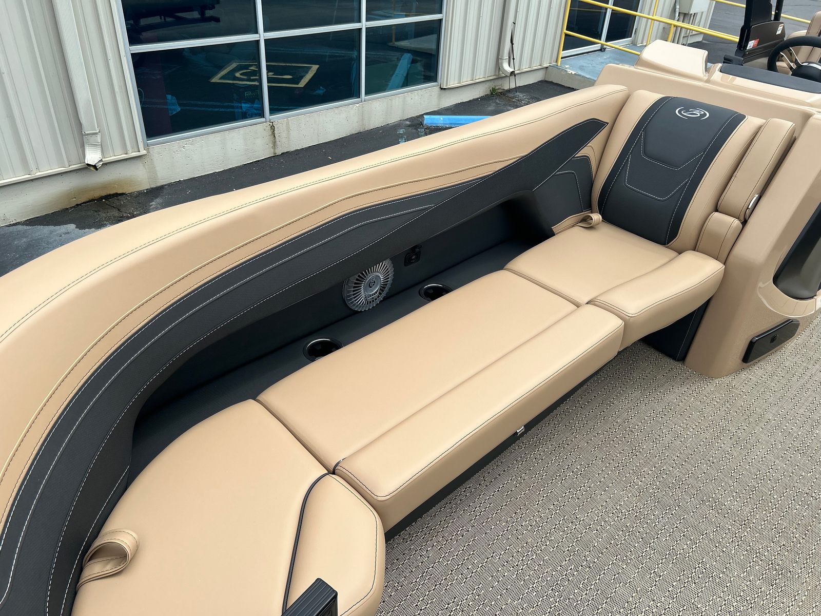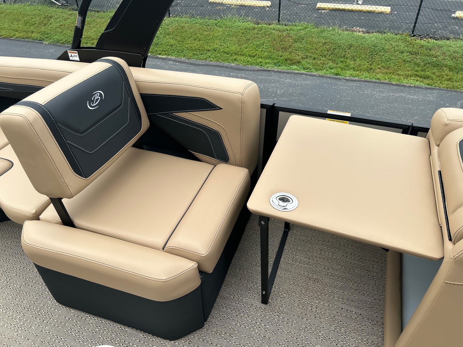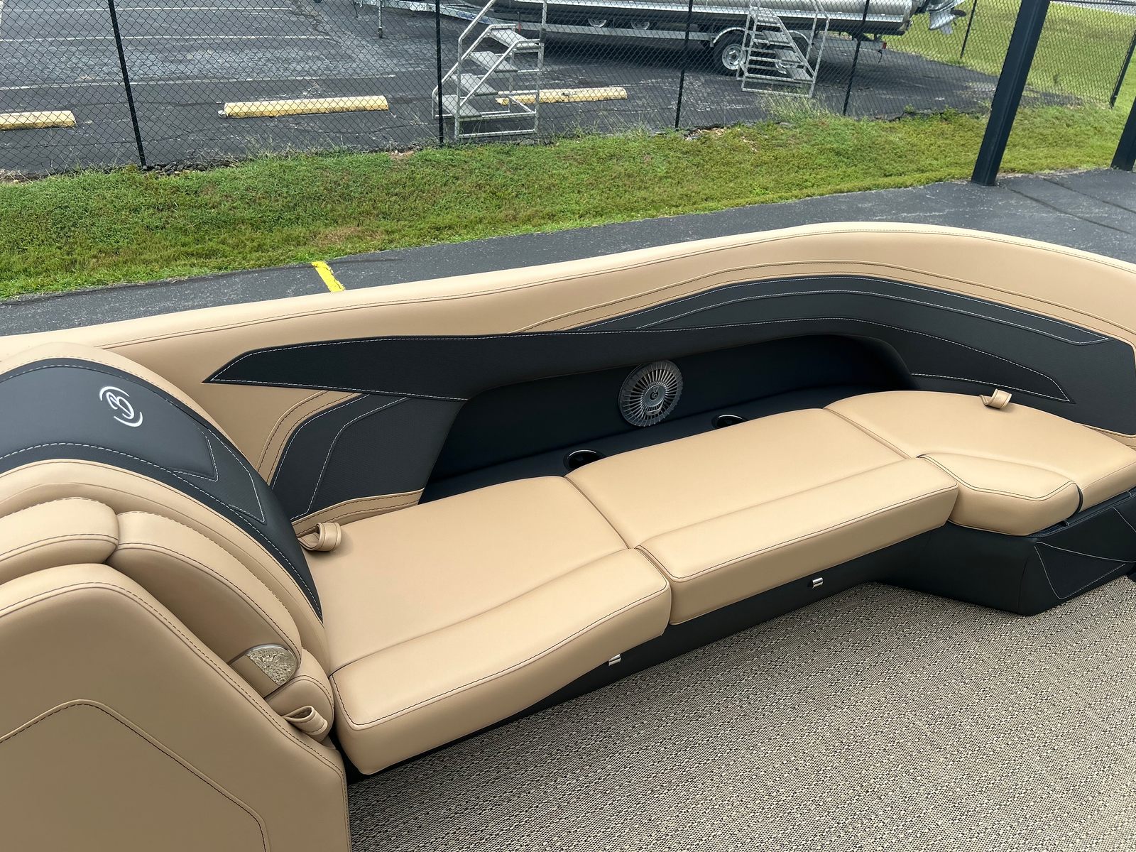 The 2026 Barletta Cabrio C24M stands out as a premier pontoon boat, offering a generous length of 25.17 feet. Its spacious deck layout provides ample room for relaxation, socializing, and enjoying the outdoors. With its sleek lines and modern design, this Barletta boat for sale is sure to turn heads wherever you go. The Champagne Railskin Color Accent adds a touch of elegance, while the Blackout Package Cabrio gives the exterior a bold, sophisticated look. As a brand-new pontoon, it promises years of reliable enjoyment and memorable moments on the water.