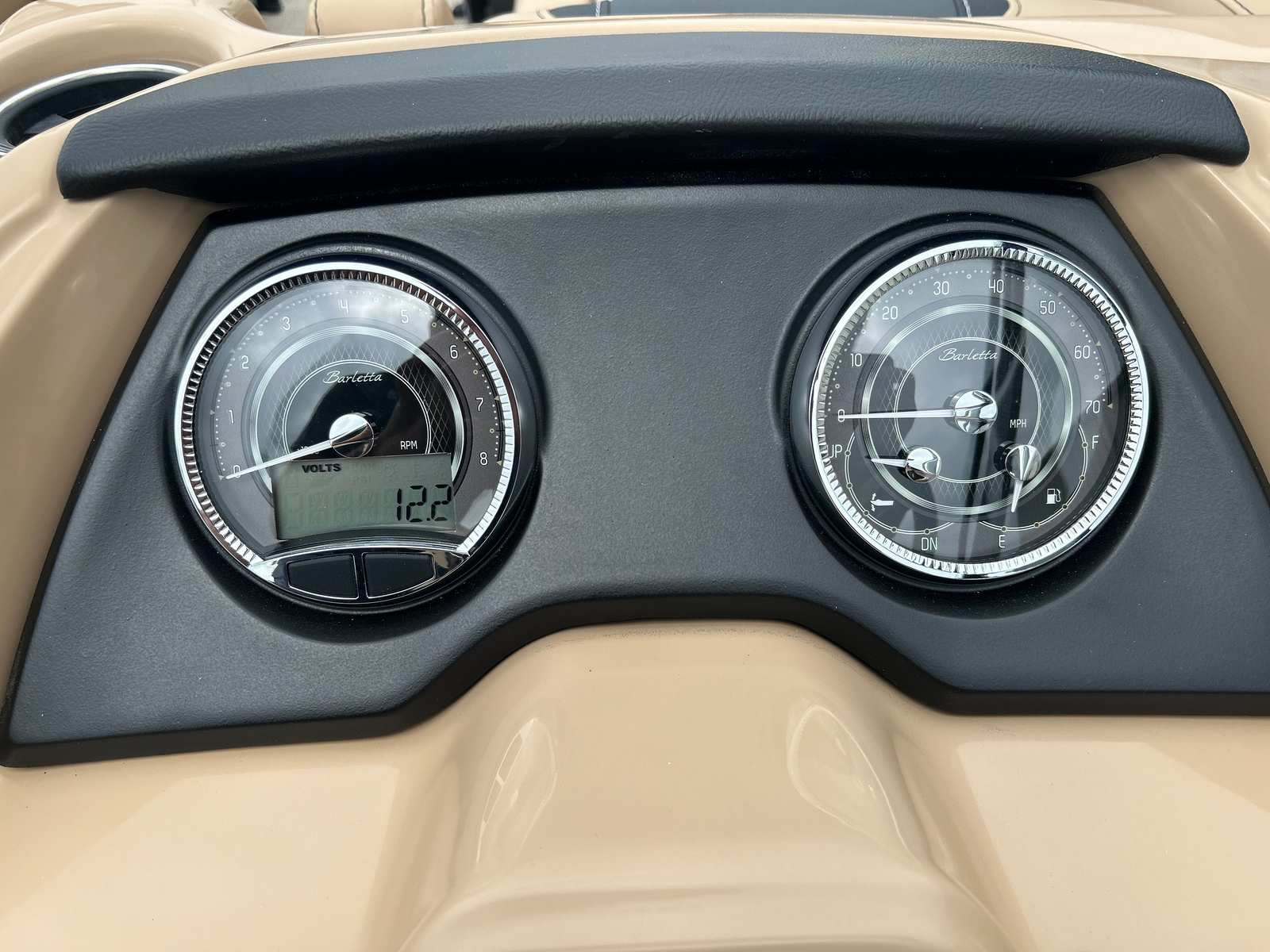 The Barletta Cabrio C24M is packed with premium features designed to enhance your boating experience. The Simrad 7" G07 XSR Chartplotter/Multifunction Display puts navigation and system controls at your fingertips, making it easy to plot your course, monitor performance, and stay informed while on the water. The Interior RGB Lighting Package Cabrio allows you to set the perfect mood for any occasion, with customizable colors that illuminate the cabin and create a vibrant atmosphere.The Triple Toon Package with Midship Storage – Cabrio adds stability, buoyancy, and extra storage space, making it easier to stow gear and keep the deck organized. The Sport Bimini (installed in place of the standard bimini) offers superior shade and protection from the sun, ensuring comfort during long days outdoors. Exterior lighting, including white underdeck and underwater lights, enhances visibility and safety while adding a stylish touch to evening cruises.