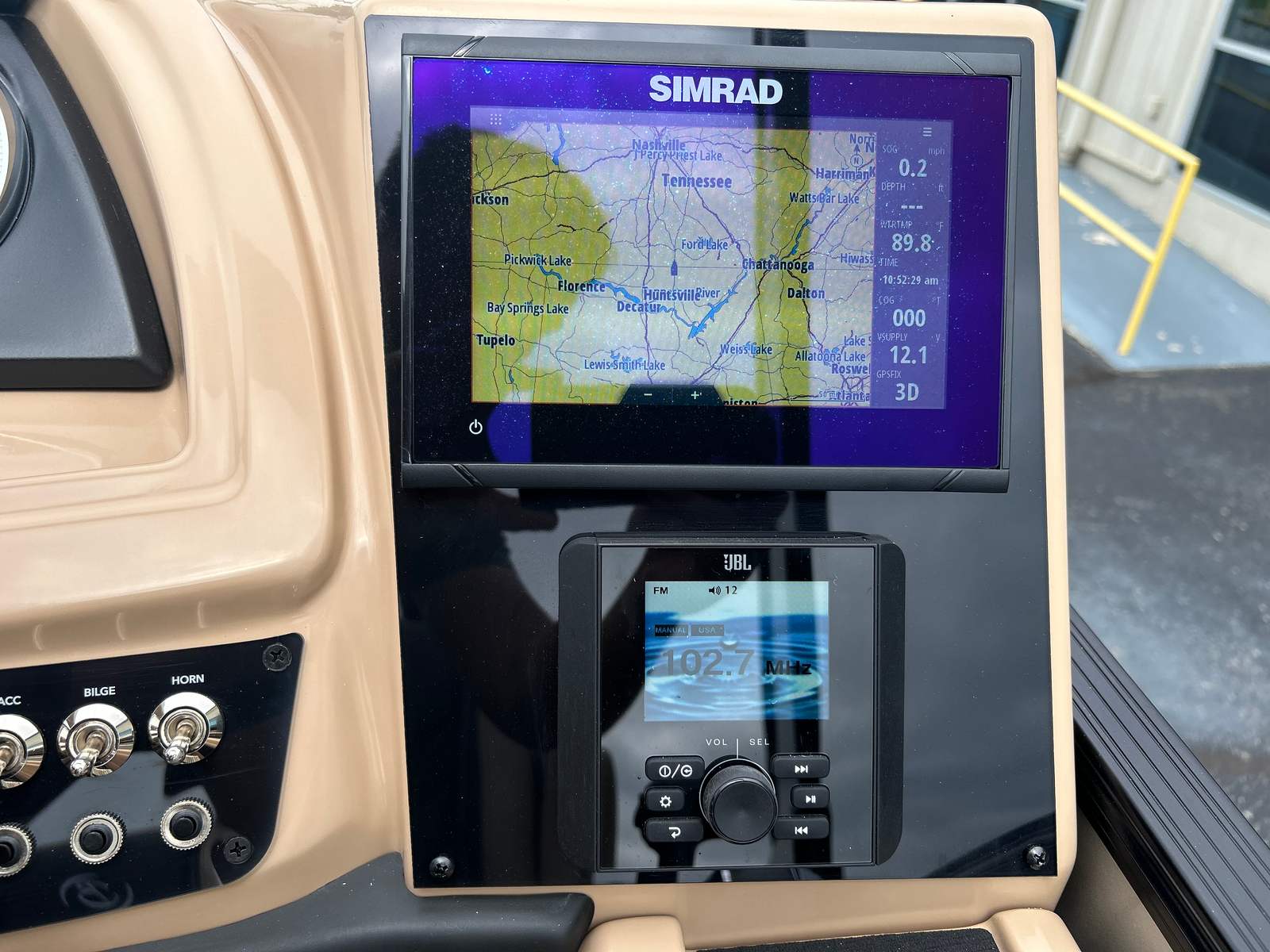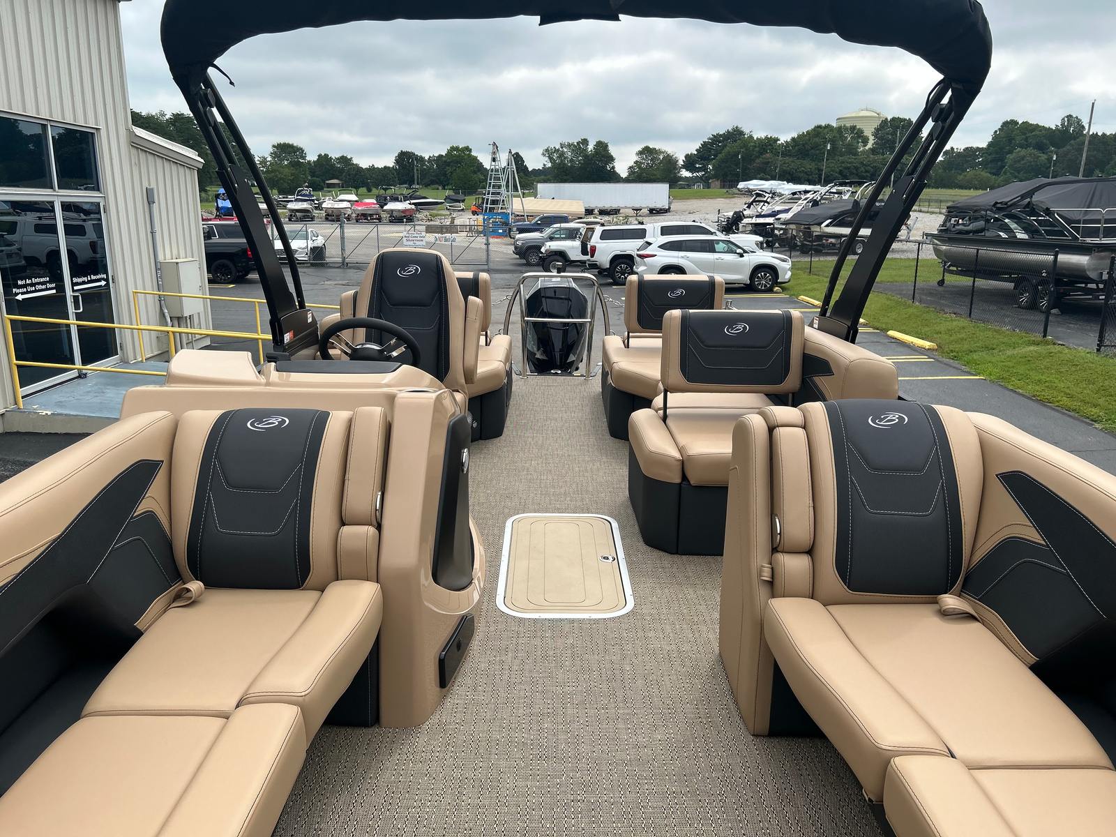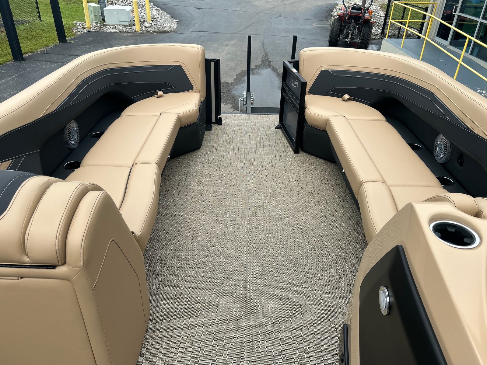 Owning the Barletta Cabrio C24M pontoon boat means embracing a lifestyle of fun, relaxation, and connection. The spacious deck is perfect for hosting gatherings, enjoying meals, or simply lounging in the sun. The plush seating and open layout encourage conversation and camaraderie, making every outing a social event. The advanced lighting packages, both interior and exterior, create a welcoming ambiance for day or night adventures.With its powerful engine and triple toon design, this pontoon delivers a smooth, stable ride that’s comfortable for all ages. The midship storage keeps your essentials organized and accessible, so you can focus on enjoying the moment. The intuitive Simrad display ensures you’re always in control, whether you’re exploring new waters or returning to your favorite spot.