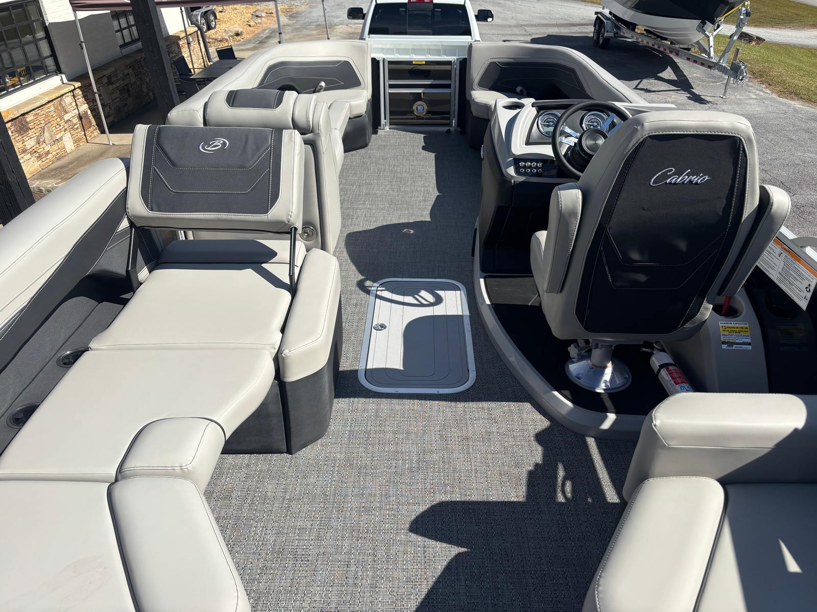 The Barletta Cabrio C24M is as practical as it is luxurious. The midship storage compartment, part of the Triple Toon Package, provides ample space for stowing life jackets, fishing gear, or picnic supplies, keeping your deck tidy and your essentials within easy reach. The durable Amore Gray flooring is designed to withstand the rigors of active days on the water, while remaining comfortable for barefoot relaxation.Docking and maneuvering are simplified by the responsive power assist steering and the efficient stainless steel prop, making it easy for boaters of all experience levels to handle the vessel confidently. The pontoon’s design also promotes fuel efficiency, allowing you to spend more time enjoying the water and less time refueling. The sturdy construction and high-quality materials ensure low maintenance and long-lasting performance, so you can focus on making memories instead of worrying about upkeep.