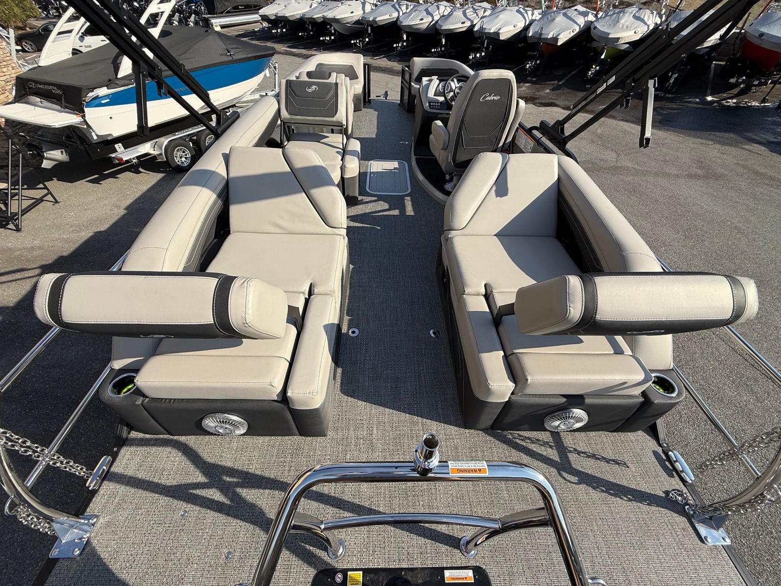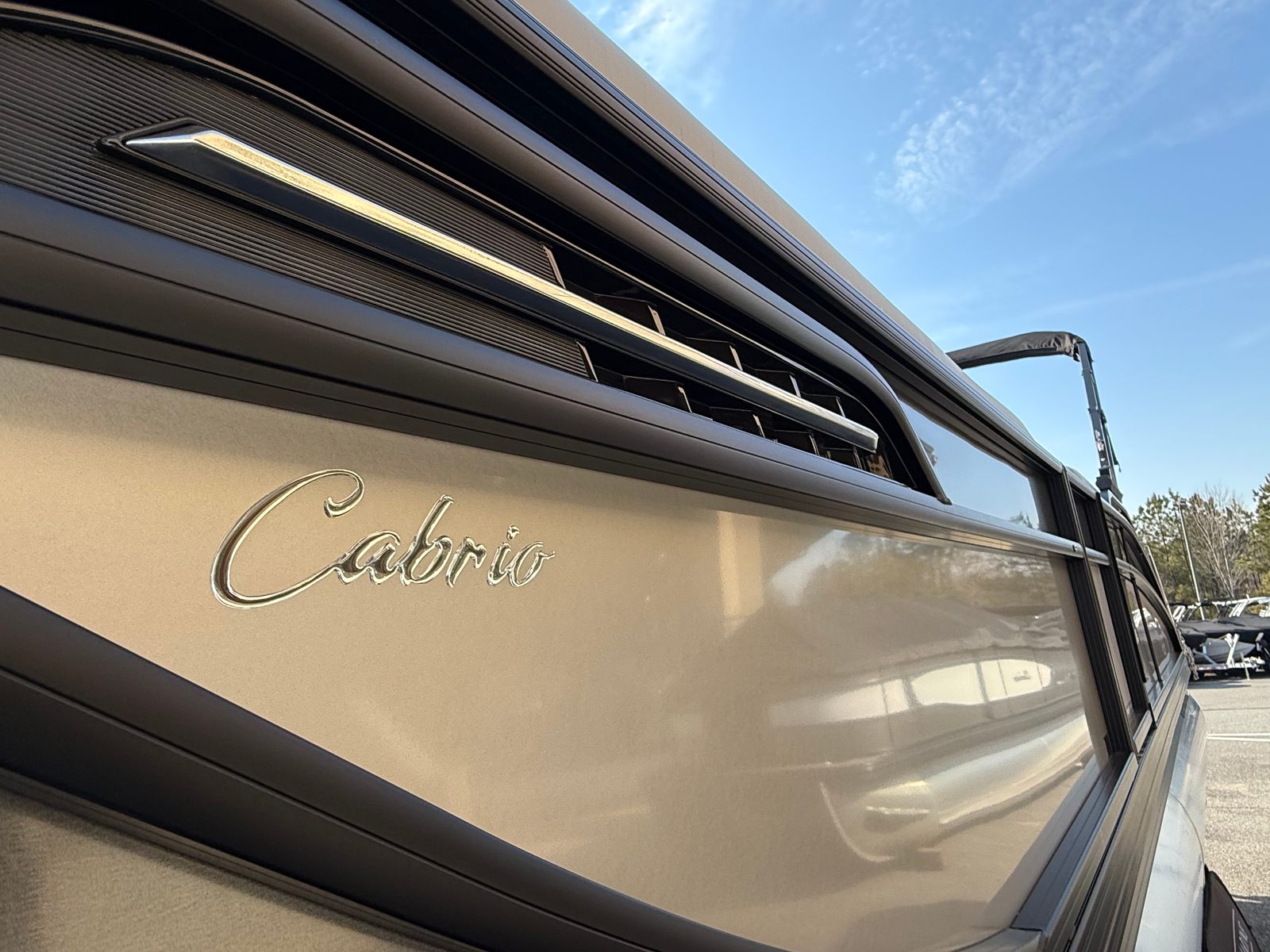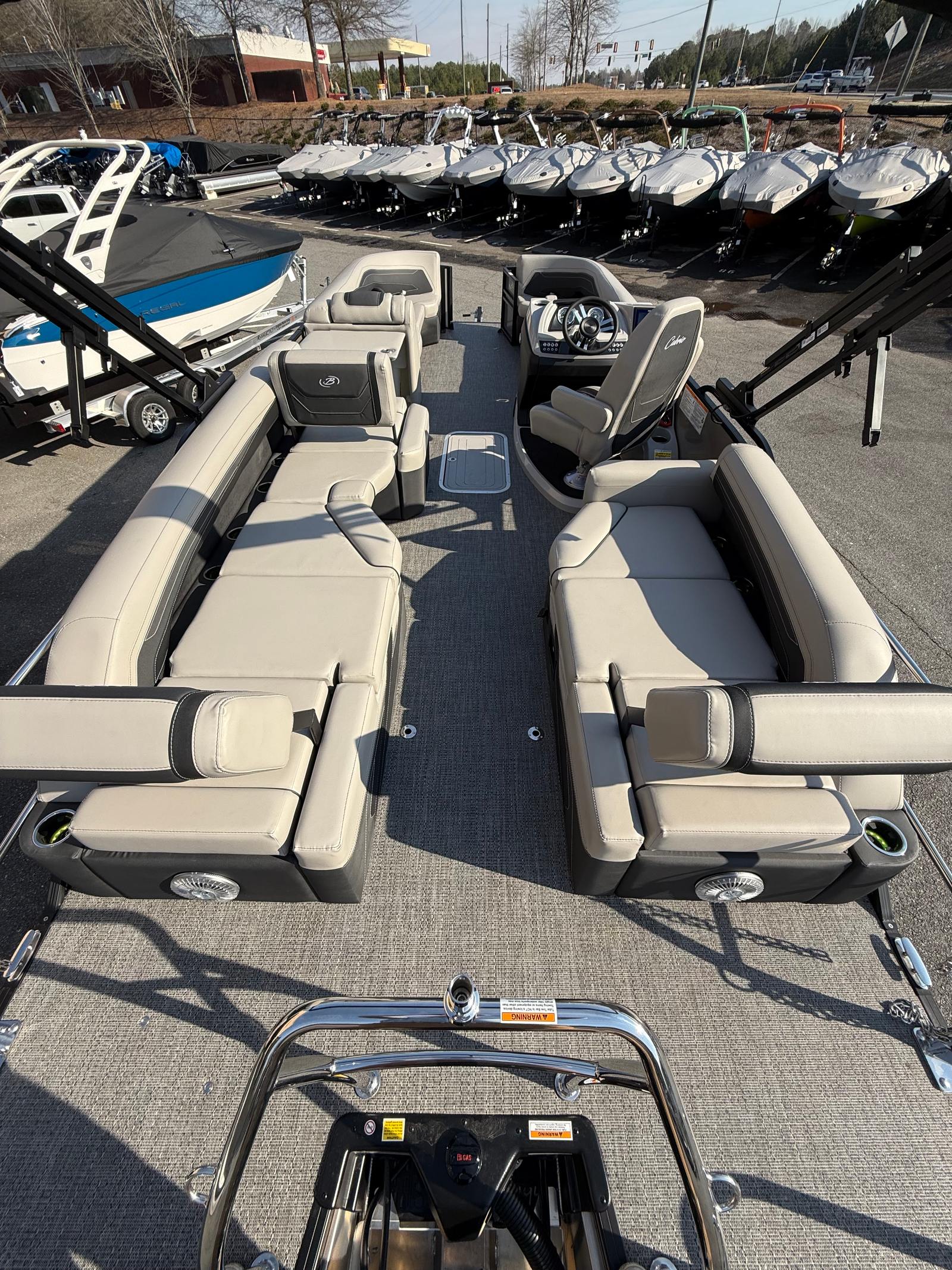 The 2026 Barletta Cabrio C24M is a stunning pontoon boat measuring just over 25 feet in length, offering ample space for relaxation, entertainment, and adventure. As a new model, it showcases the latest advancements in pontoon design and technology, ensuring a modern and enjoyable boating experience. The sleek Railskin Color in Gray Moonstone, complemented by a Champagne accent and the Blackout Package Cabrio, gives this vessel a sophisticated and eye-catching appearance. Whether you’re cruising with family or hosting a gathering with friends, the Cabrio C24M delivers both style and substance.