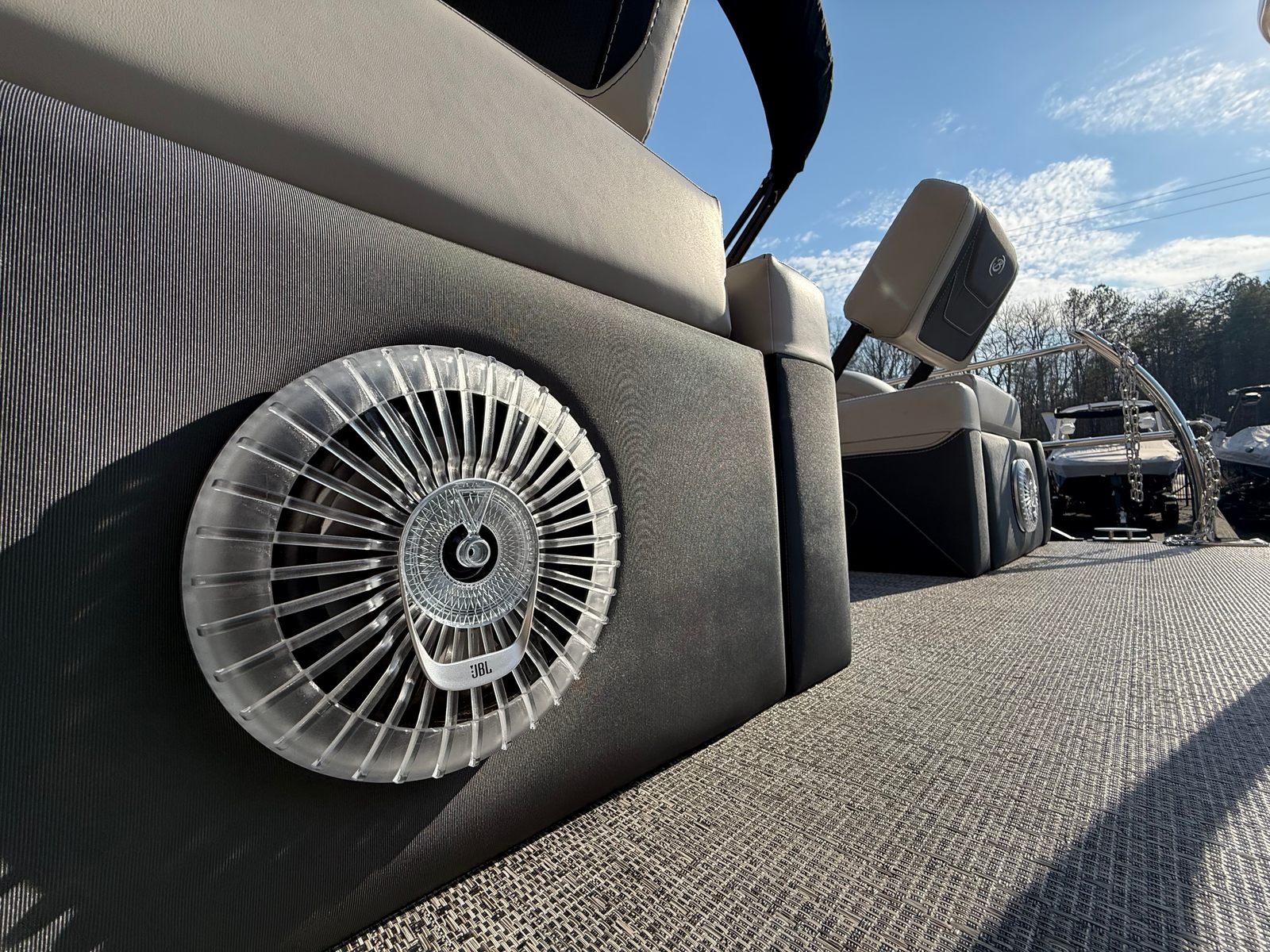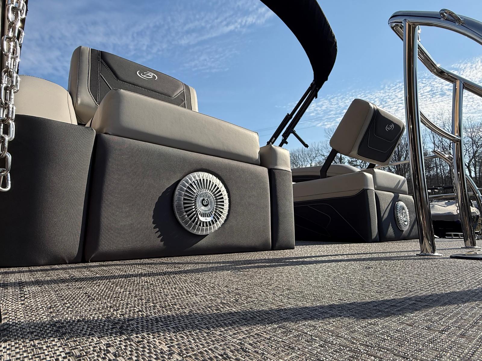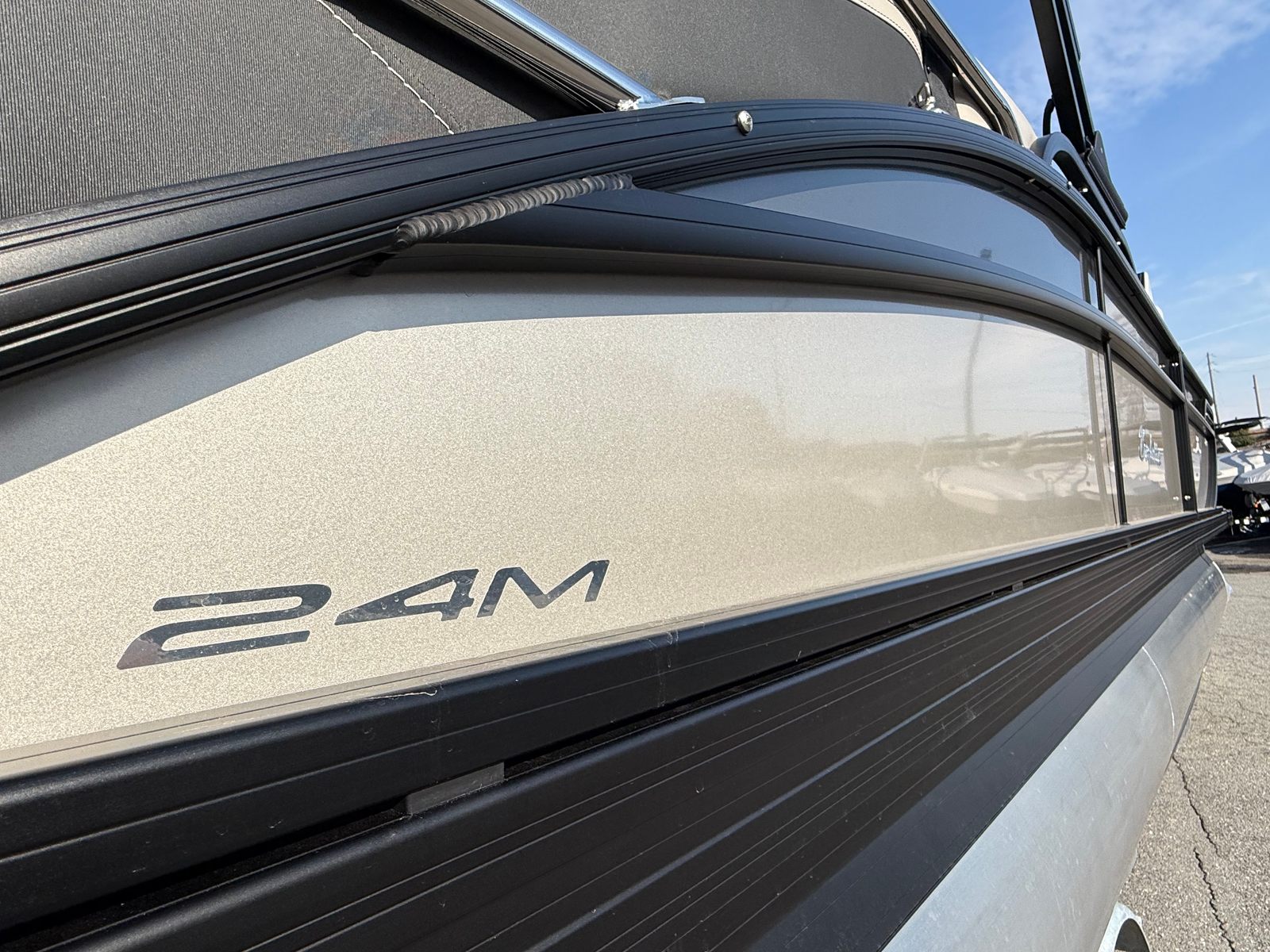 The 2026 Barletta Cabrio C24M is a stunning pontoon boat measuring just over 25 feet in length, offering ample space for relaxation, entertainment, and adventure. As a new model, it showcases the latest advancements in pontoon design and technology, ensuring a modern and enjoyable boating experience. The sleek Railskin Color in Gray Moonstone, complemented by a Champagne accent and the Blackout Package Cabrio, gives this vessel a sophisticated and eye-catching appearance. Whether you’re cruising with family or hosting a gathering with friends, the Cabrio C24M delivers both style and substance.