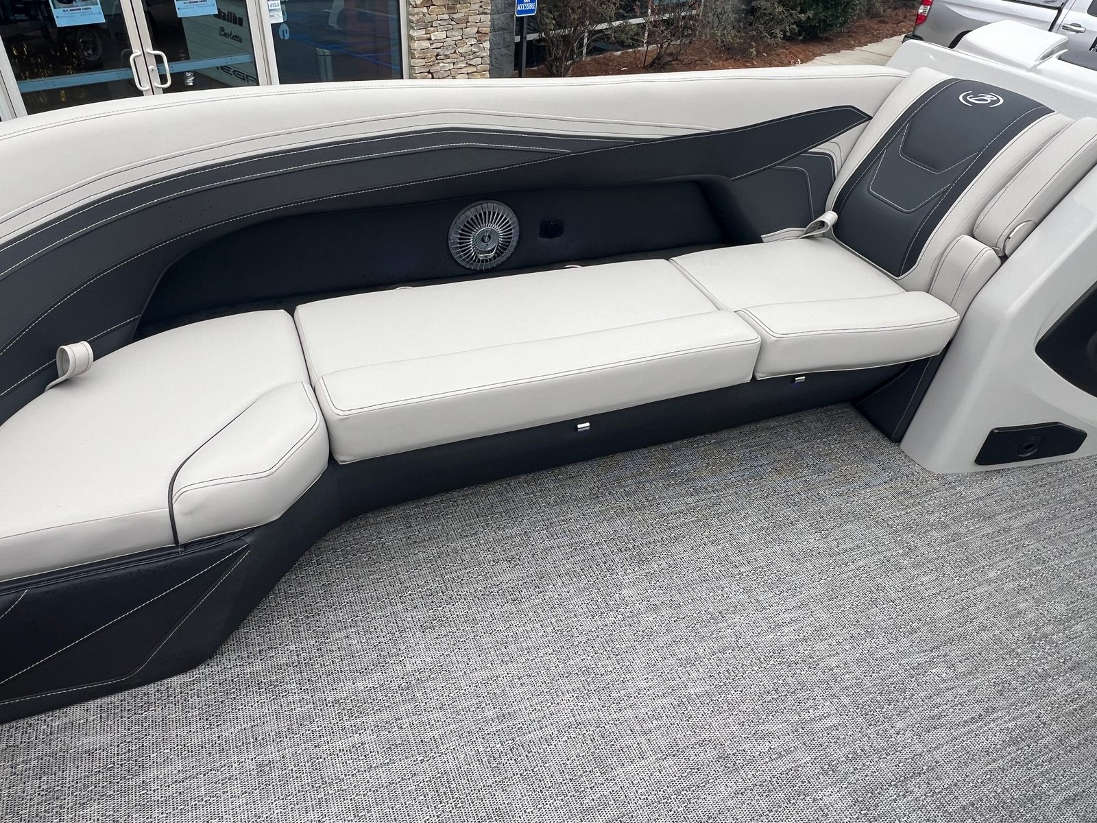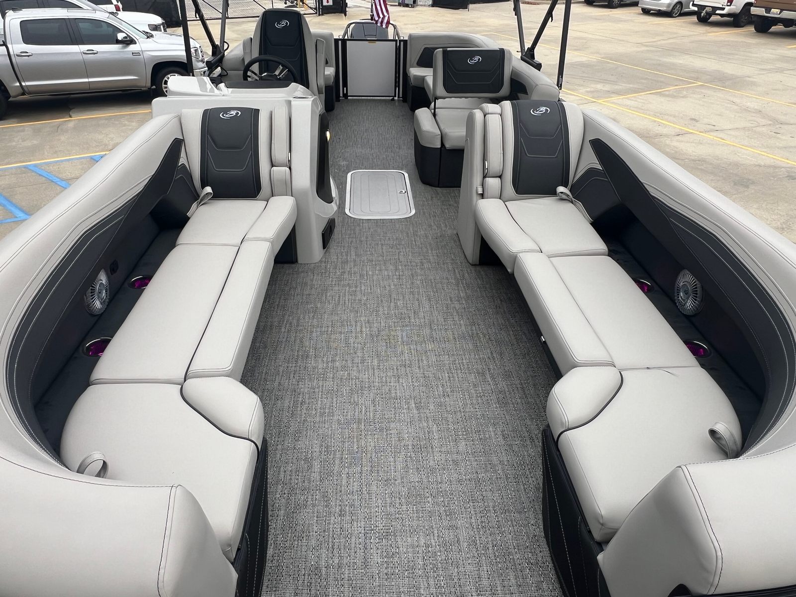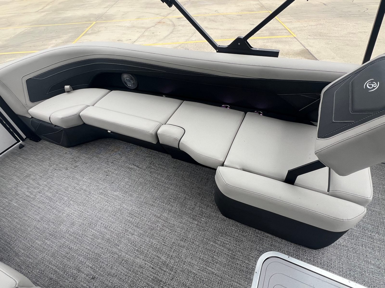 The Barletta Cabrio C24Q shines in a variety of scenarios, making it a versatile choice for any boating enthusiast. Imagine hosting family gatherings, where kids and adults alike can relax, play, and create lasting memories. For fishing enthusiasts, the spacious deck and ample storage provide the perfect setup for a day on the water. If you prefer luxury getaways, the comfortable seating and stylish design create a resort-like atmosphere, perfect for unwinding with friends or enjoying a romantic evening cruise.This pontoon boat is equally at home on calm lakes, winding rivers, or coastal bays, adapting effortlessly to your favorite destinations. Whether you are seeking adventure, relaxation, or a bit of both, the Cabrio C24Q delivers an unmatched boating experience.