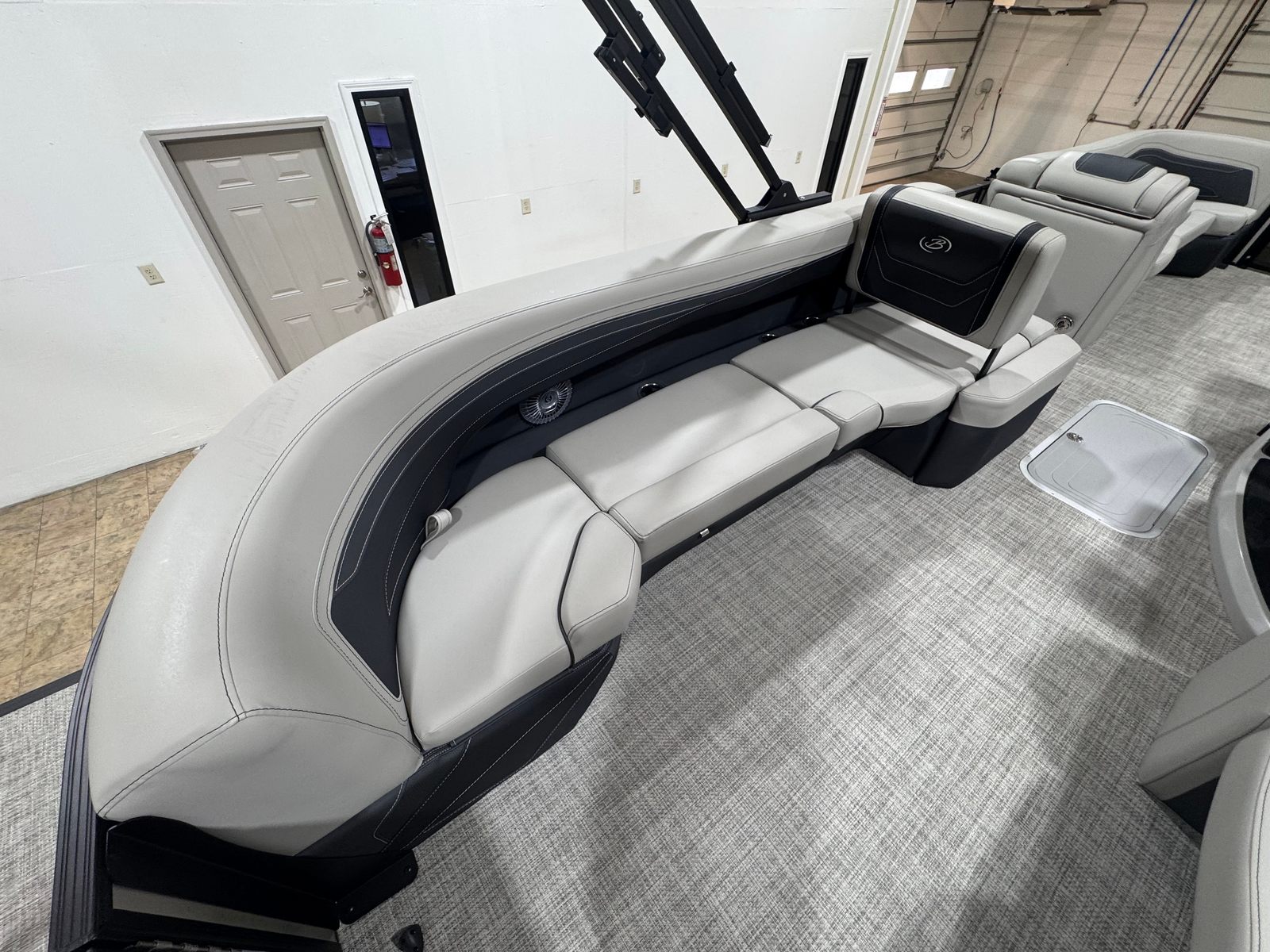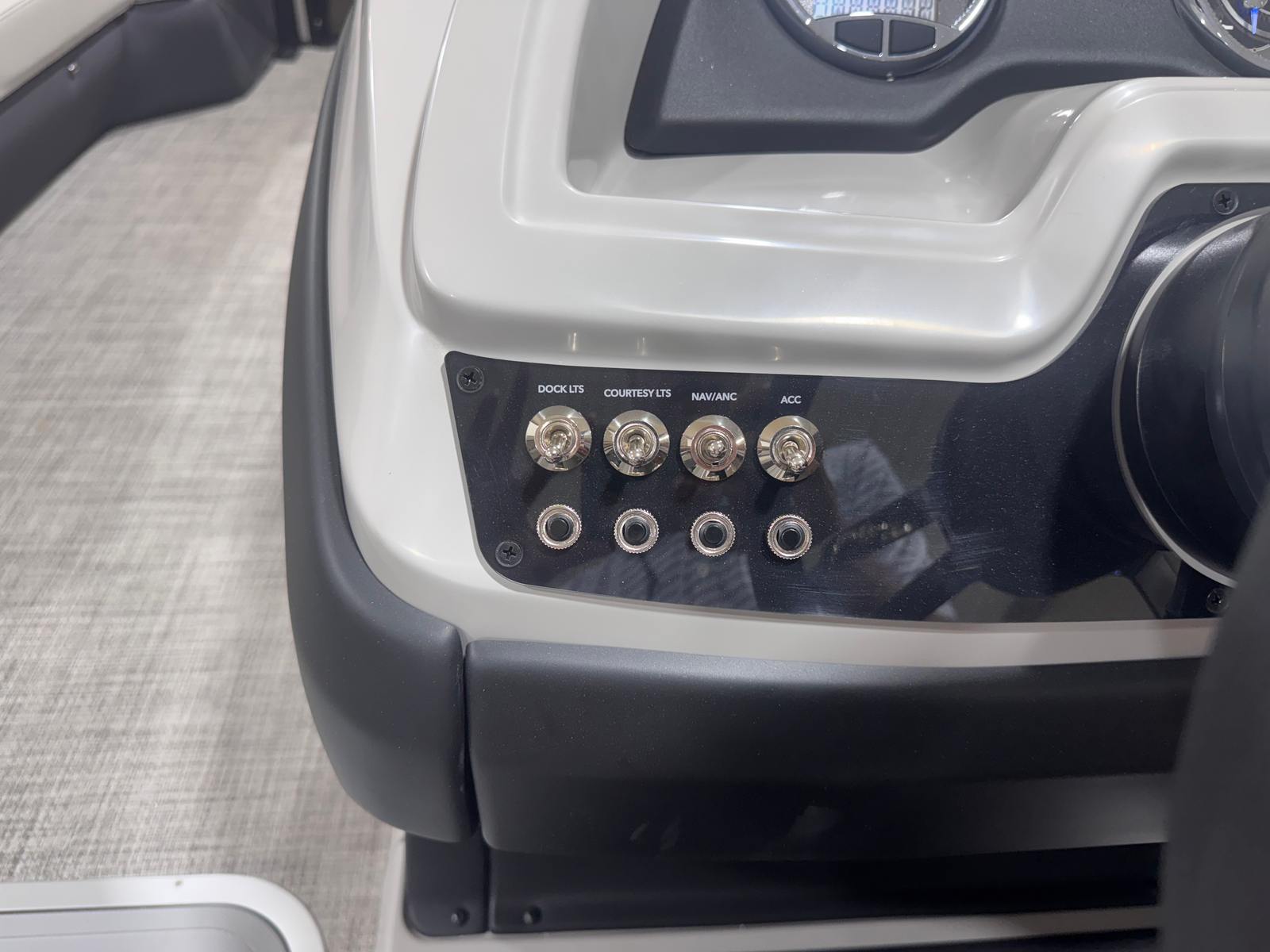 The Barletta Cabrio C24Q is loaded with special features that elevate your boating experience. The striking Gray Moonstone railskin color, accented by Champagne highlights and the Blackout Package Cabrio, gives this pontoon a modern and sophisticated look that is sure to turn heads at the marina. Inside, the Marquesan Gray furniture with Onyx accents creates a luxurious and inviting atmosphere, perfectly complemented by the Amore Gray flooring that is both stylish and easy to maintain.One of the standout features is the Triple Toon Package with midship storage, exclusive to the Cabrio series. This configuration enhances stability and handling, while the additional storage space ensures you have room for all your gear, water toys, and essentials. The clipped playpen cover with poles offers convenient protection from the elements, keeping your pontoon boat in pristine condition when not in use.