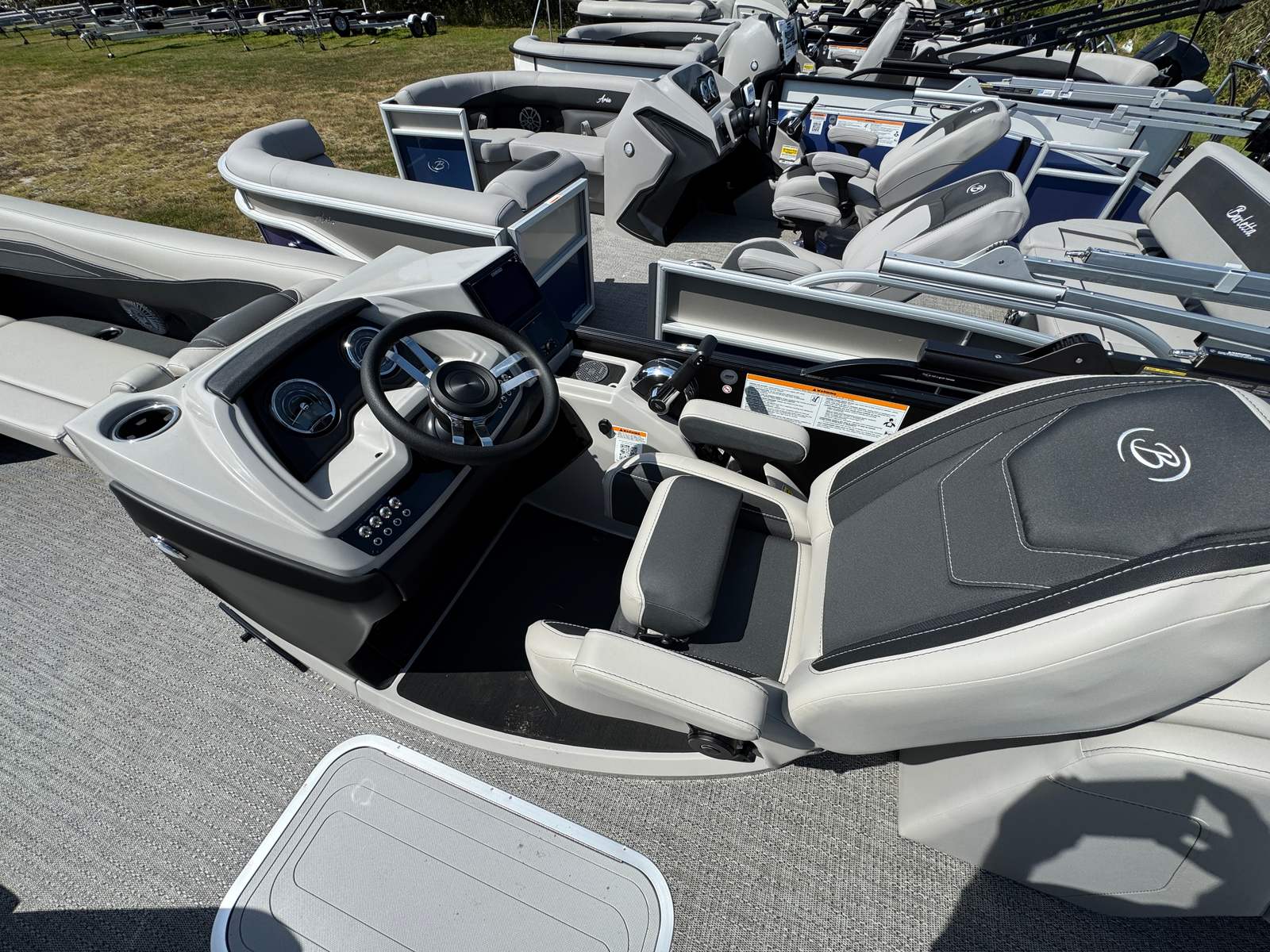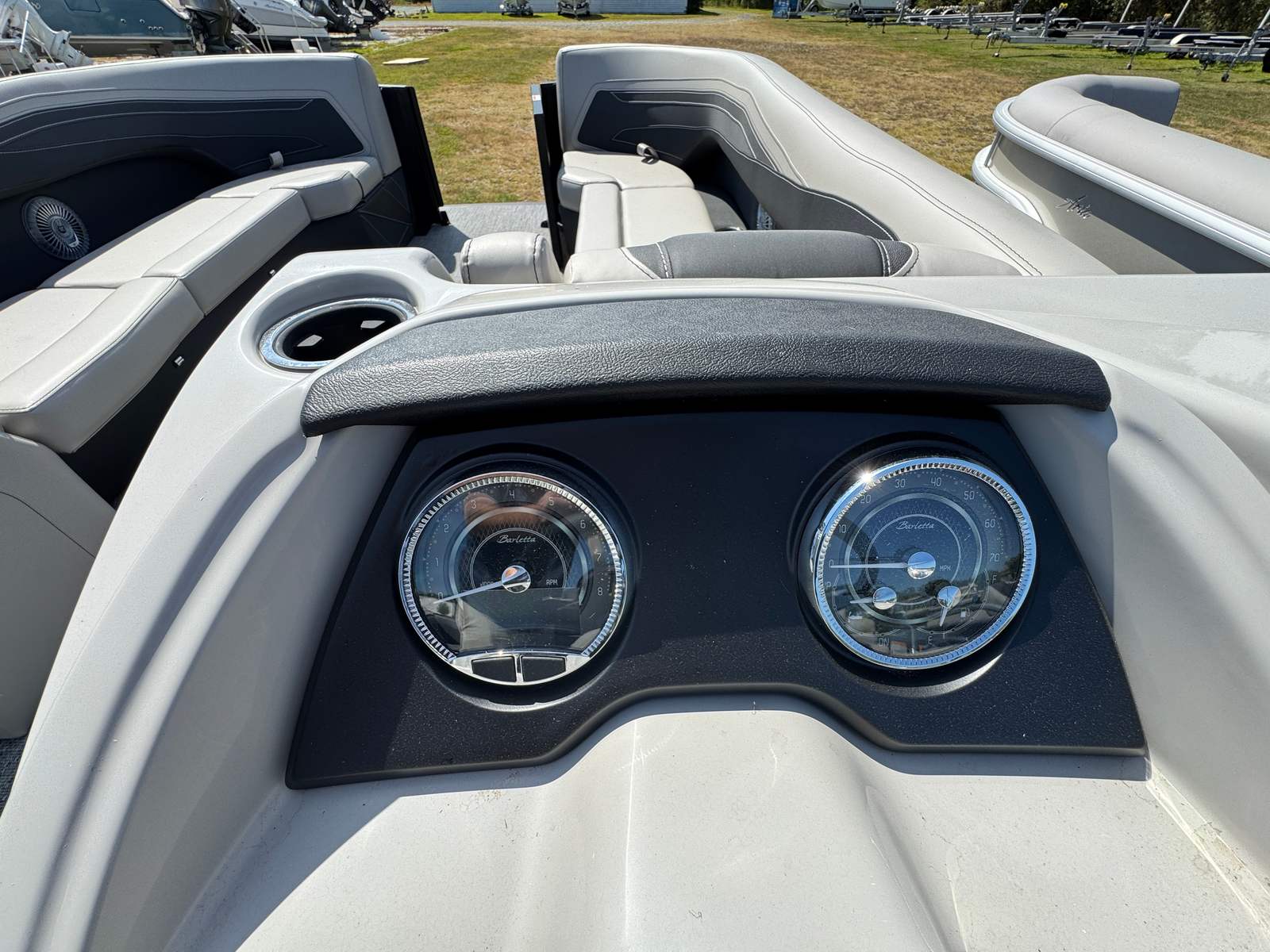 Step aboard the Barletta Cabrio C24QC and you’ll immediately notice its luxurious Marquesan Gray furniture with Onyx accents, providing both comfort and elegance. The Amore Gray flooring adds a touch of modern sophistication while ensuring durability and easy maintenance. This pontoon is part of the Coastal Edition Cabrio, designed to withstand the rigors of marine environments while maintaining its stylish appearance.One of the standout features is the Triple Toon Package with midship storage, offering enhanced stability, improved performance, and convenient storage options for all your gear. The blackout package not only elevates the boat’s aesthetic appeal but also provides a sleek, contemporary look that is sure to turn heads at the marina. Every detail, from the railskin color to the premium furniture, has been thoughtfully selected to create an inviting and upscale atmosphere.