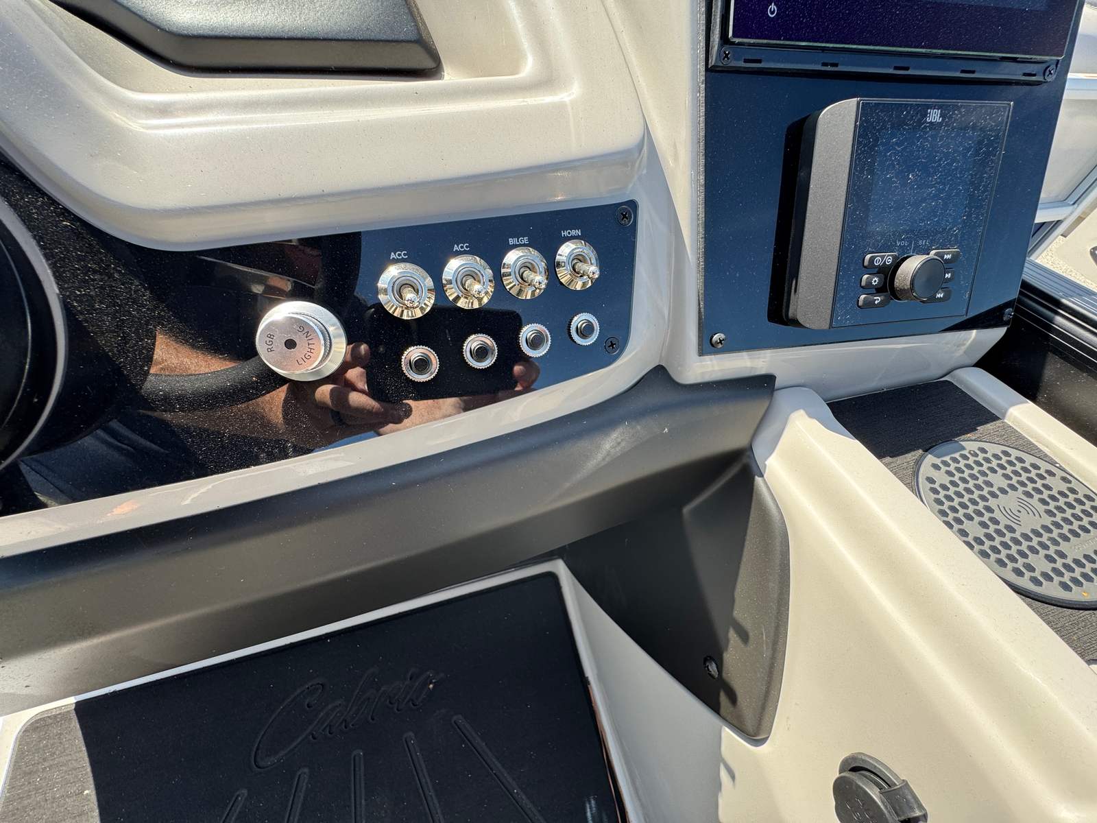 Powering this exceptional pontoon is a single Mercury (M) 200L FourStroke engine, delivering a robust 200 horsepower. This setup ensures smooth acceleration, reliable handling, and plenty of power for cruising, watersports, or simply enjoying a leisurely ride. The Mercury engine is paired with a stainless steel prop and features mechanical pre-rigging with power assist, making operation effortless and precise. Whether you’re navigating calm lakes or tackling more challenging waters, the Cabrio C24QC offers a responsive and enjoyable driving experience.