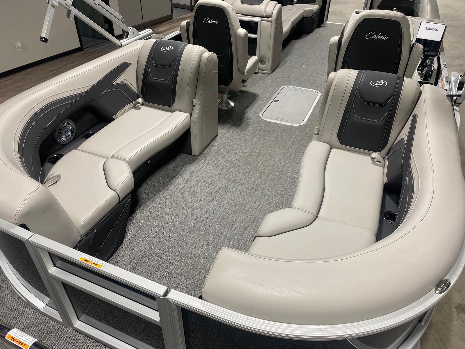 The 2026 Barletta Cabrio C24QC pontoon boat is a remarkable blend of performance, comfort, and style. With its Mercury 200L FourStroke engine, Triple Toon Package with Midship Storage, luxurious Marquesan Gray furniture, Amore Gray flooring, and advanced Simrad chartplotter, this Barletta boat for sale is built to impress. The interior RGB lighting and stainless steel flag pole with American flag add unique touches that set it apart from the crowd. Whether you’re seeking adventure, relaxation, or unforgettable moments with loved ones, the Cabrio C24QC delivers on every front. Don’t miss your chance to own this exceptional pontoon boat – contact your local dealer today to learn more and start your next chapter on the water.