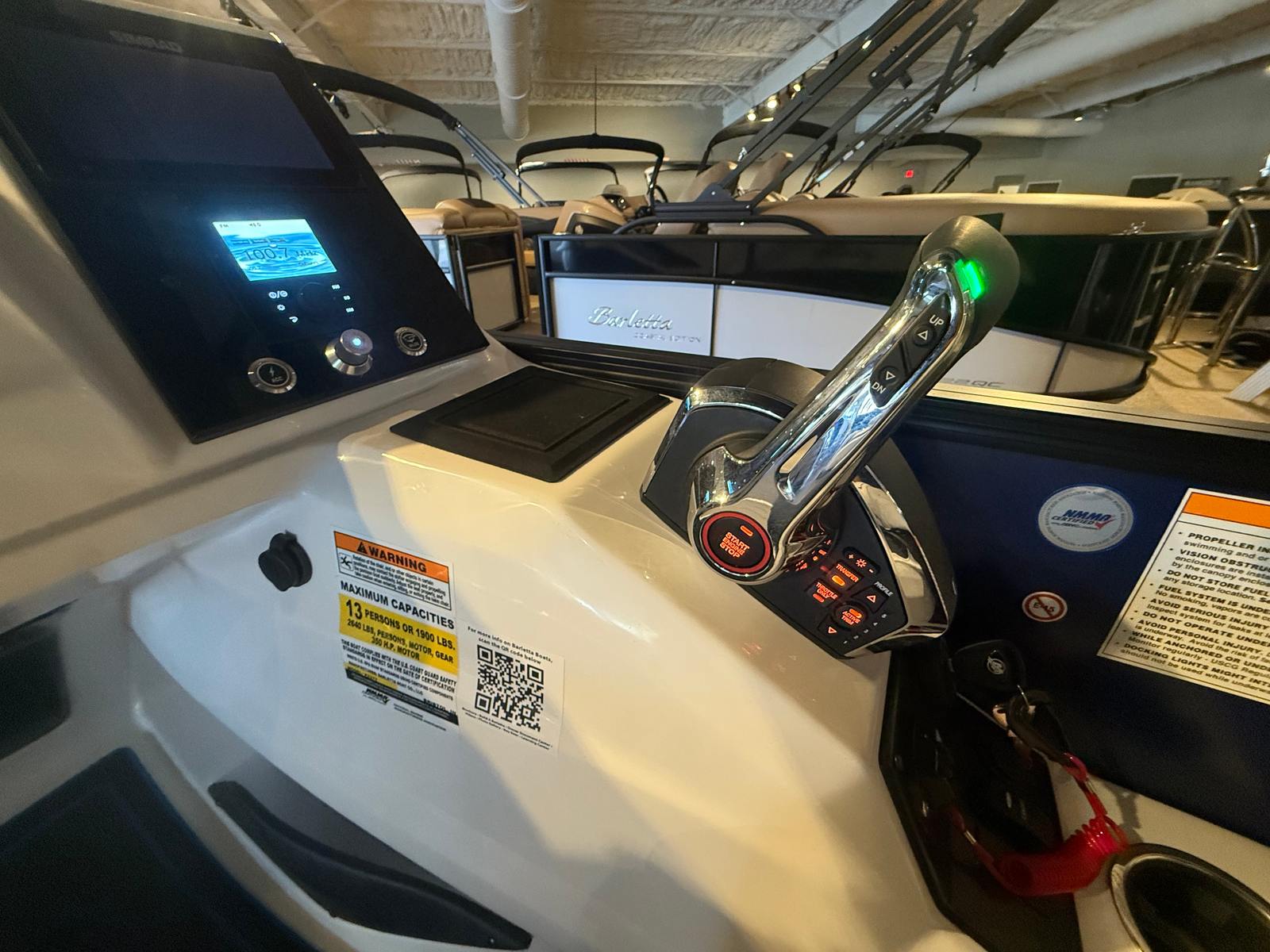 At the heart of the Barletta Corsa 23QCSS is a single Mercury 300L Verado V8 engine, delivering a powerful 300 horsepower. This engine is engineered for smooth acceleration, impressive speed, and reliable performance, ensuring you have the muscle needed for water sports, swift cruising, or leisurely rides. The Mercury Digital DTS Pre-Rig for VERADO engines with Vessel Link enhances control and responsiveness, while hydraulic and power assist steering make maneuvering effortless. With the drop ship engine featuring a stainless steel prop installed in the boat, you can expect optimal efficiency and durability on every outing.