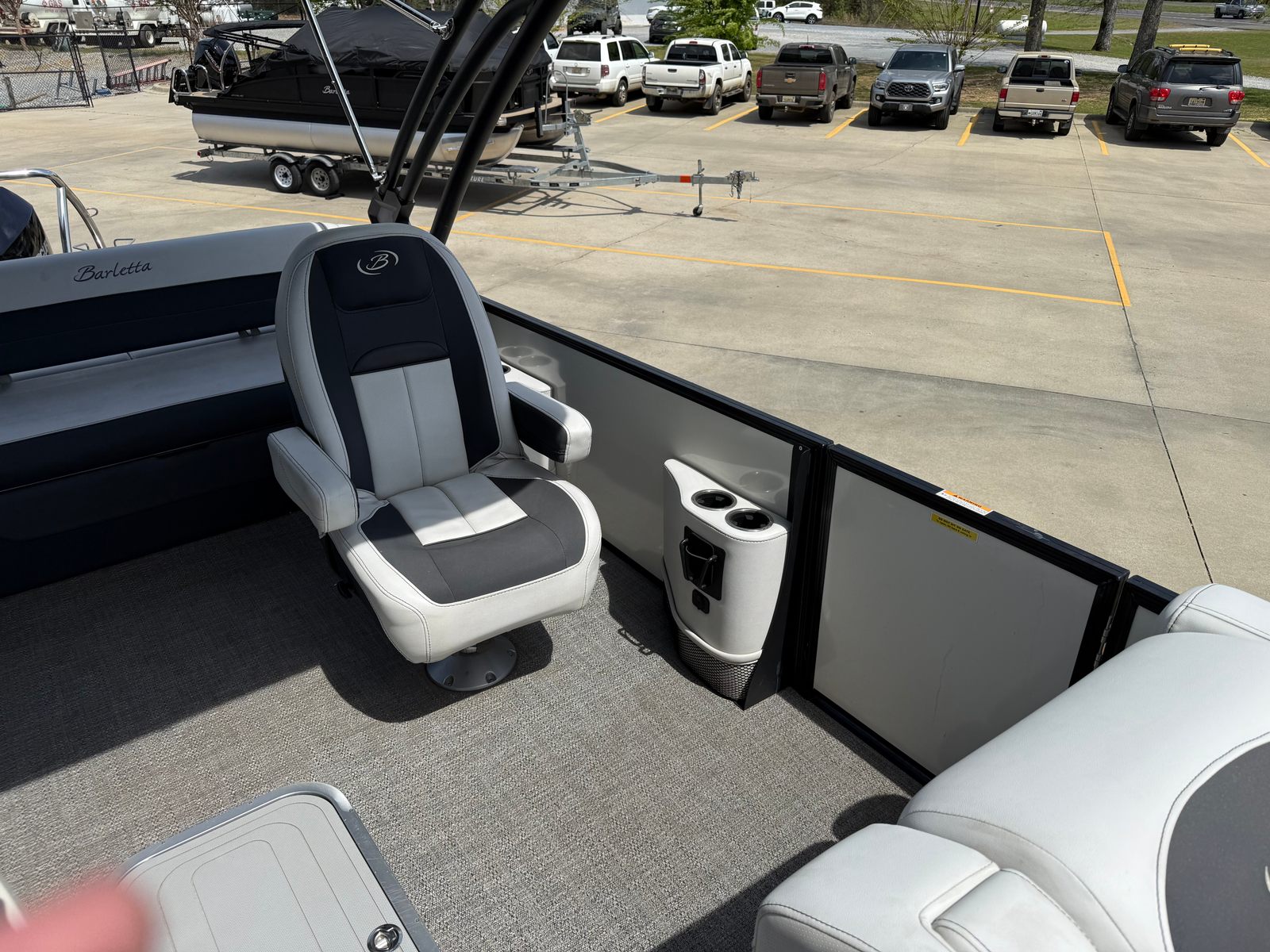 The 2021 Barletta Corsa 23UCA is thoughtfully designed to maximize comfort, convenience, and enjoyment on the water. Its 25-foot length provides generous deck space, allowing guests to move freely and enjoy various seating options. The pontoon’s layout is perfect for entertaining, with plush seating and a user-friendly helm that puts control at your fingertips. The quality craftsmanship and attention to detail are evident throughout, from the durable flooring to the stylish accents that define the Barletta brand.This pontoon boat for sale is equipped with features that enhance every outing, ensuring that you and your guests have everything needed for a memorable day on the water. The spacious deck is ideal for sunbathing, socializing, or setting up a picnic, while the sturdy construction ensures a smooth and stable ride even in choppier conditions. The intuitive helm station offers easy access to controls, making navigation a breeze for both seasoned captains and newcomers alike.
