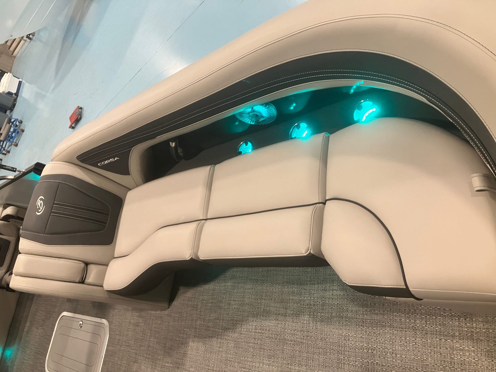 Beyond its luxurious features and impressive performance, the Barletta Corsa 25UC is designed with practicality in mind. The spacious layout provides ample room for storage, making it easy to bring along all your essentials for a day on the water. The pontoon’s length and design contribute to stability and ease of docking, allowing for stress-free arrivals and departures at any marina or dock. The efficient Mercury 400L Verado V10 engine is engineered for reliability and fuel efficiency, so you can spend more time enjoying the water and less time worrying about refueling.The durable flooring and high-quality upholstery are built to withstand the rigors of boating life, ensuring your investment remains beautiful and functional season after season. Every aspect of the Corsa 25UC is crafted to enhance your boating experience, from the moment you step aboard to the time you return to shore.