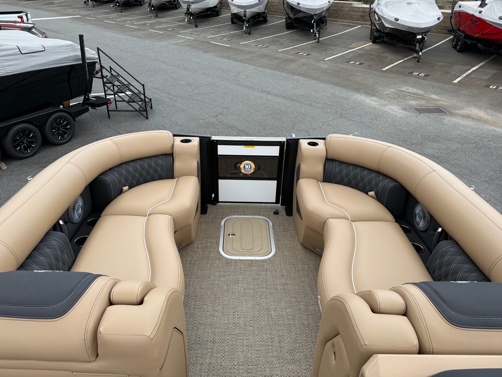 The 2026 Barletta Lusso L23M is loaded with premium features that set it apart from other pontoon boats for sale. The exterior boasts a striking Sweep Color in Winter White, complemented by the Blackout Package Lusso railskin, creating a bold and sophisticated look. The flooring is finished in Amore Tan, providing both durability and a touch of elegance underfoot. The furniture, upholstered in Carmella Tan with Onyx accents, offers plush comfort and a refined aesthetic, ensuring that every seat is the best in the house.For those who appreciate shade and protection from the elements, the Lusso L23M comes equipped with a Sport Bimini (installed in place of the standard Bimini), allowing you to enjoy the sun or seek shelter as needed. Digital gauges provide clear and accurate information at a glance, while the rigging includes a stainless steel prop for optimal performance and longevity. Every detail, from the accent color in Winter White to the thoughtfully designed seating arrangements, reflects Barletta’s commitment to quality and innovation.