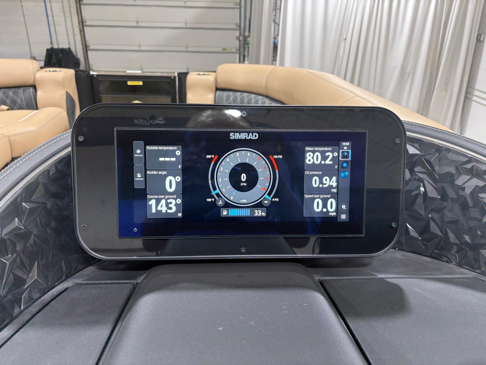At the heart of the Lusso L23U is the powerful Mercury 250L Verado V8 engine, delivering an impressive 250 horsepower. This single-engine setup ensures smooth acceleration, responsive handling, and plenty of power for cruising, watersports, or exploring new destinations. The Mercury Digital DTS Pre-Rig for VERADO engines with Vessel Link provides seamless digital throttle and shift control, enhancing the driving experience with precision and ease. Hydraulic and power assist steering make maneuvering effortless, whether you’re docking in tight spaces or navigating open water. The stainless steel prop adds durability and efficiency, ensuring optimal performance trip after trip.