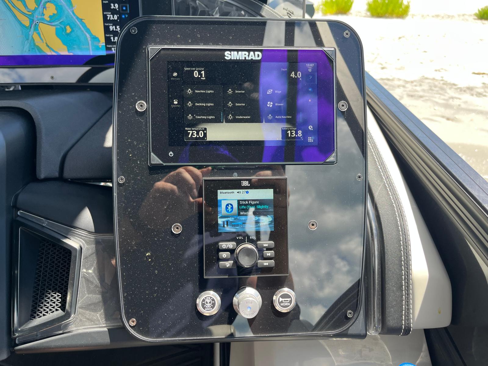 Power and precision come together in the Barletta Lusso L23U, thanks to its robust Mercury (D) 350L V10 Verado engine. With a commanding 350 horsepower at your fingertips, this pontoon delivers exhilarating acceleration and smooth cruising, making it ideal for a variety of water activities. The Mercury Digital Pre-Rig for V10 and the expertly rigged engine with V10 prop ensure optimal performance, responsiveness, and efficiency. Whether you are gliding across calm waters or picking up speed for watersports, the Lusso L23U’s advanced propulsion system provides a seamless and enjoyable ride.