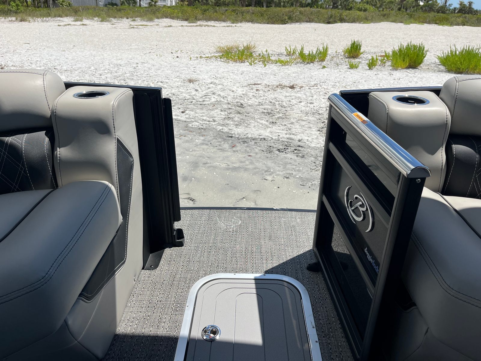 Owning the Barletta Lusso L23U means embracing a lifestyle of fun, relaxation, and connection. The spacious deck layout encourages socializing, whether you are hosting a lively gathering or enjoying a quiet sunset cruise. The luxurious seating and ample room make it easy for everyone to find their perfect spot, while the double bimini system ensures you can stay cool and comfortable even on the sunniest days. The Lusso L23U’s powerful engine opens up a world of possibilities, from leisurely cruises to thrilling water sports, all with the confidence of Barletta’s renowned build quality.